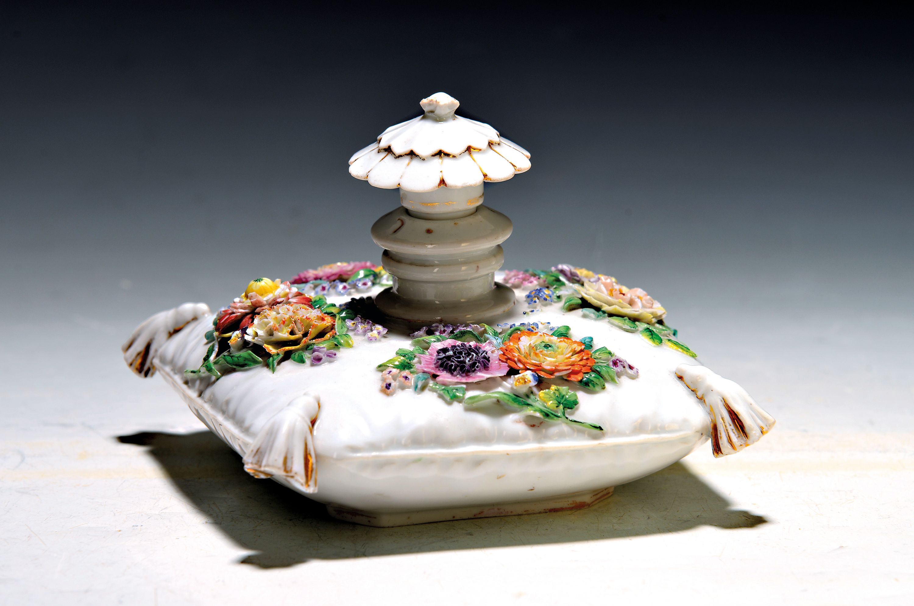 Parfumflakon in Kissenform, Meissen, 19. Jh., Porzellan, an den Ecken Quastendekor,