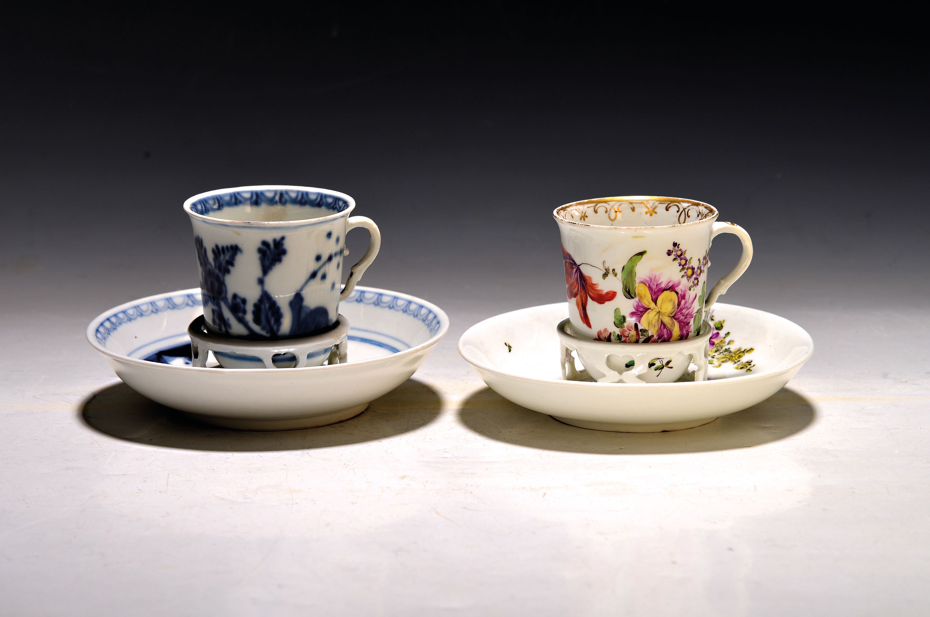 Zwei Schokoladentassen/Trembleusen, Wien, 18. Jh., a. unterglasurblauer asiatischer