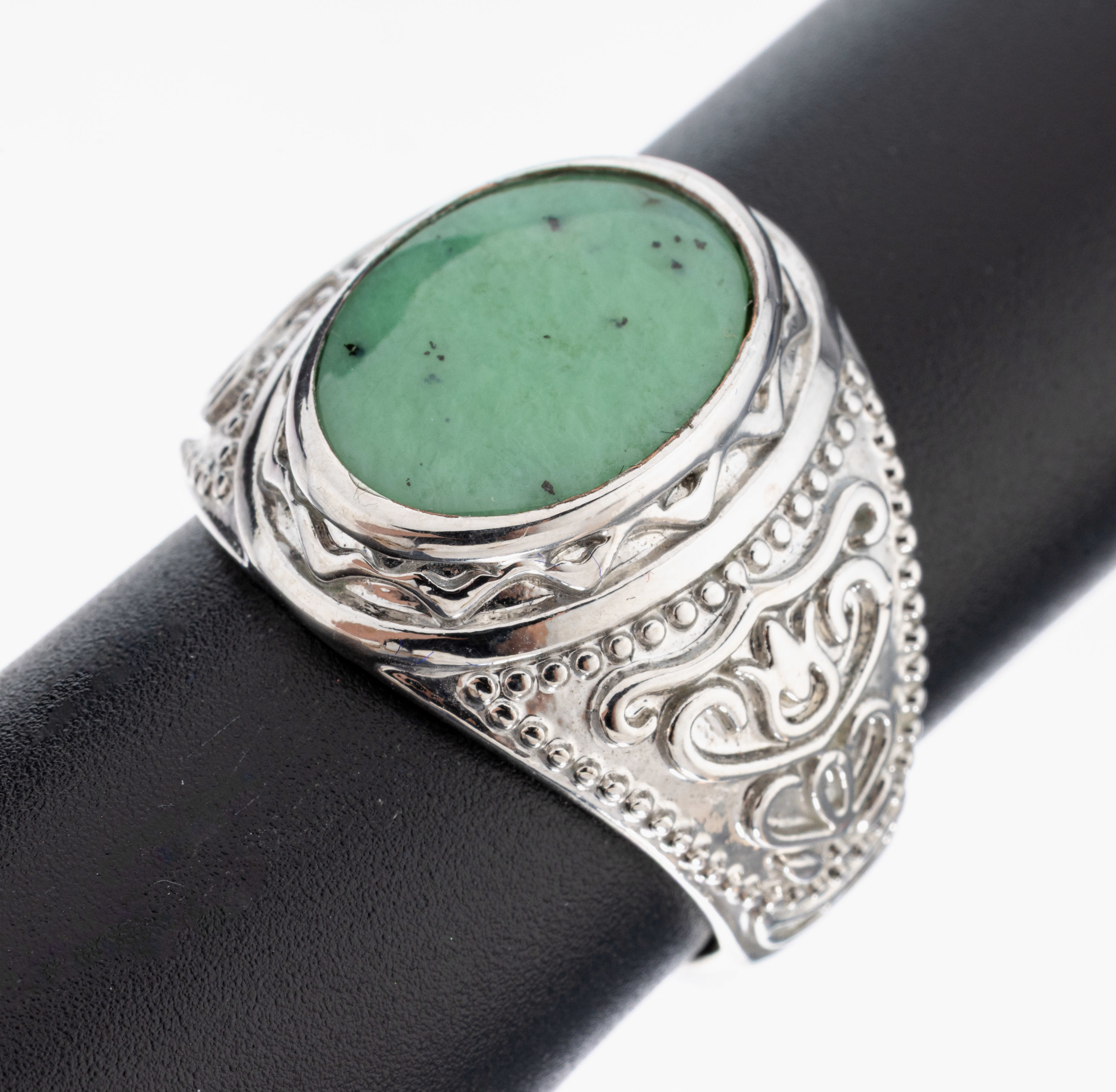 Grossular-Ring, Silber gepr., ovaler Grossular-Cabochon, RW 68, ca. 9.6 g