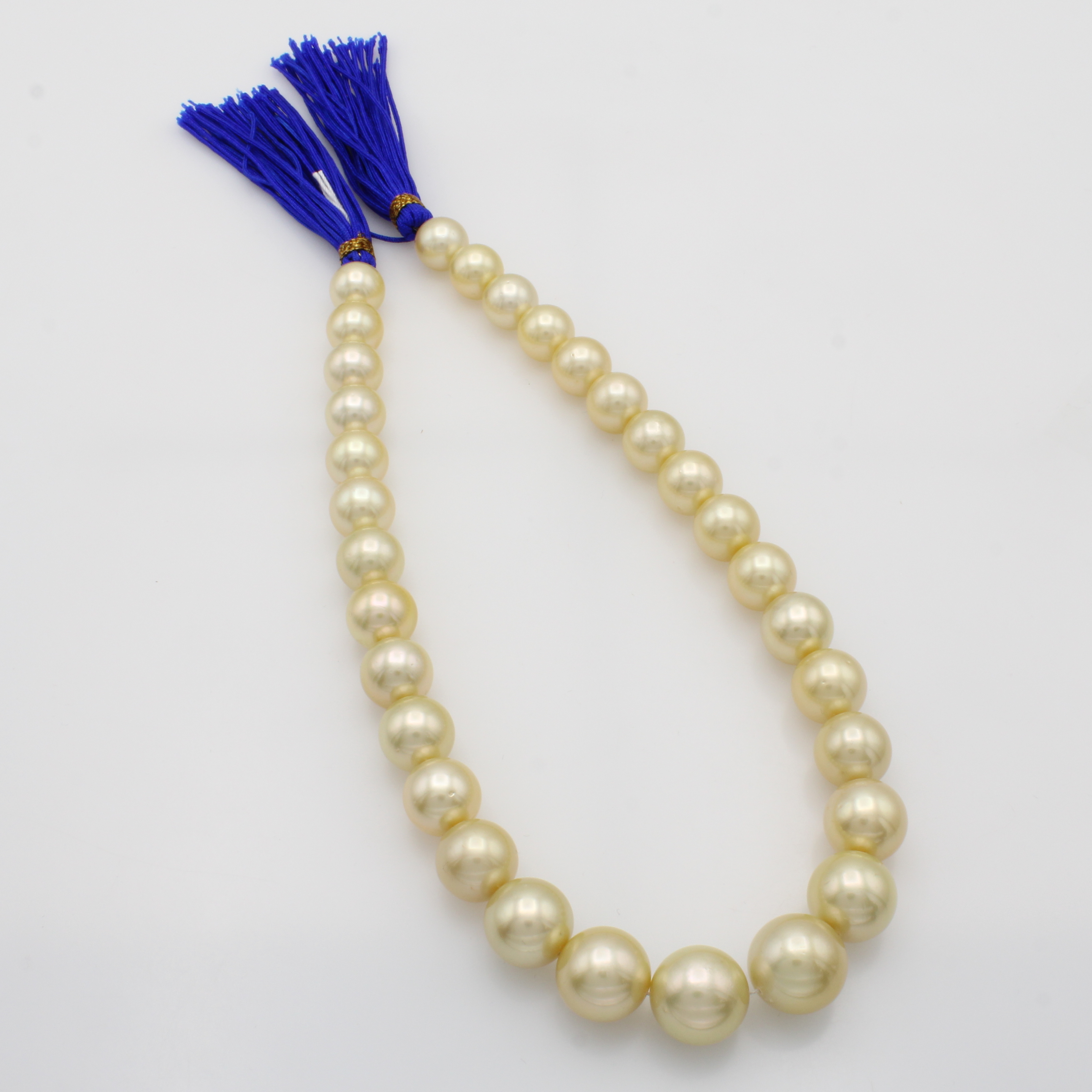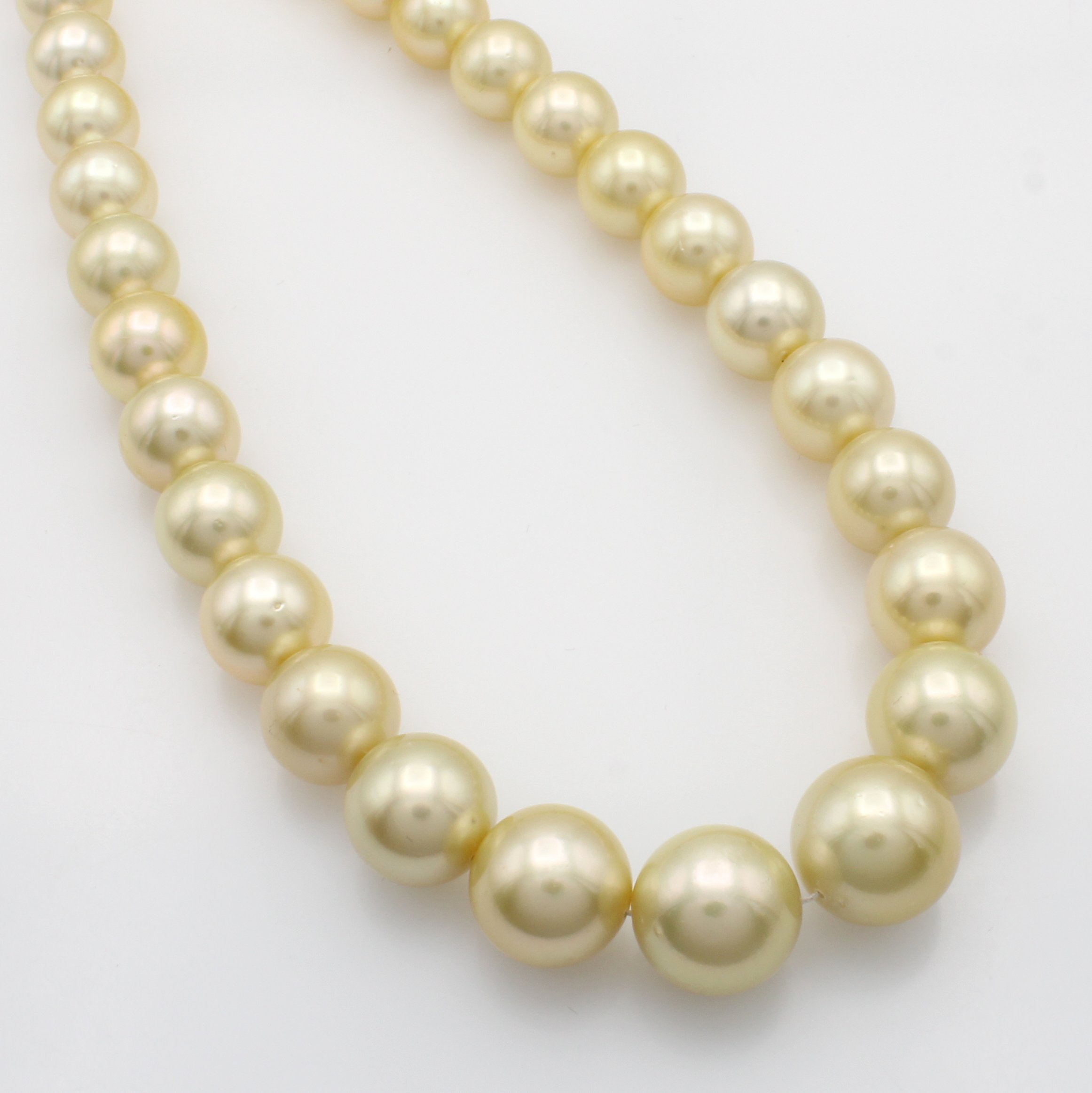 Südseezuchtperlenstrang, champagnerf. Perlen im Verlauf v. 12-16 mm mit schönem Lüster, L. ca. 40.5 cm Schätzpreis: 12000, - EUR