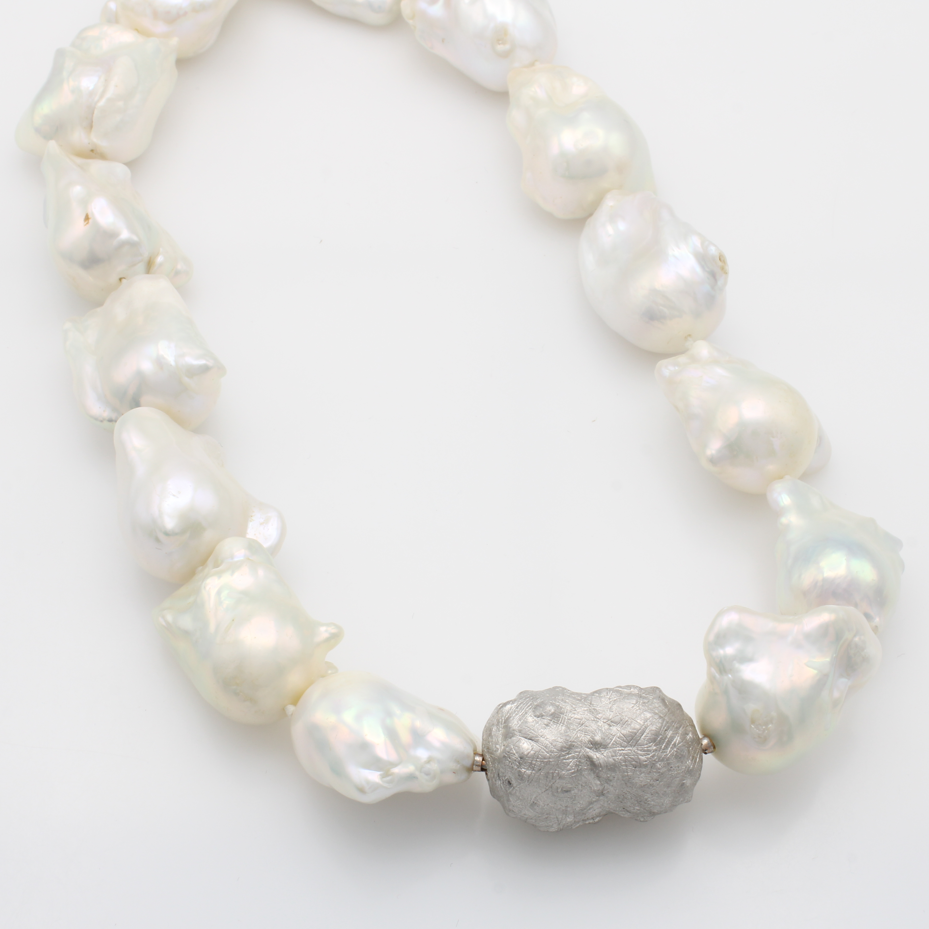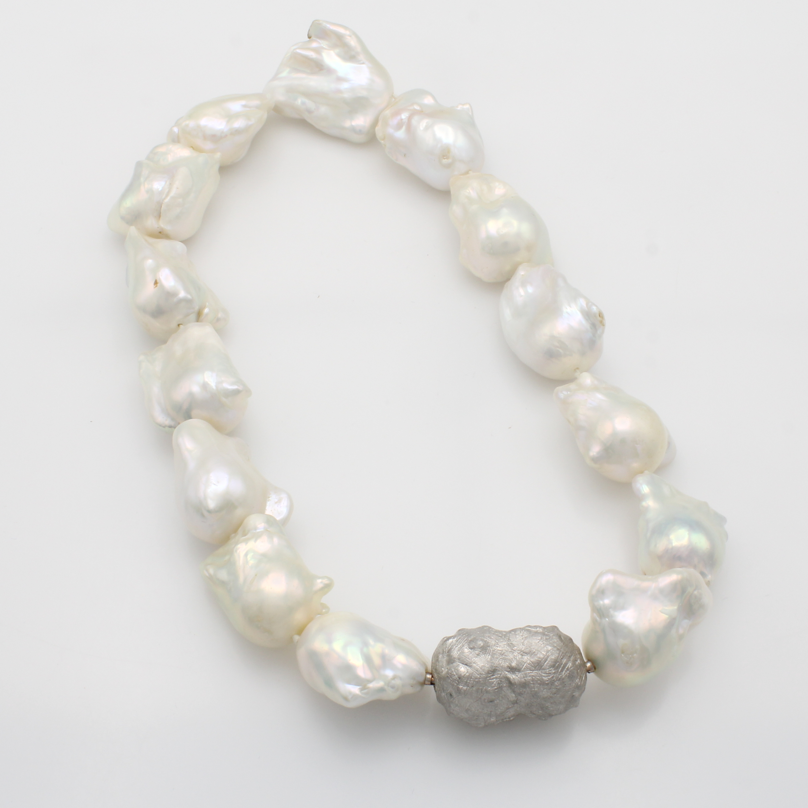 Süßwasserzuchtperlenkette, sog. Monsterperlen, Wechselschl. 925er Silber, barocke, weiße Perlen, L. ca. 47 cm Schätzpreis: 2900, - EUR
