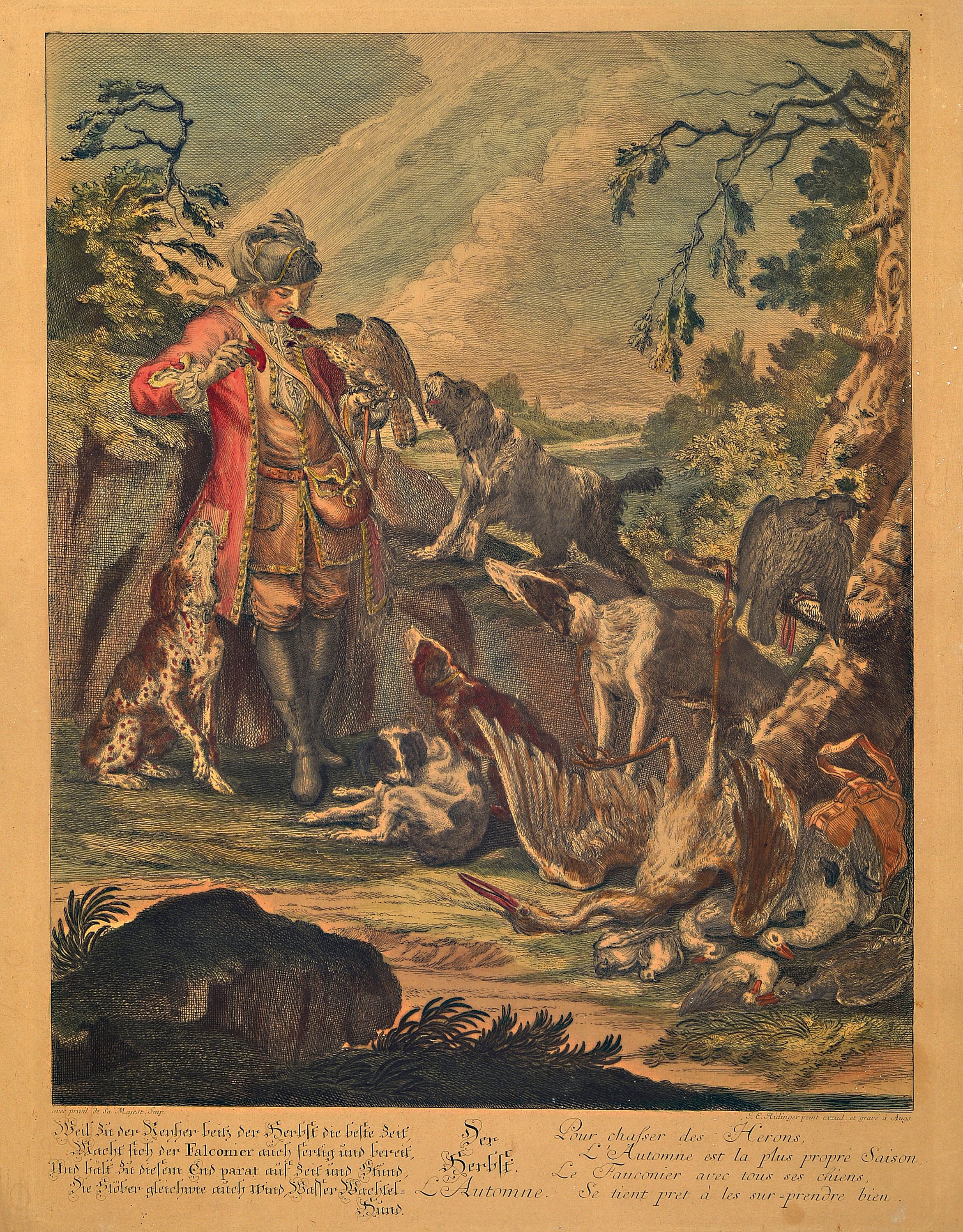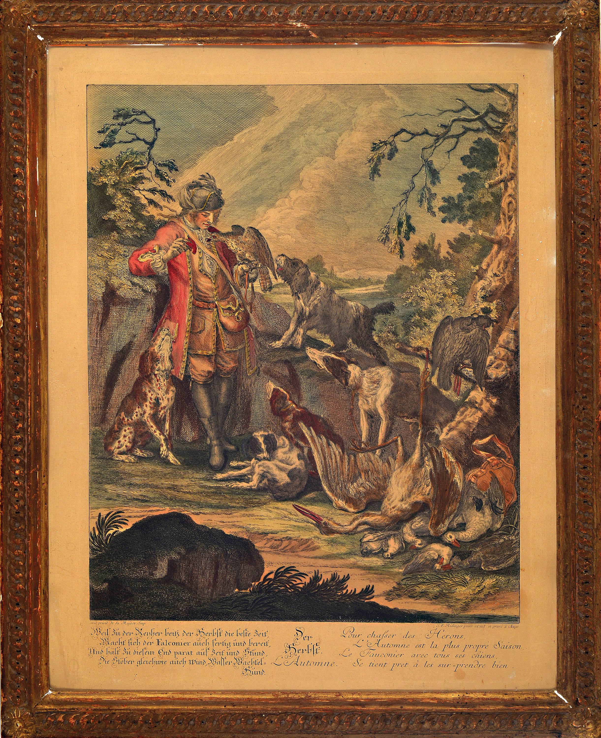 auf den Sommer, Herbst und Winter, koloriert, gebräunt, Abb. ca. 42 x 33 cm, alle
