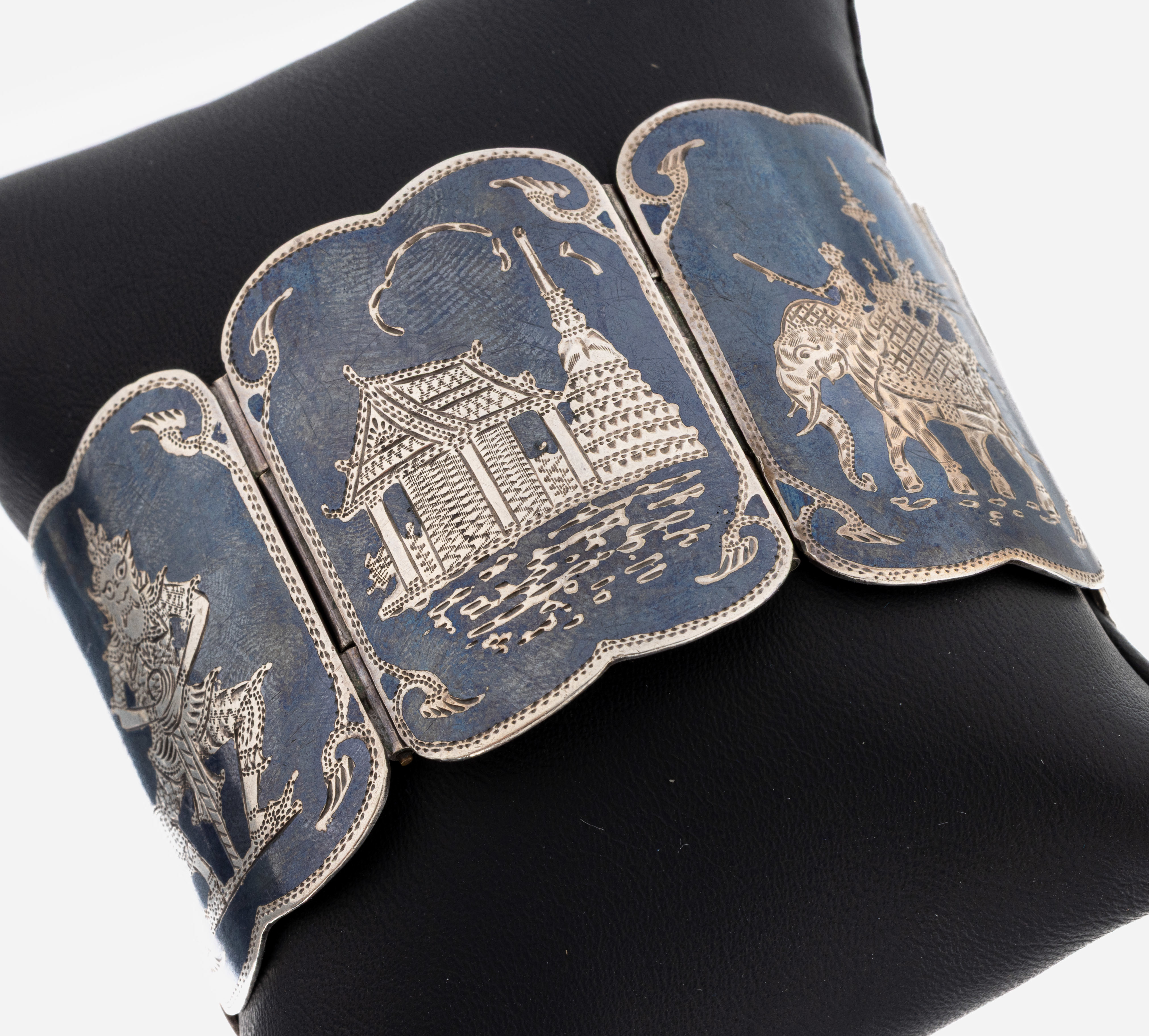 Niello-Armband, 925er Silber, Siam, 6 Glieder mit geschweiftem Rand, Niello part.