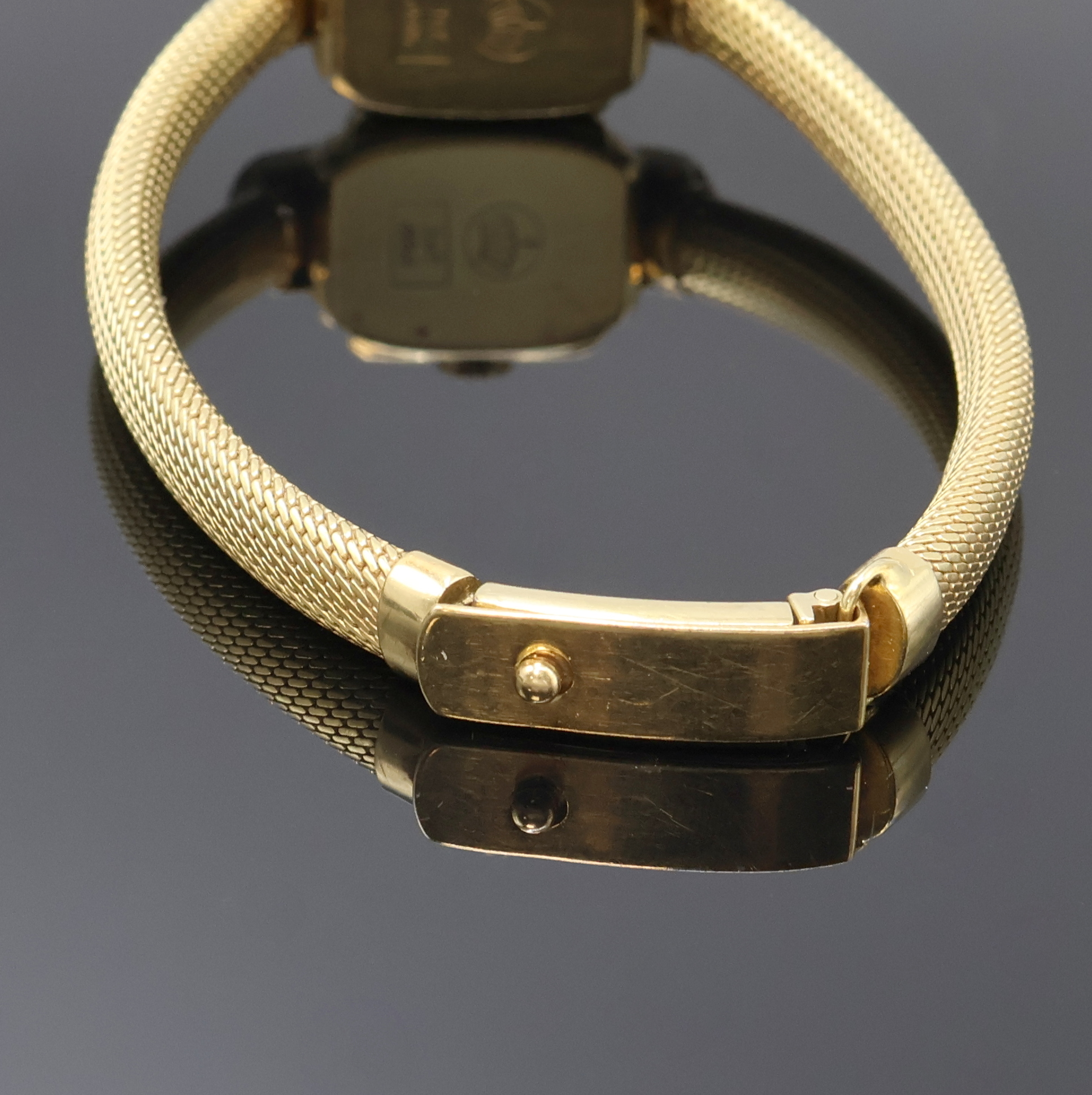 Damenarmbanduhr in GG 585/000 mit Diamanten, Schweiz um 1960, Handaufzug, 2-teil.