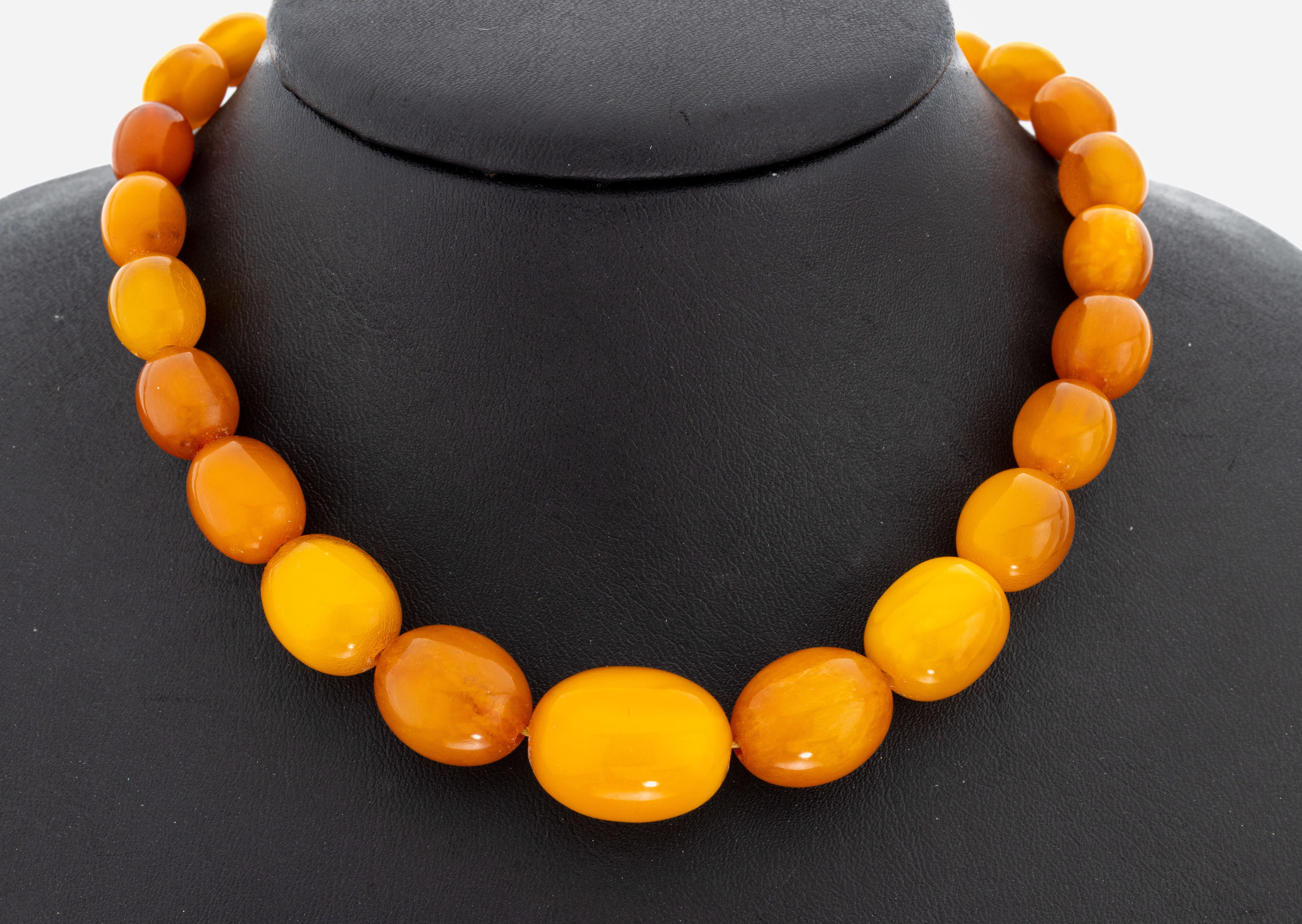 Bernstein-Collier, Bernstein-Oliven im Verlauf, D. ca. 5.5-15.9 mm, Schraubschließe