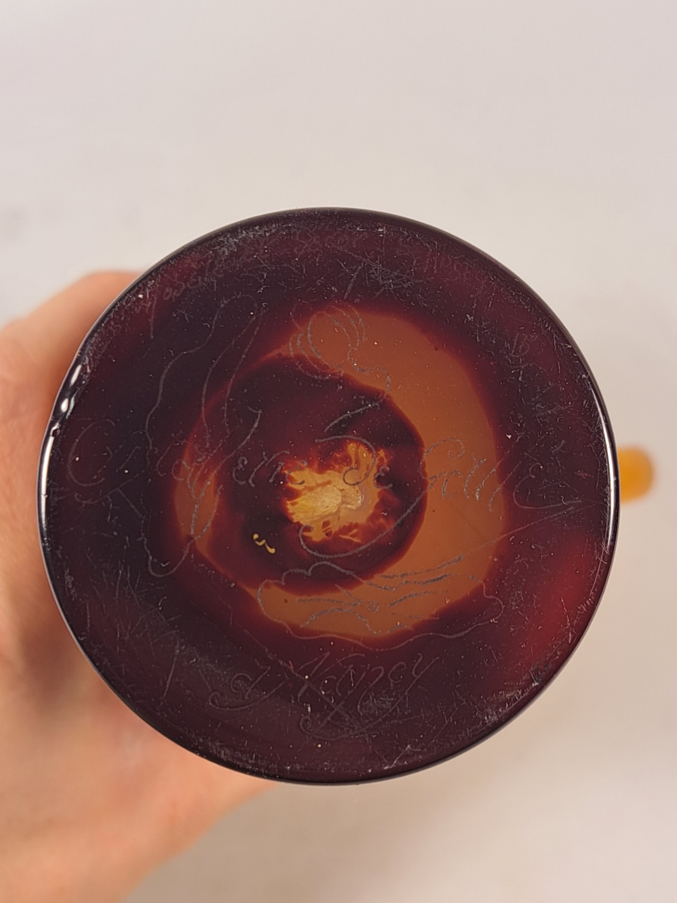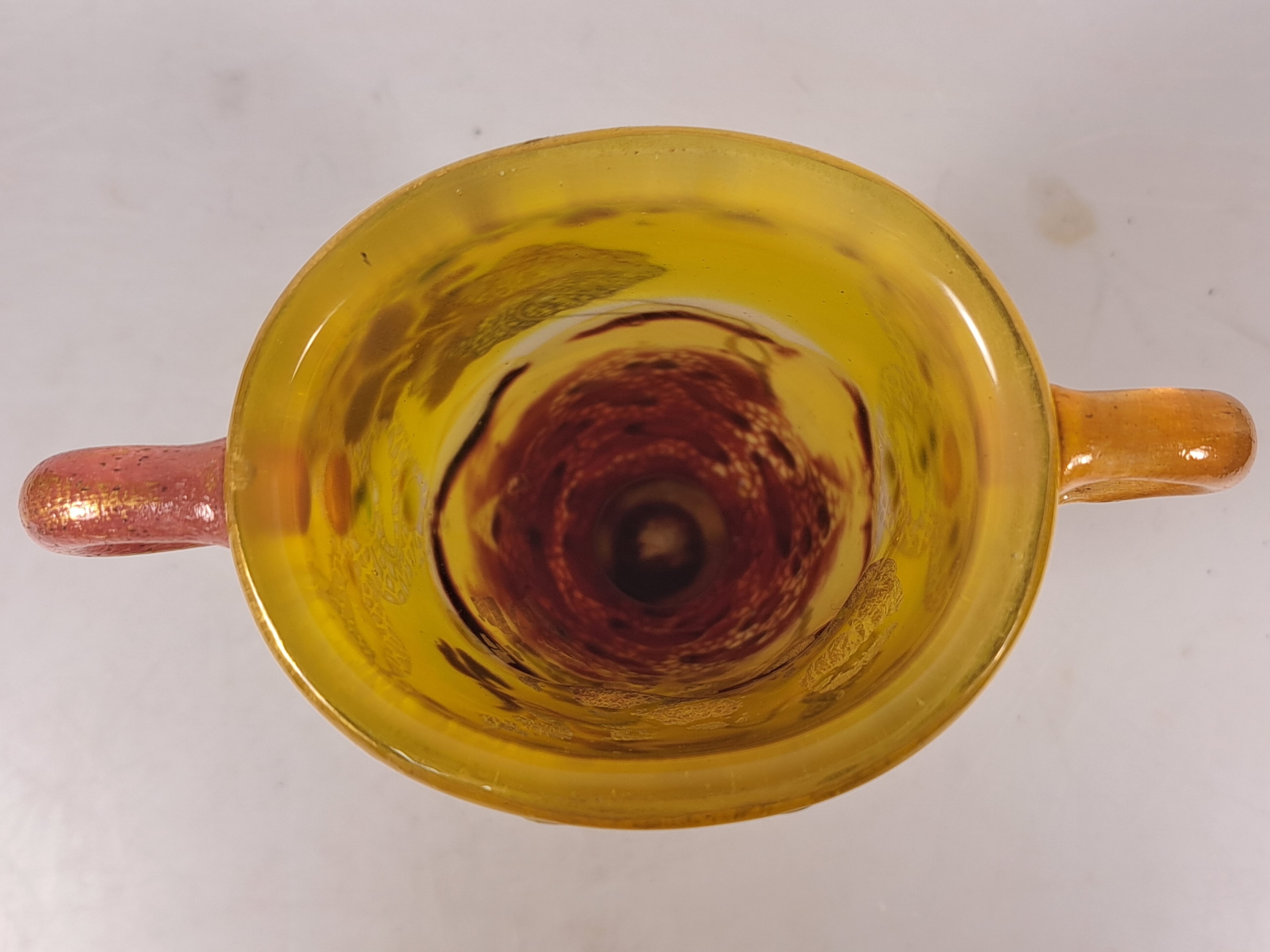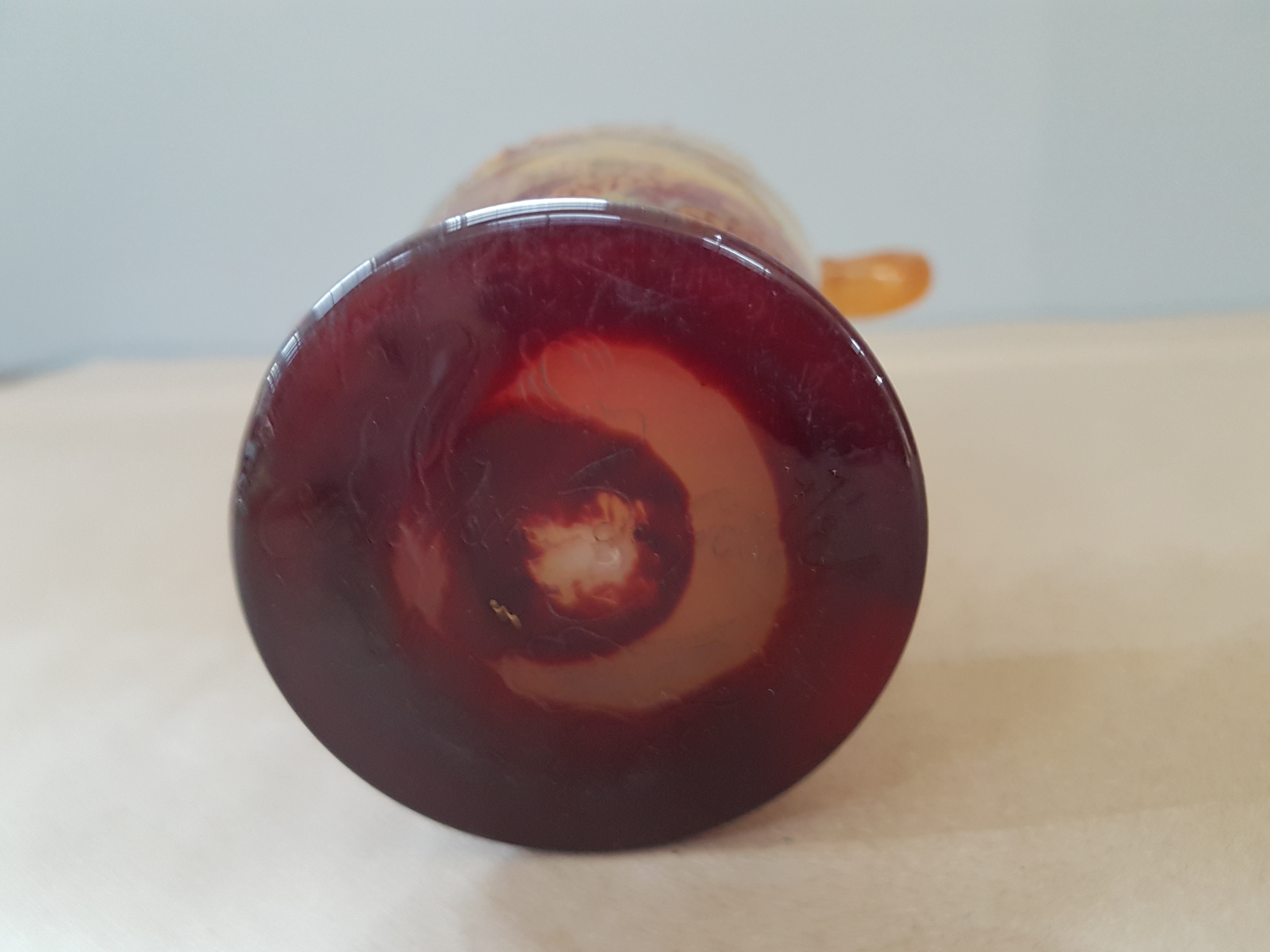 gelb überfangen unteres Drittel rot getaucht, gesprengte Silberfolieneinschmelzungen,