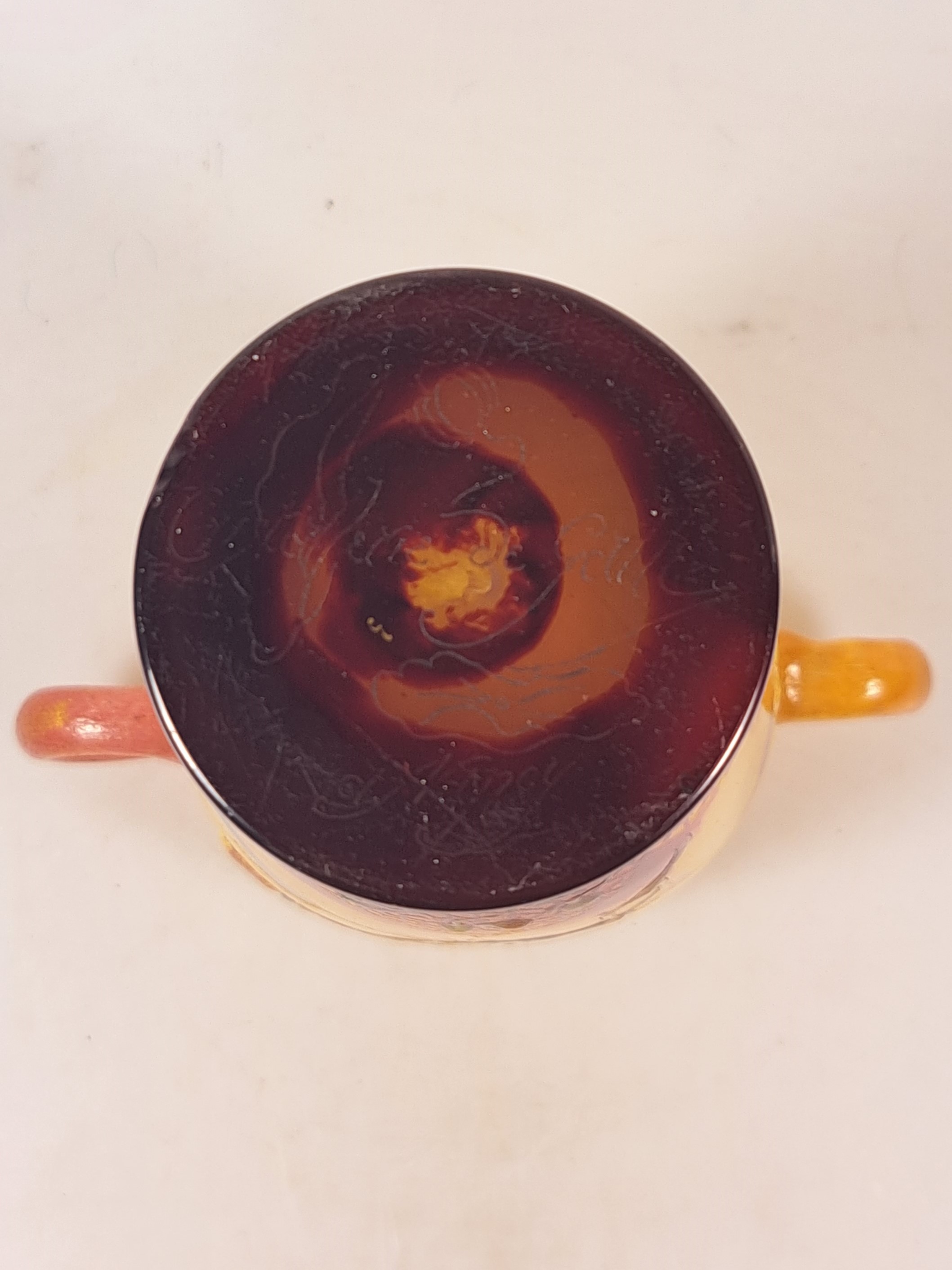 emaillierter, geätzter und vergoldeter Dekor, Doppelhenkel in pink und orange, umlaufender