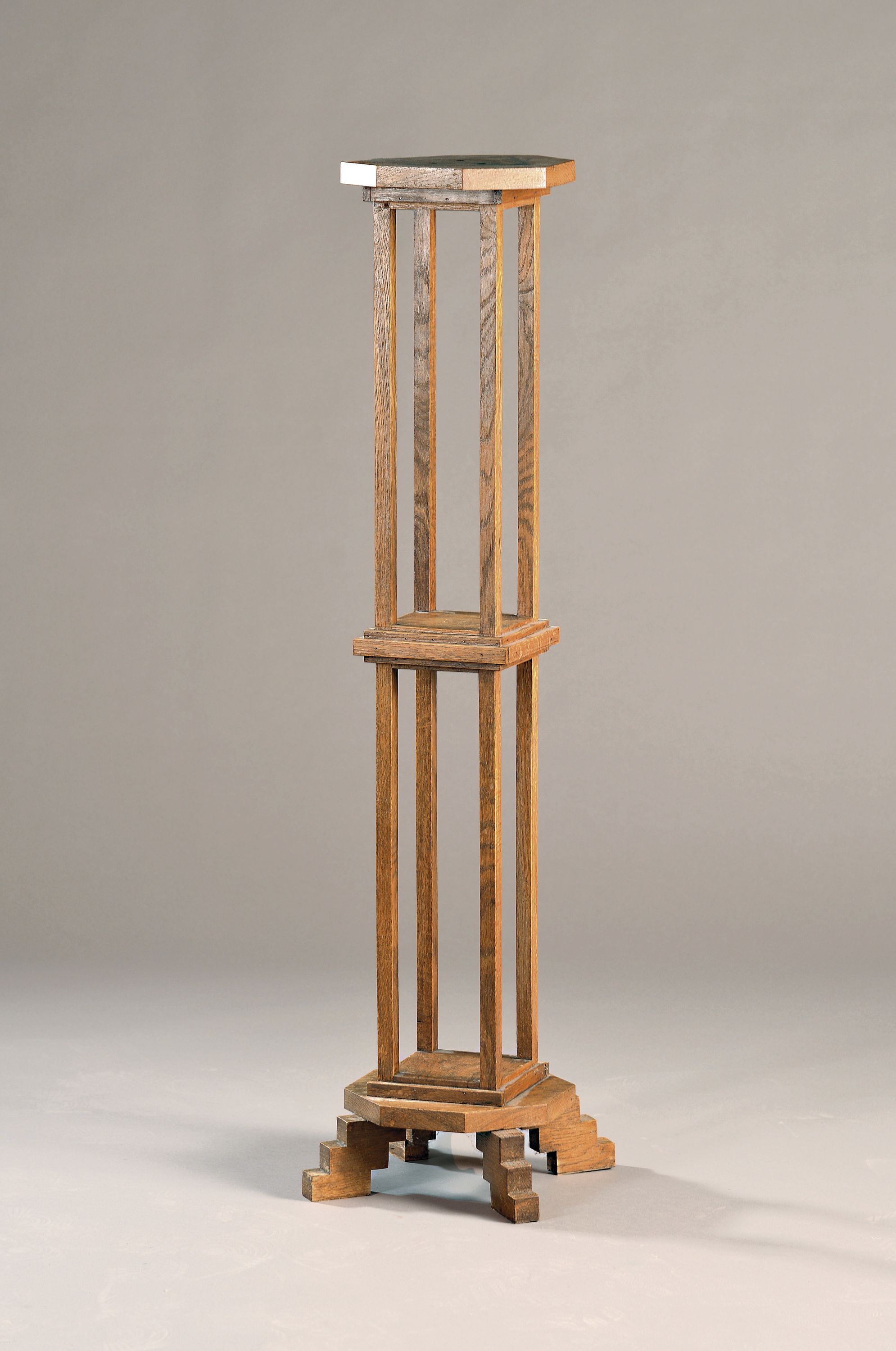 Blumensäule, deutsch, um 1920-30, Esche, auf vier getreppten Füßen stehend, H.
