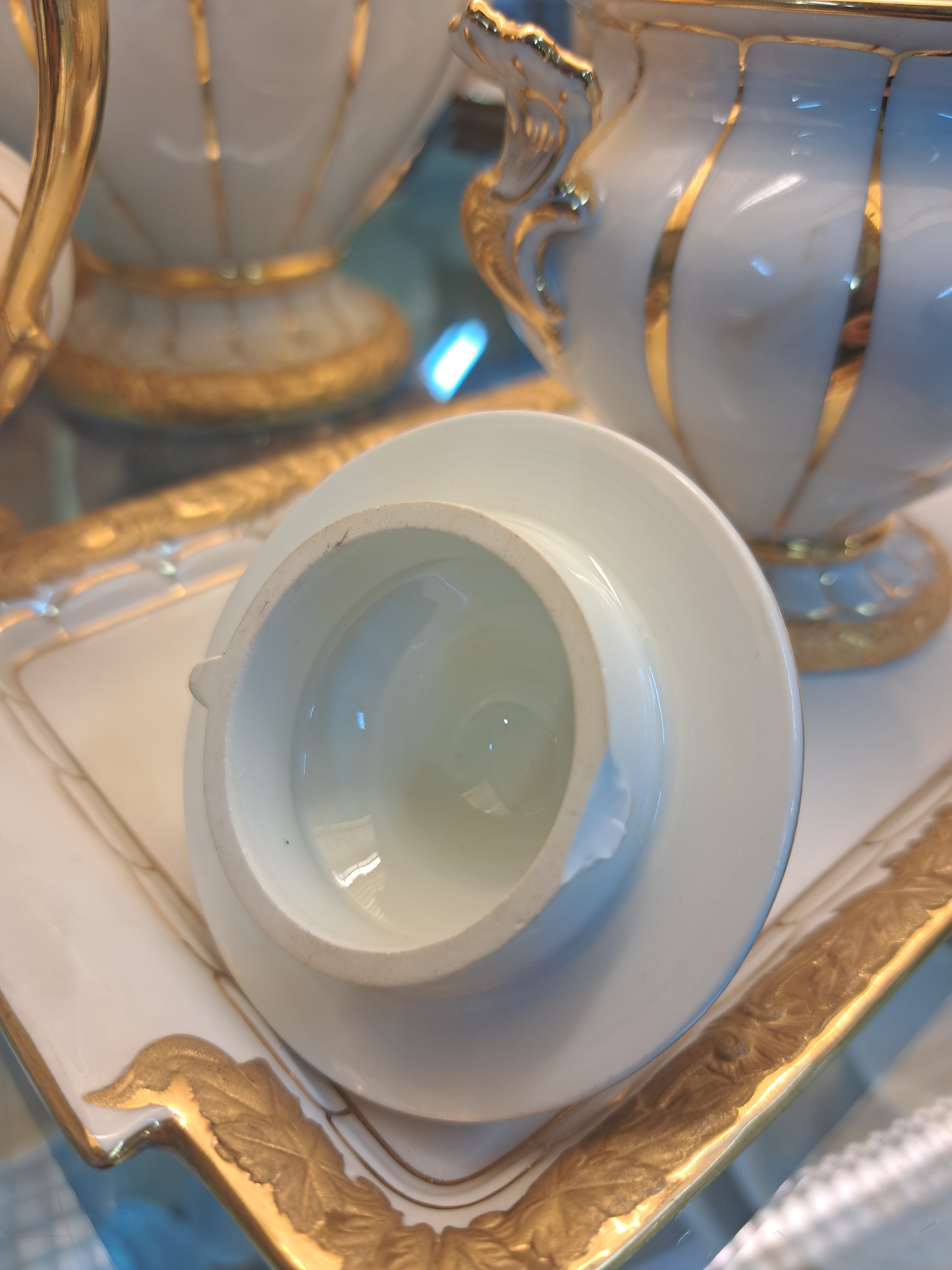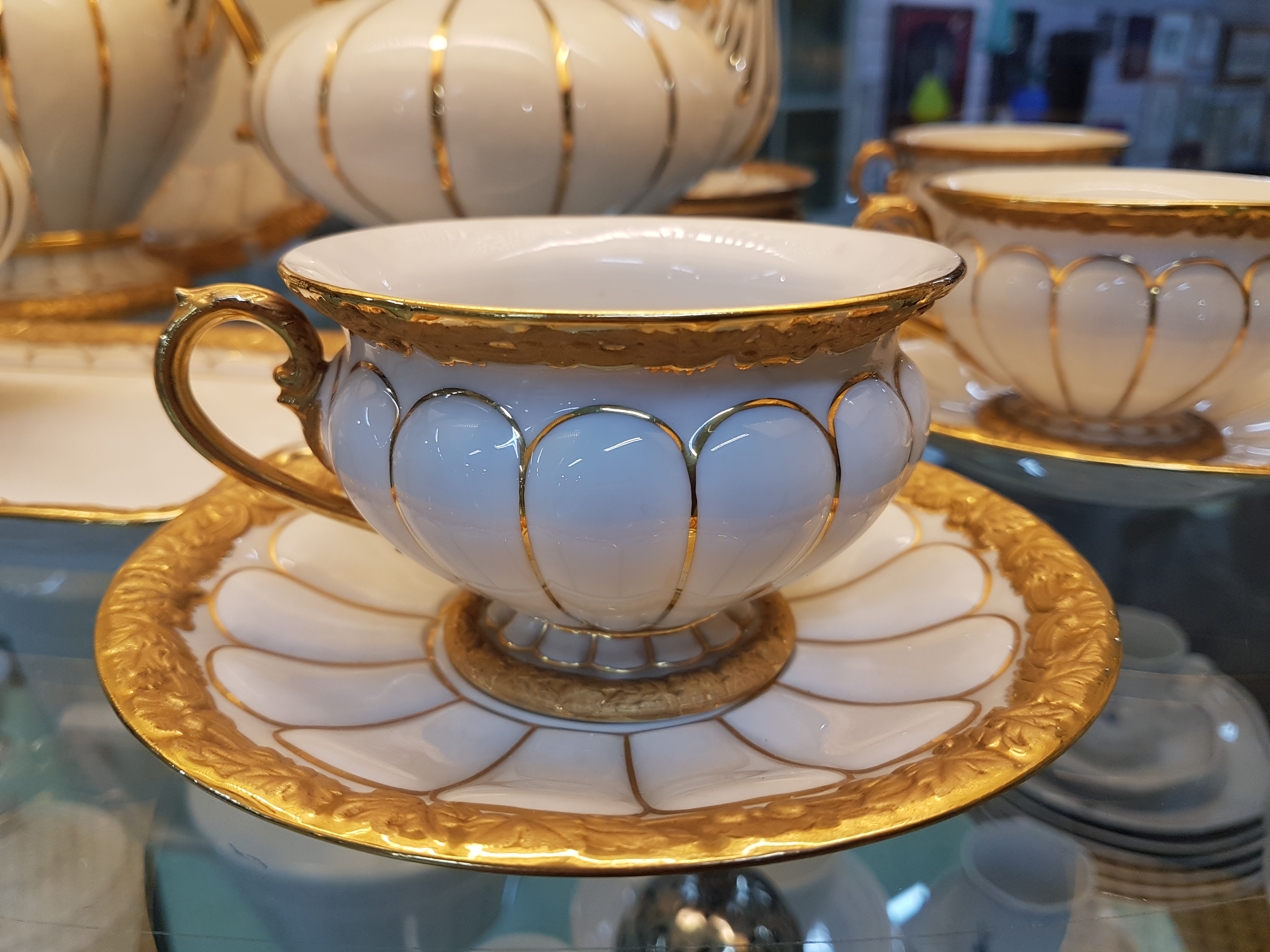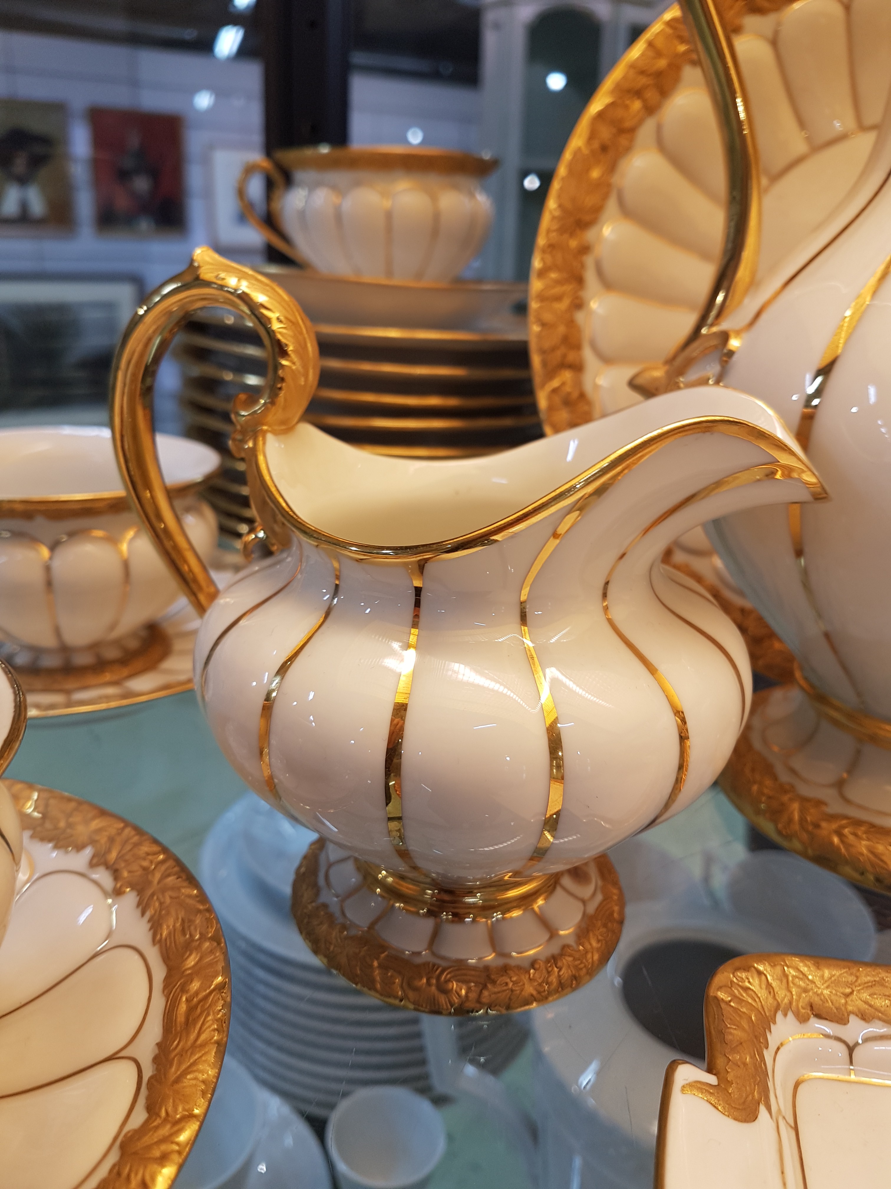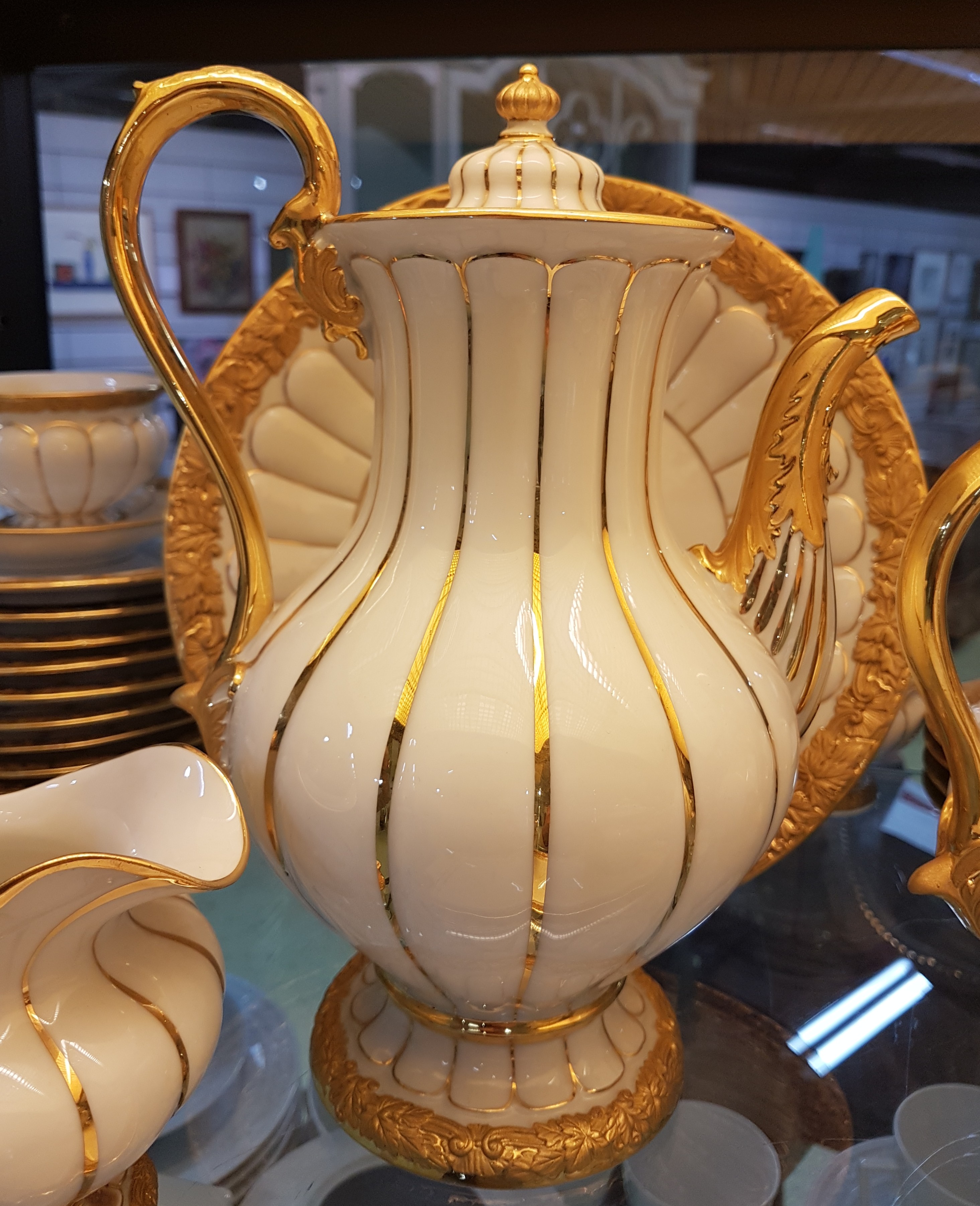Reliefzier, Goldbronze, 7 Tassen mit UT, 10 Kuchenteller D.19cm (1x 2.Wahl), Kaffeekanne,