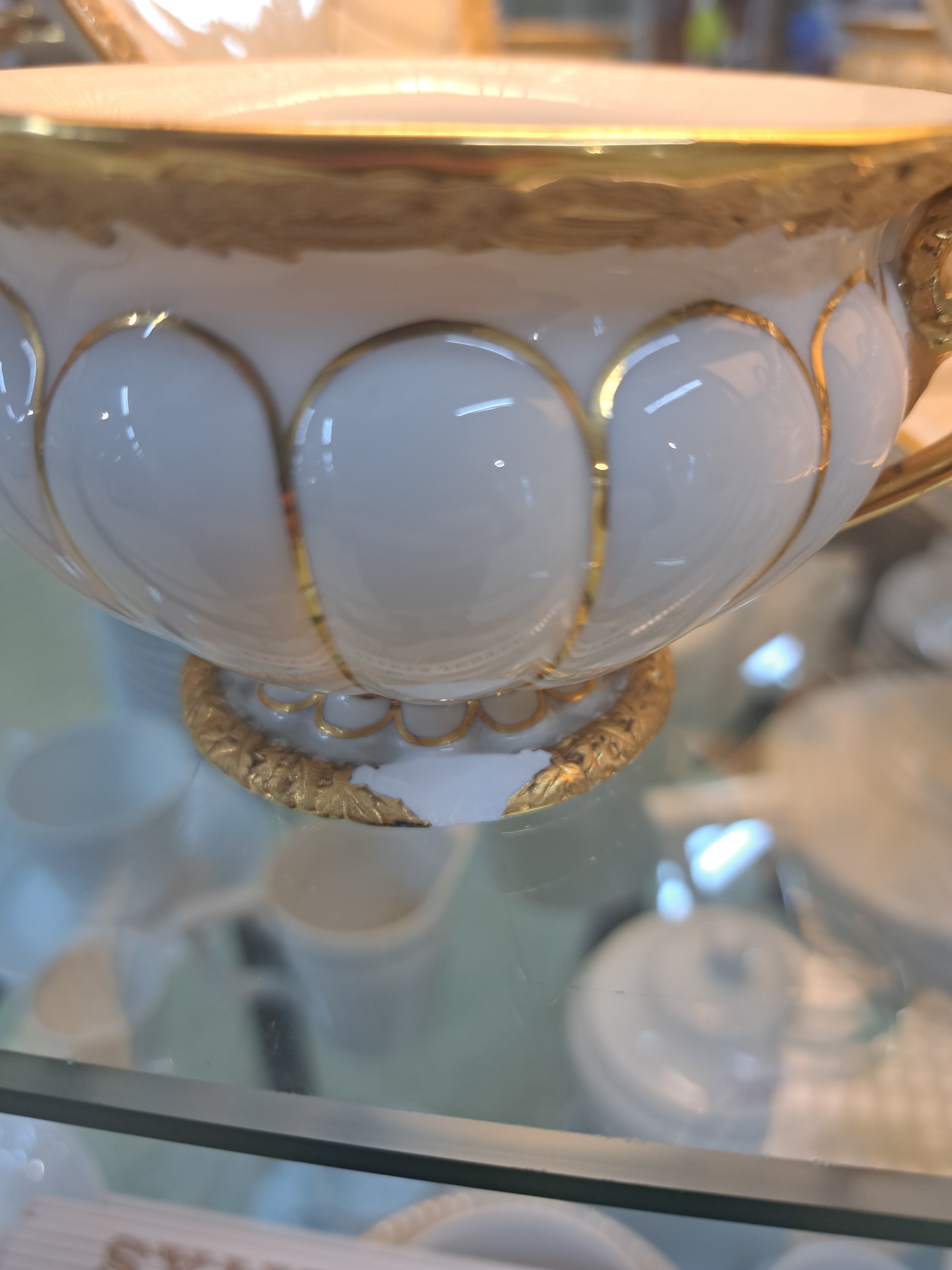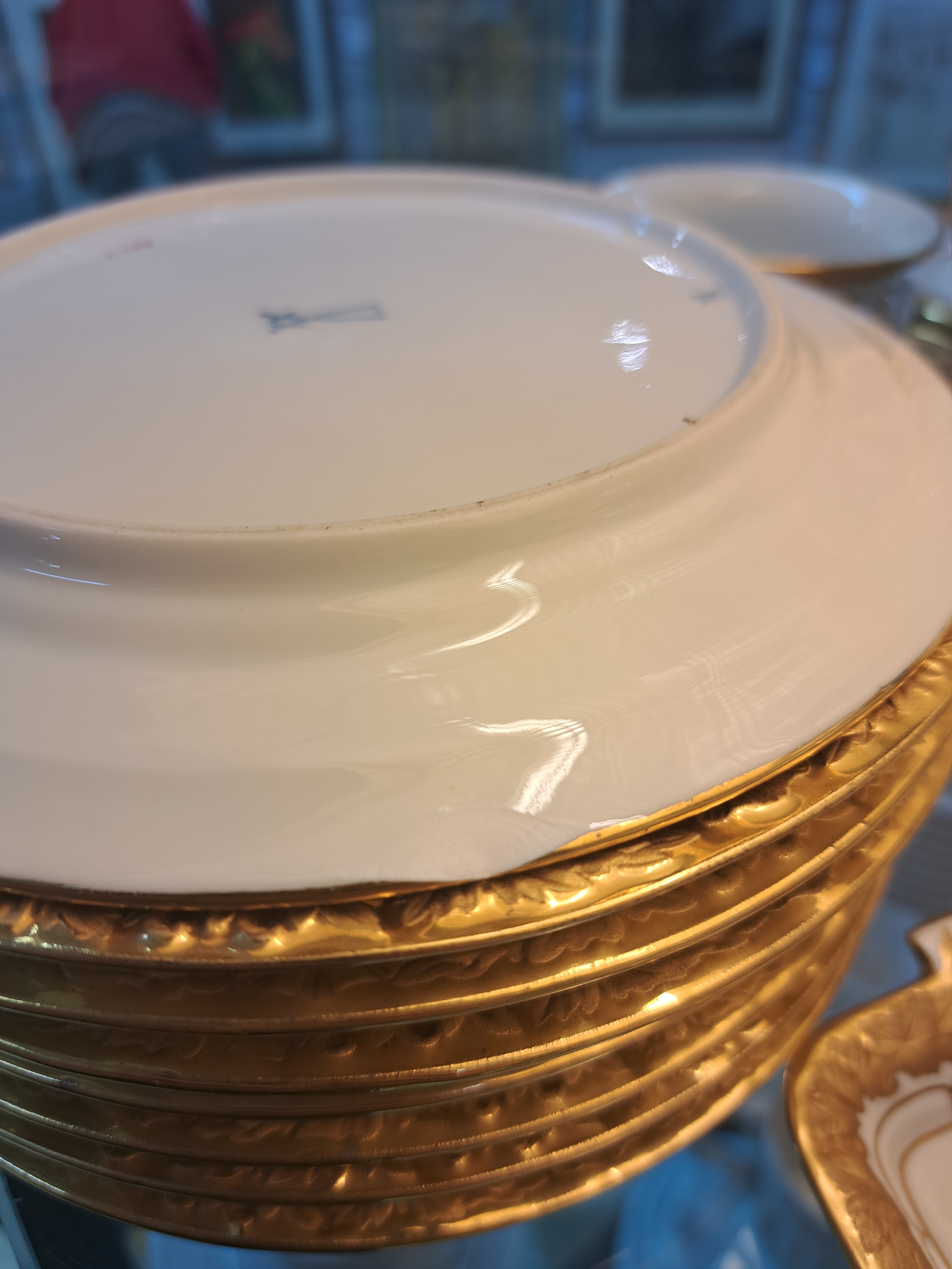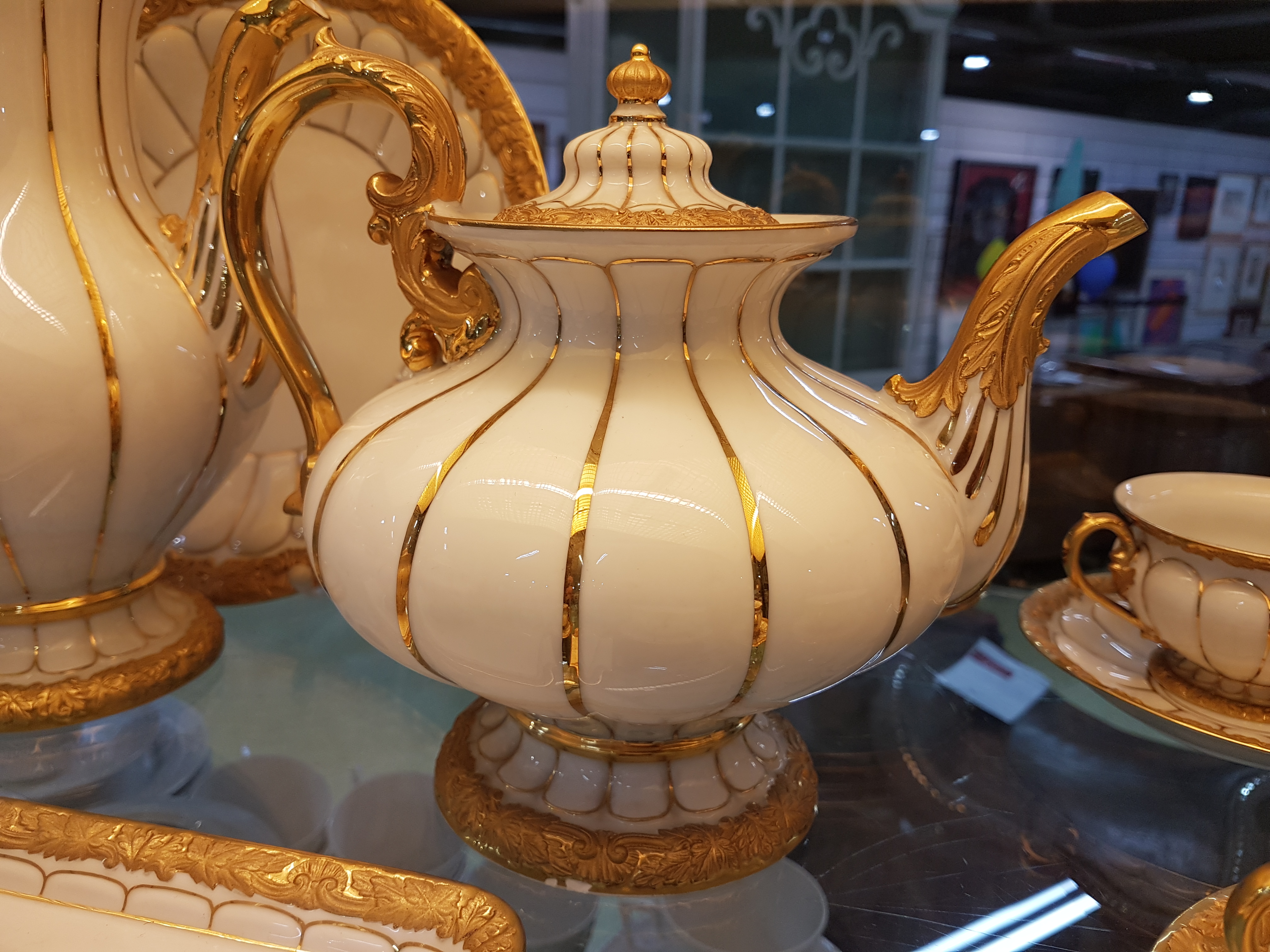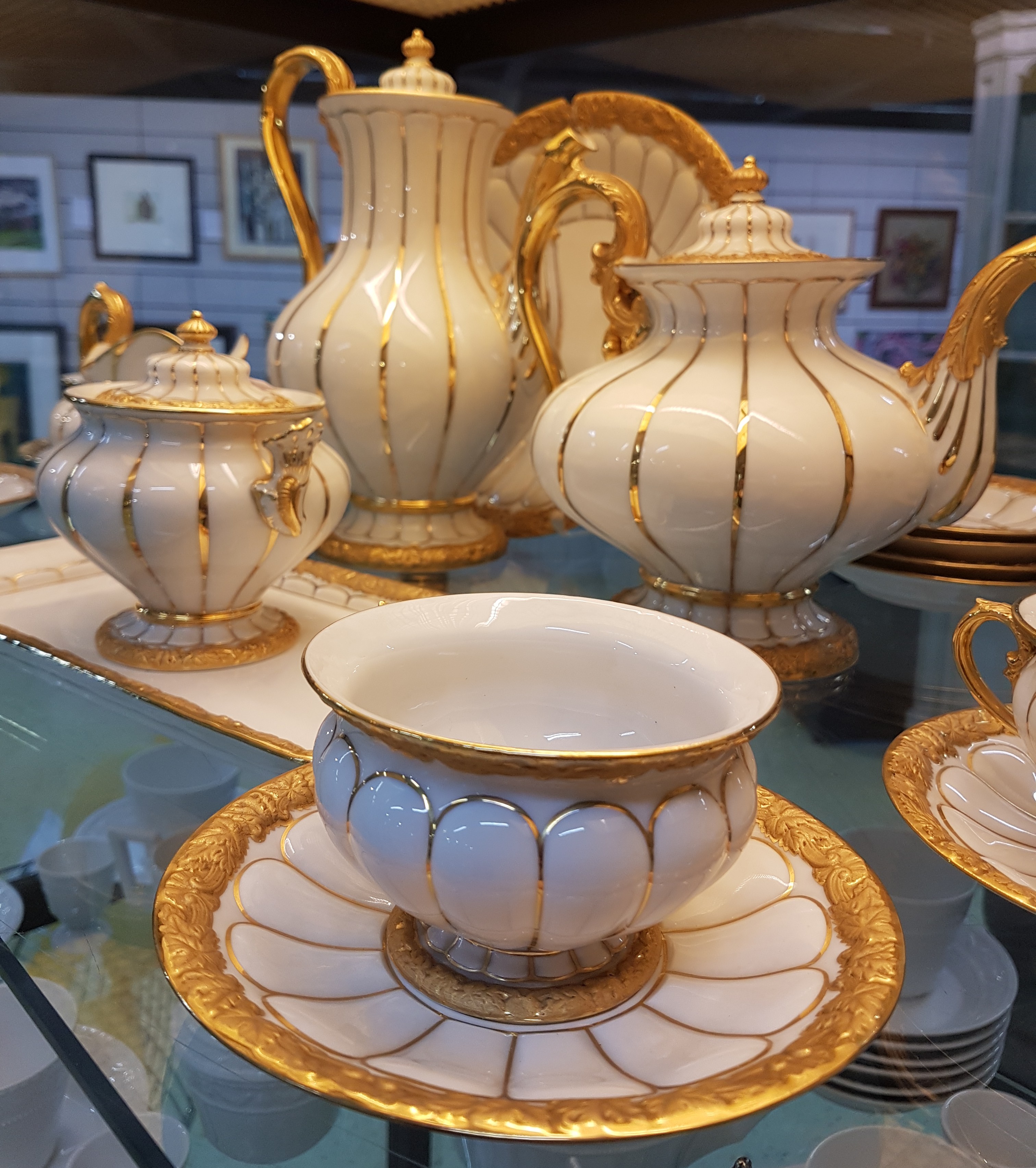 Reliefzier, Goldbronze, 7 Tassen mit UT, 10 Kuchenteller D.19cm (1x 2.Wahl), Kaffeekanne,