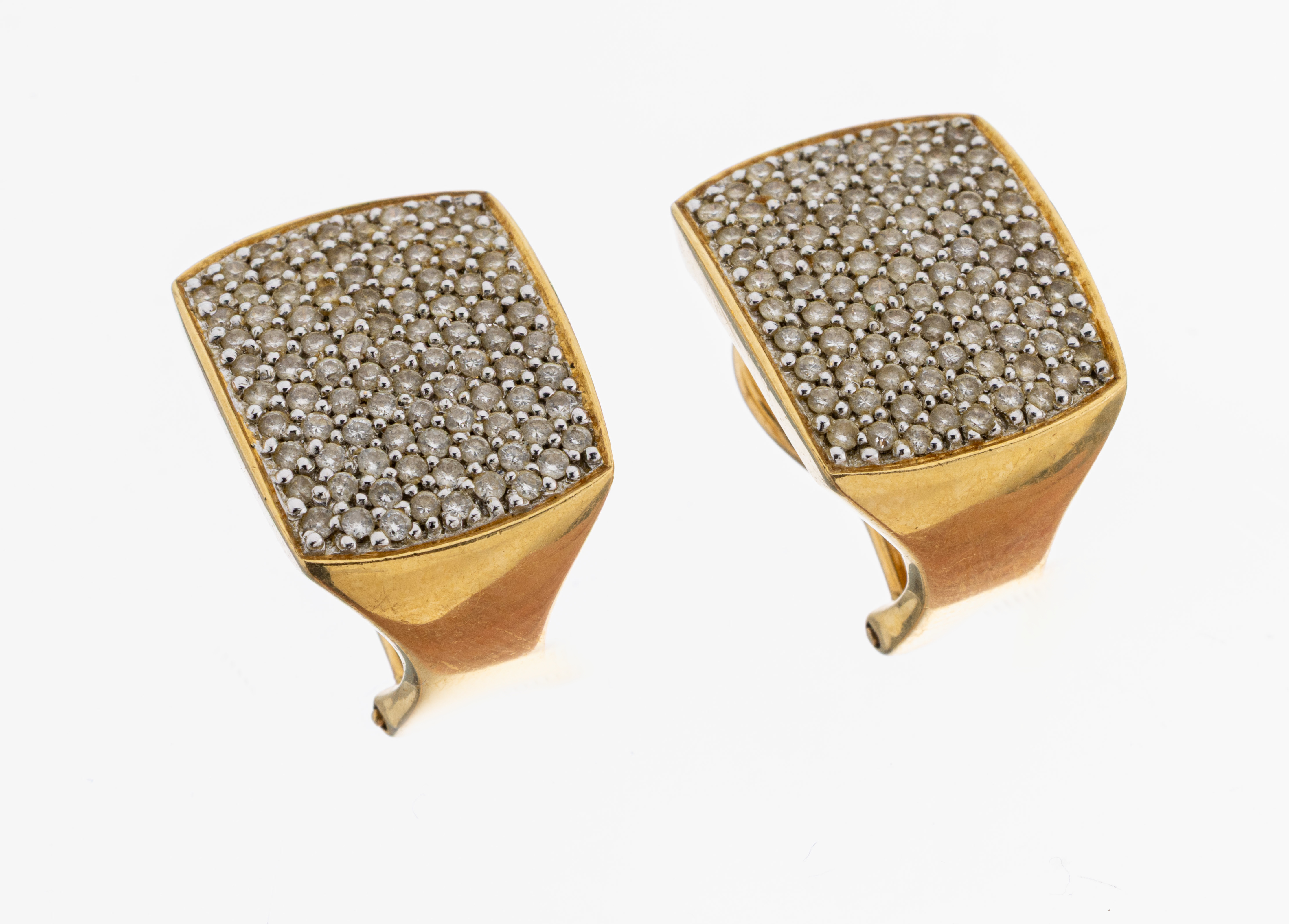 Paar 18 kt Gold Brillant-Ohrstecker, GG 750/000, 182 Brillanten zus. ca. 2.50 ct