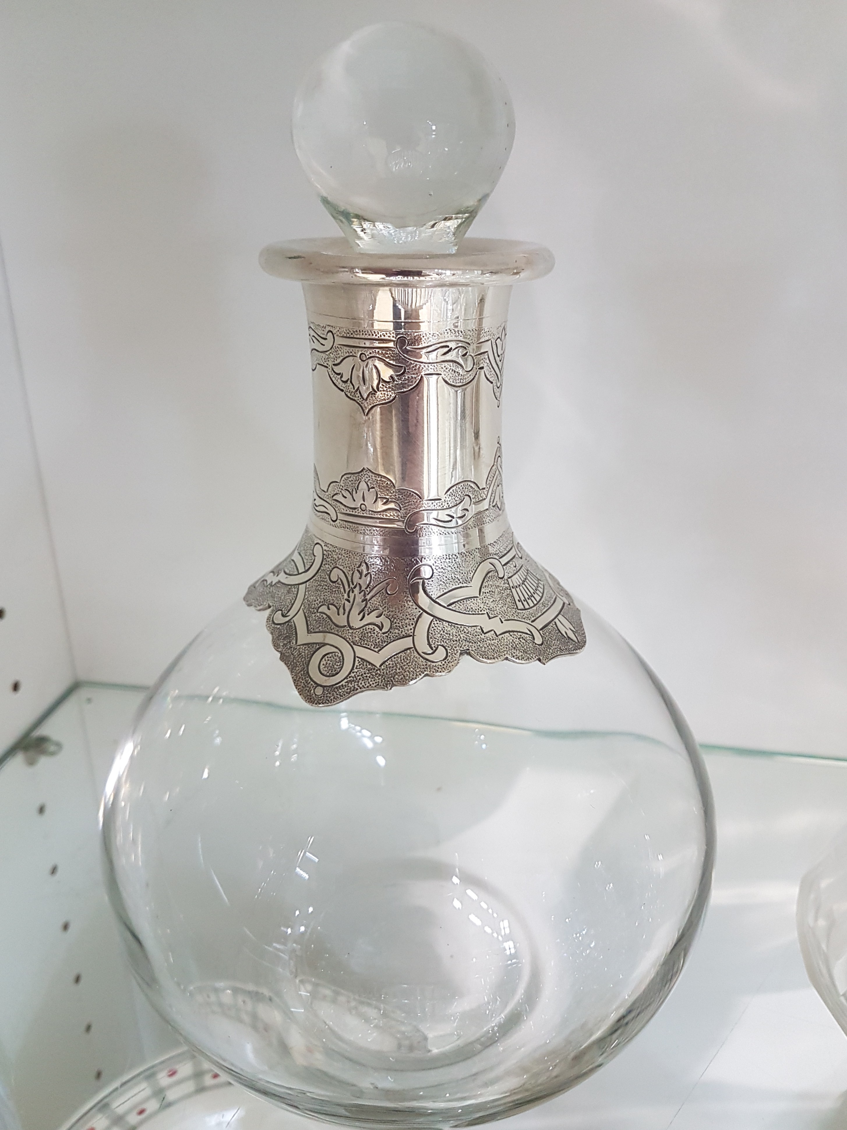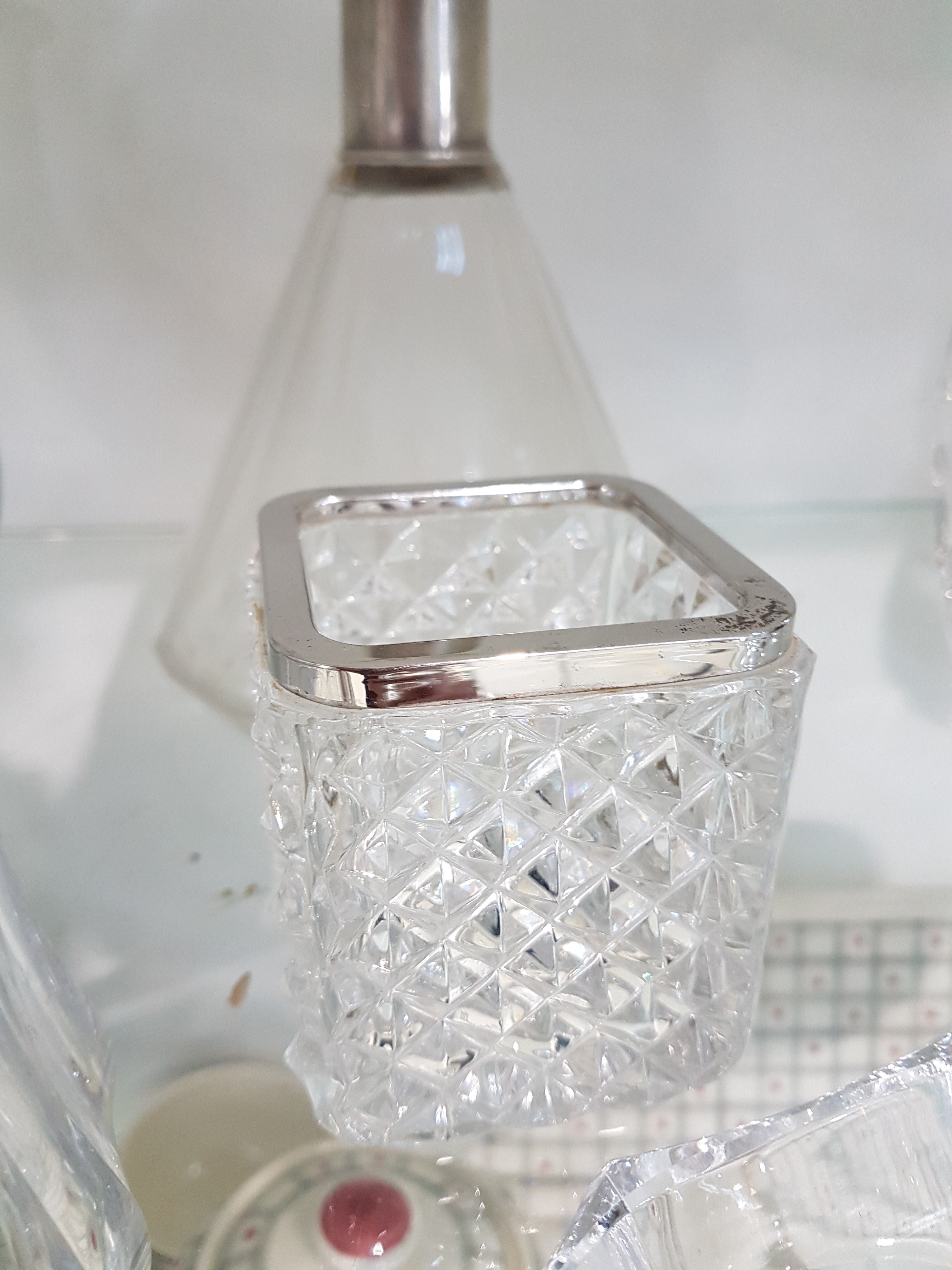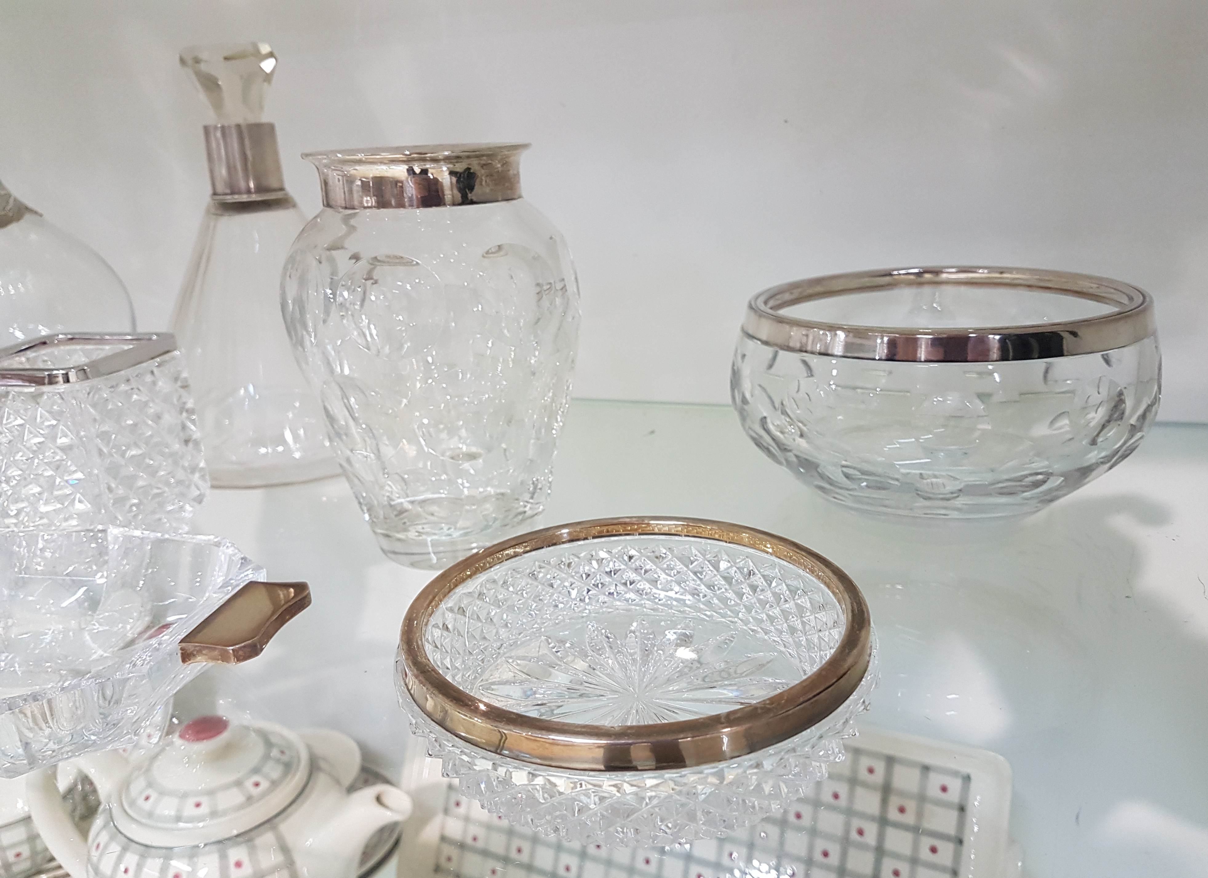 10 pieces of crystal glass with silver fittings, German, 20th century, colorless glass, mostly faceted, edges or handles in 800 silver, various sizes