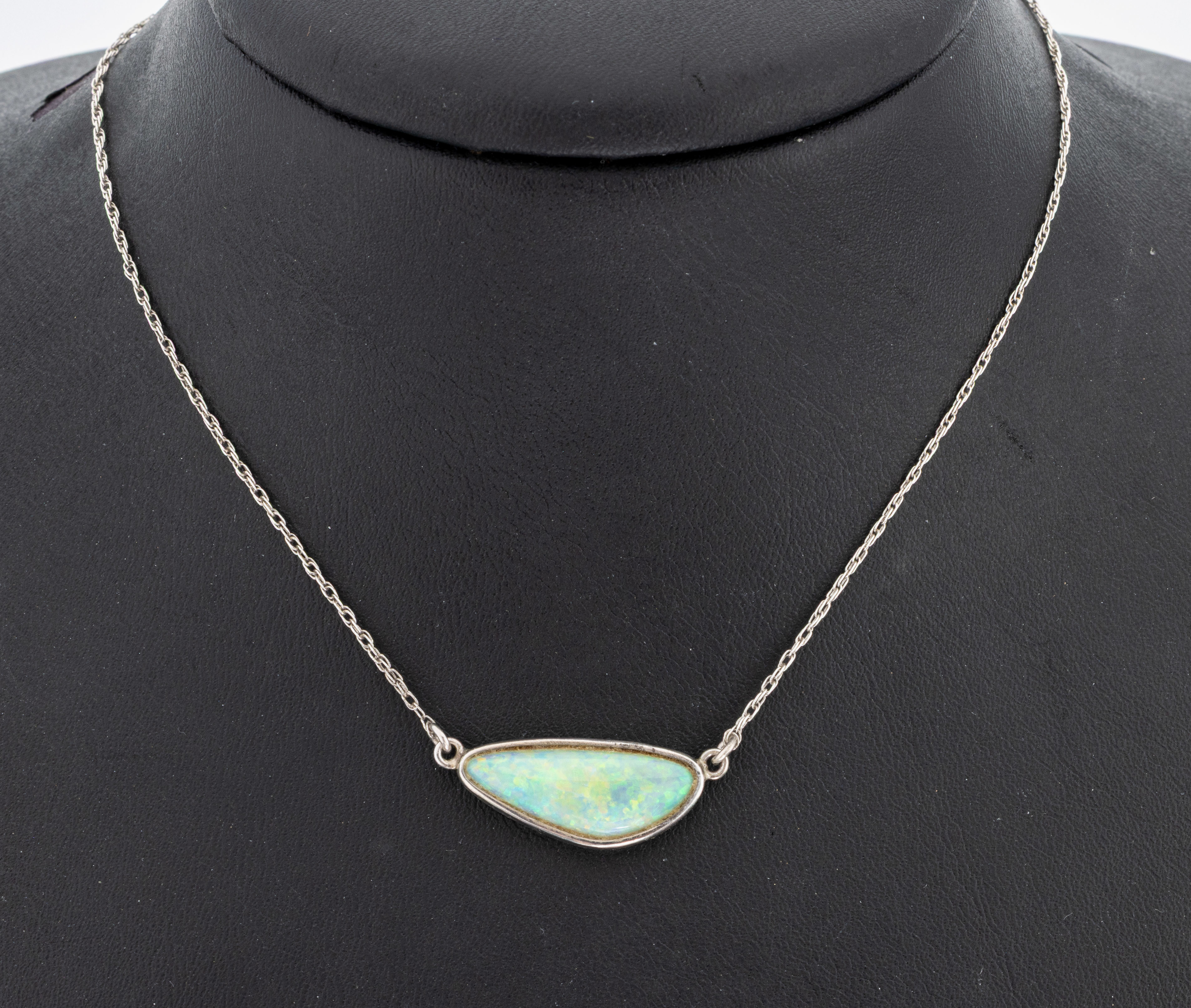 Opal-Collier, 925er Silber, unf. Opal -Cabochon ca. 3.0 ct, L. ca. 51 cm, Federringschließe,