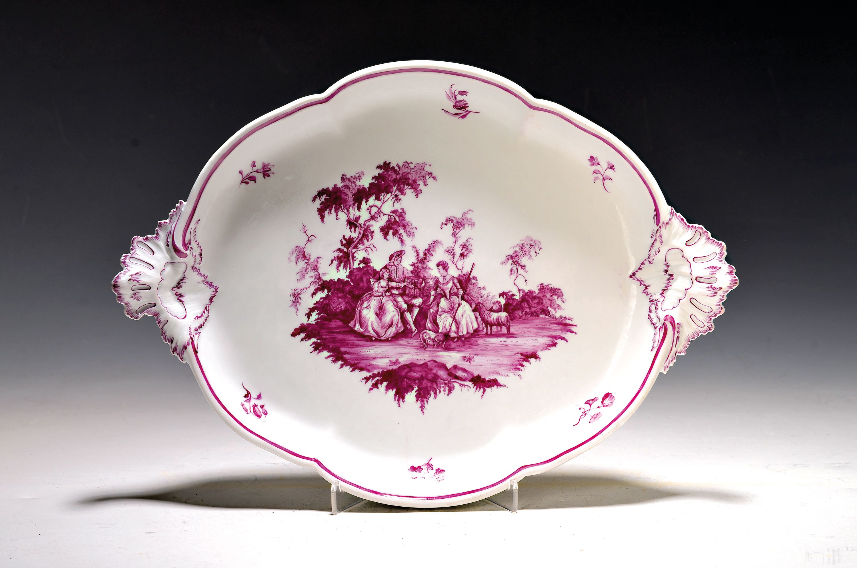 Anbietschale, KPM Berlin, um 1950, Porzellan, purpurfarbene Camaieumalerei von Schäferszene