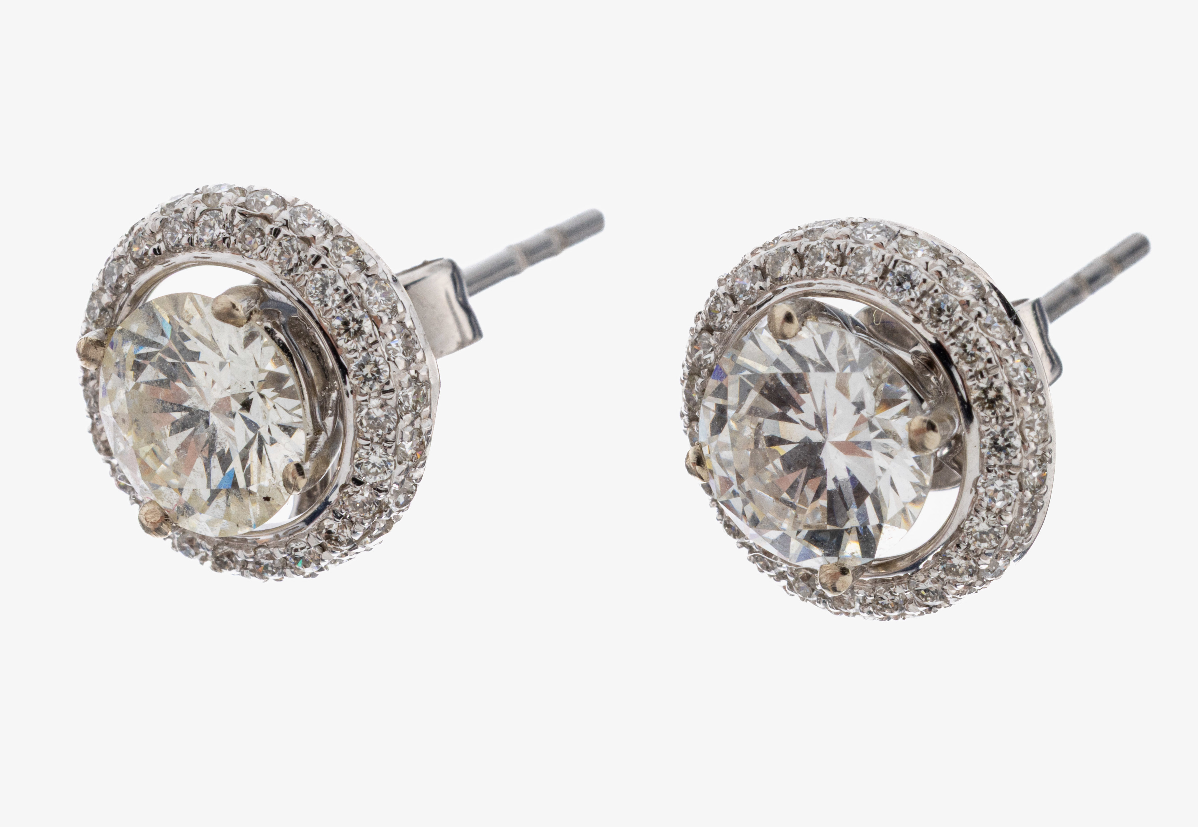 Paar 14 kt Gold Brillant-Ohrstecker, WG 585/000, 2 Brillanten zus. ca. 1.15 ct Weiß/p,abnehmbare