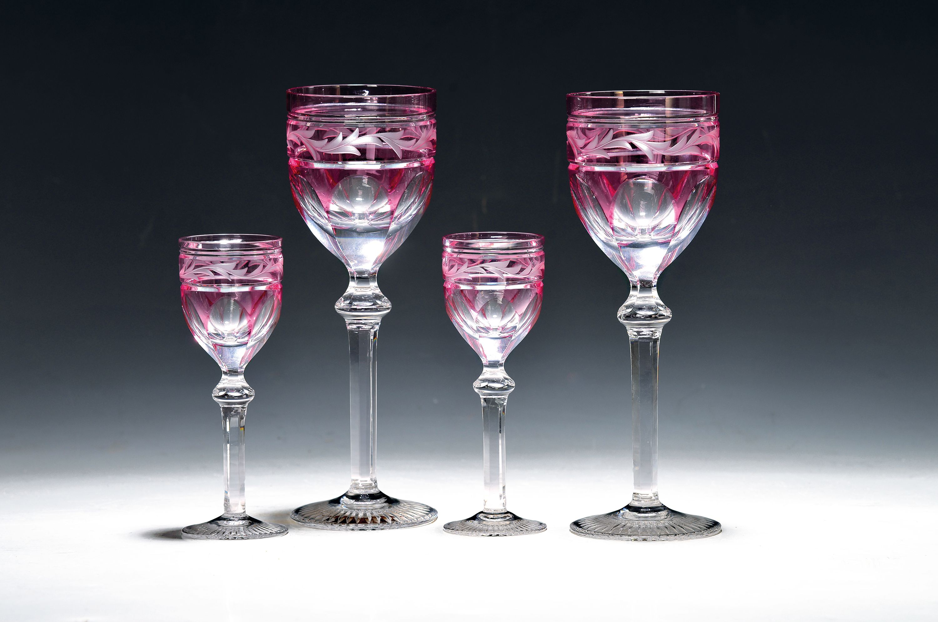 12 Wein- und 12 Likörgläser, wohl Val St. Lambert, 1920er Jahre, Kristallglas partiell