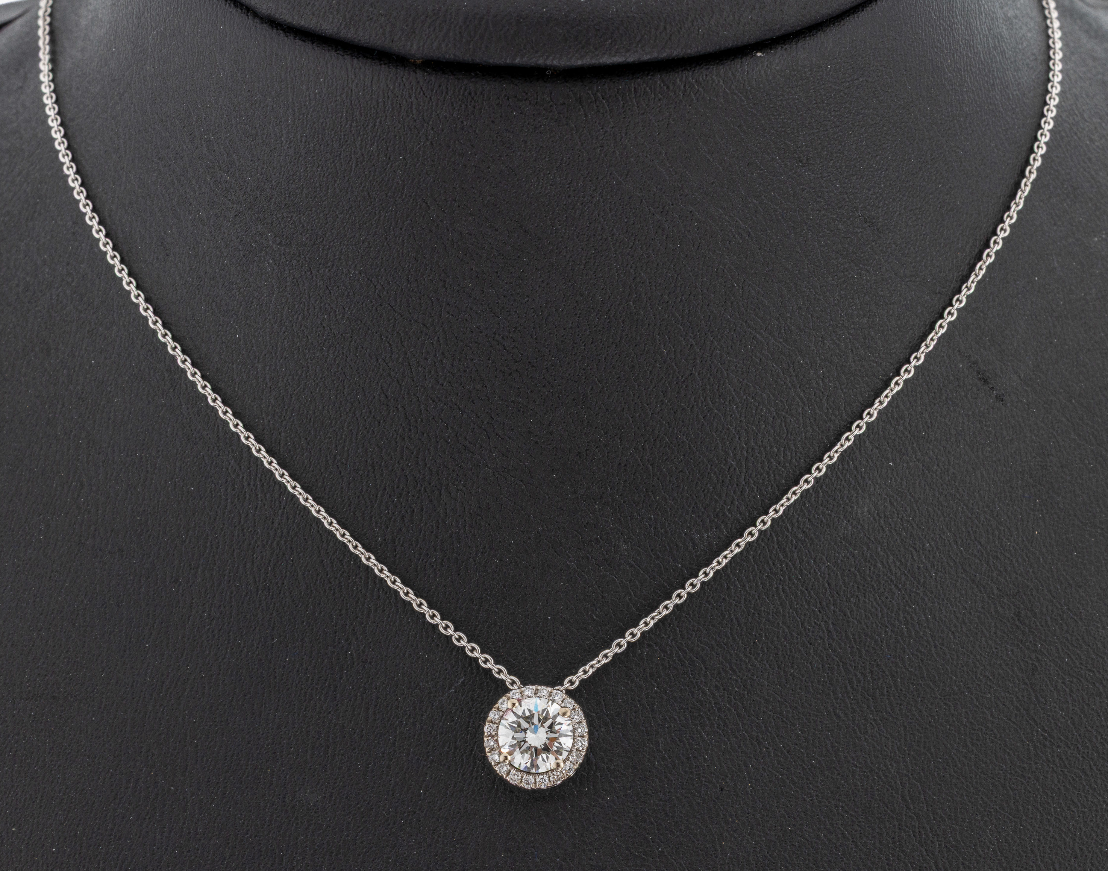 18 kt Gold Brillant-Collier, WG 750/000, mittig Brillant ca. 0.96 ct feines Weiß(G)/if,umgeben