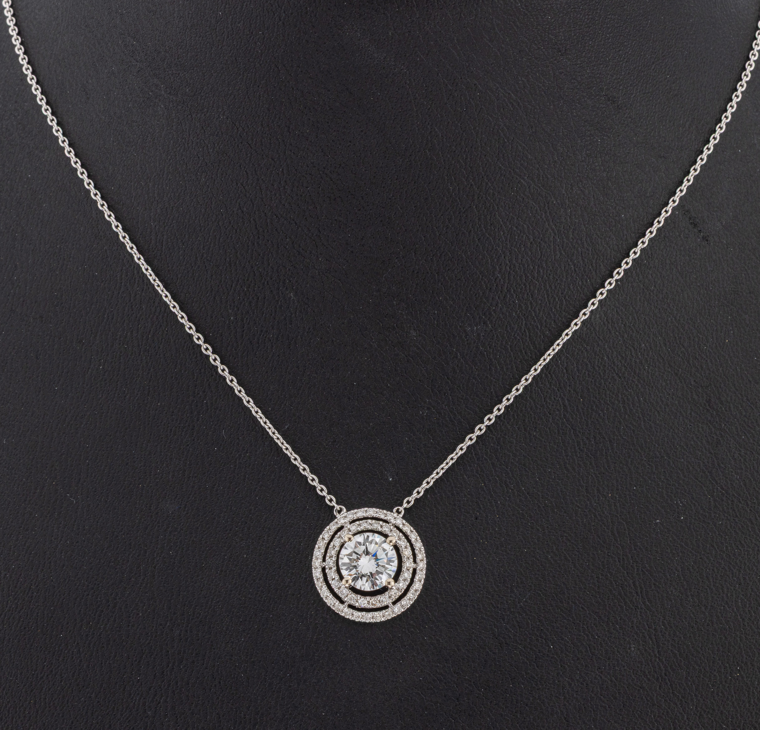 18 kt Gold Brillant-Collier, WG 750/000, mittig Brillant ca. 1.03 ct feines Weiß