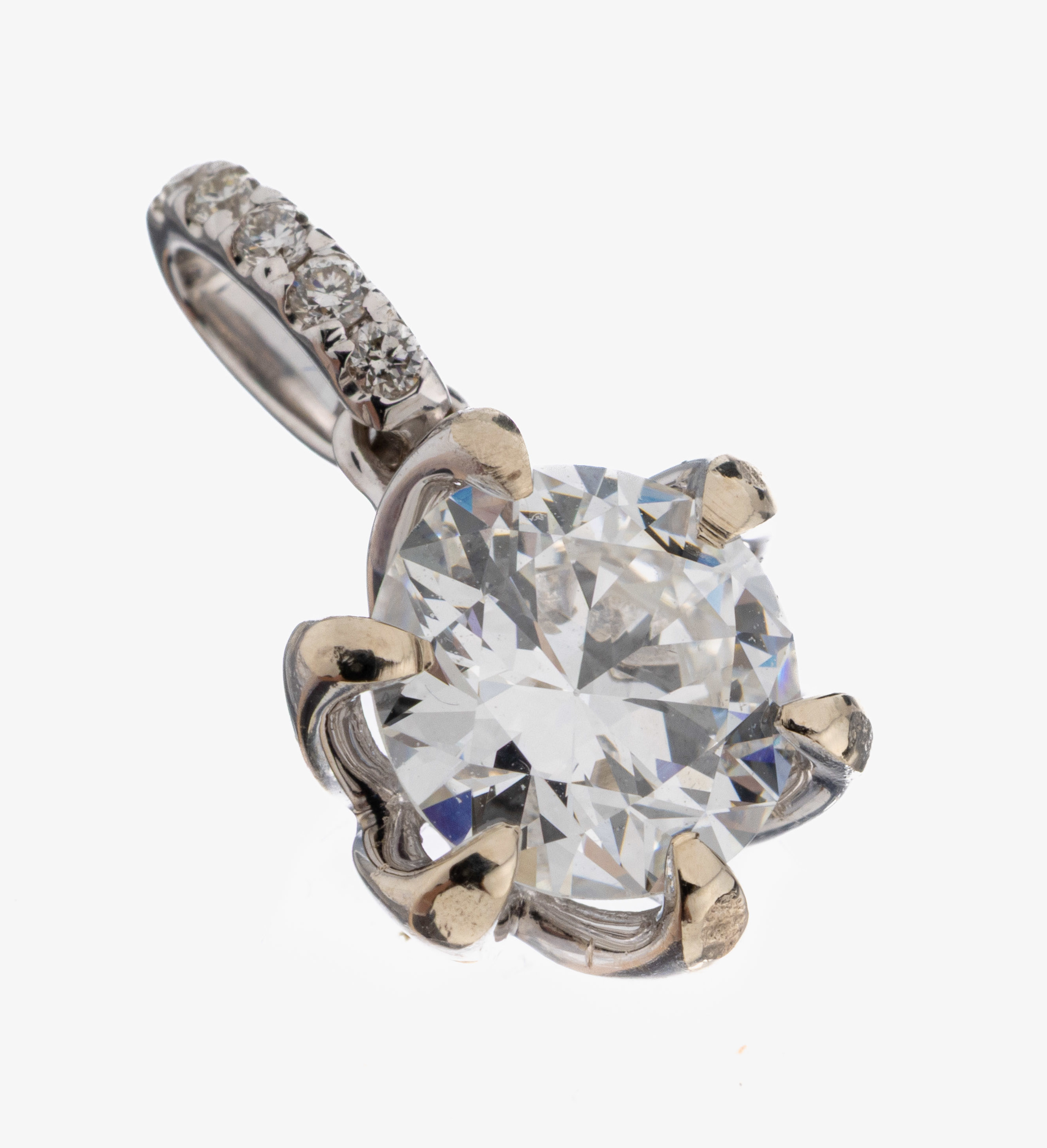 18 kt Gold Brillant-Anhänger, WG 750/000, Brillant ca. 1.09 ct feines Weiß+(F)/si1,