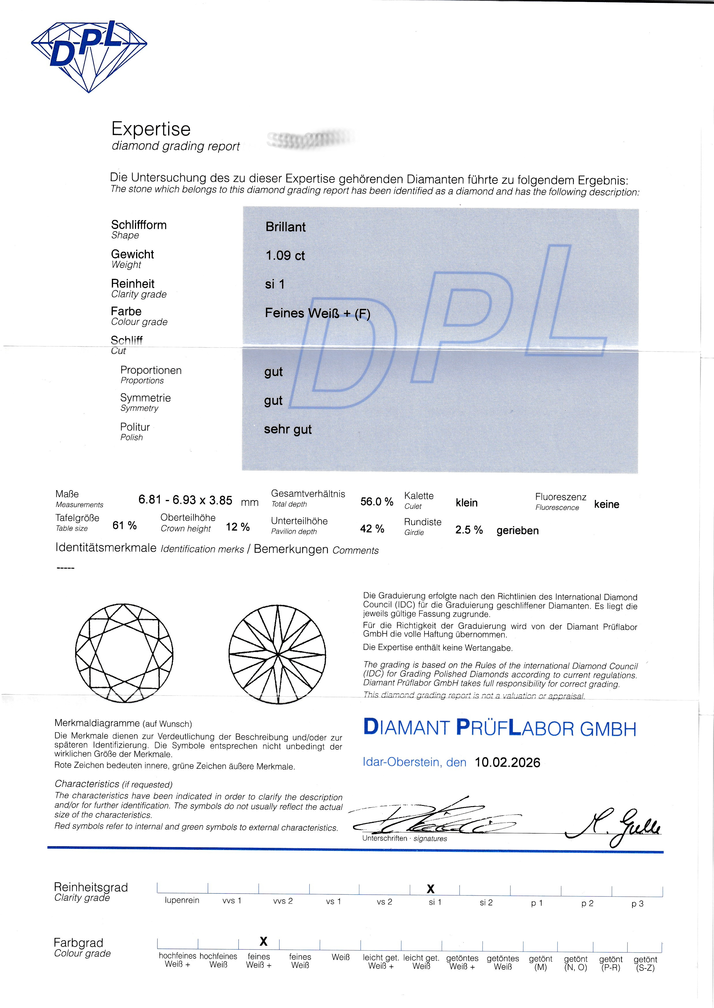 Öse mit Brillanten zus. ca. 0.05 ct Weiß/vs-si, ca. 1.2 g, DPL-Expertise für Mittelstein