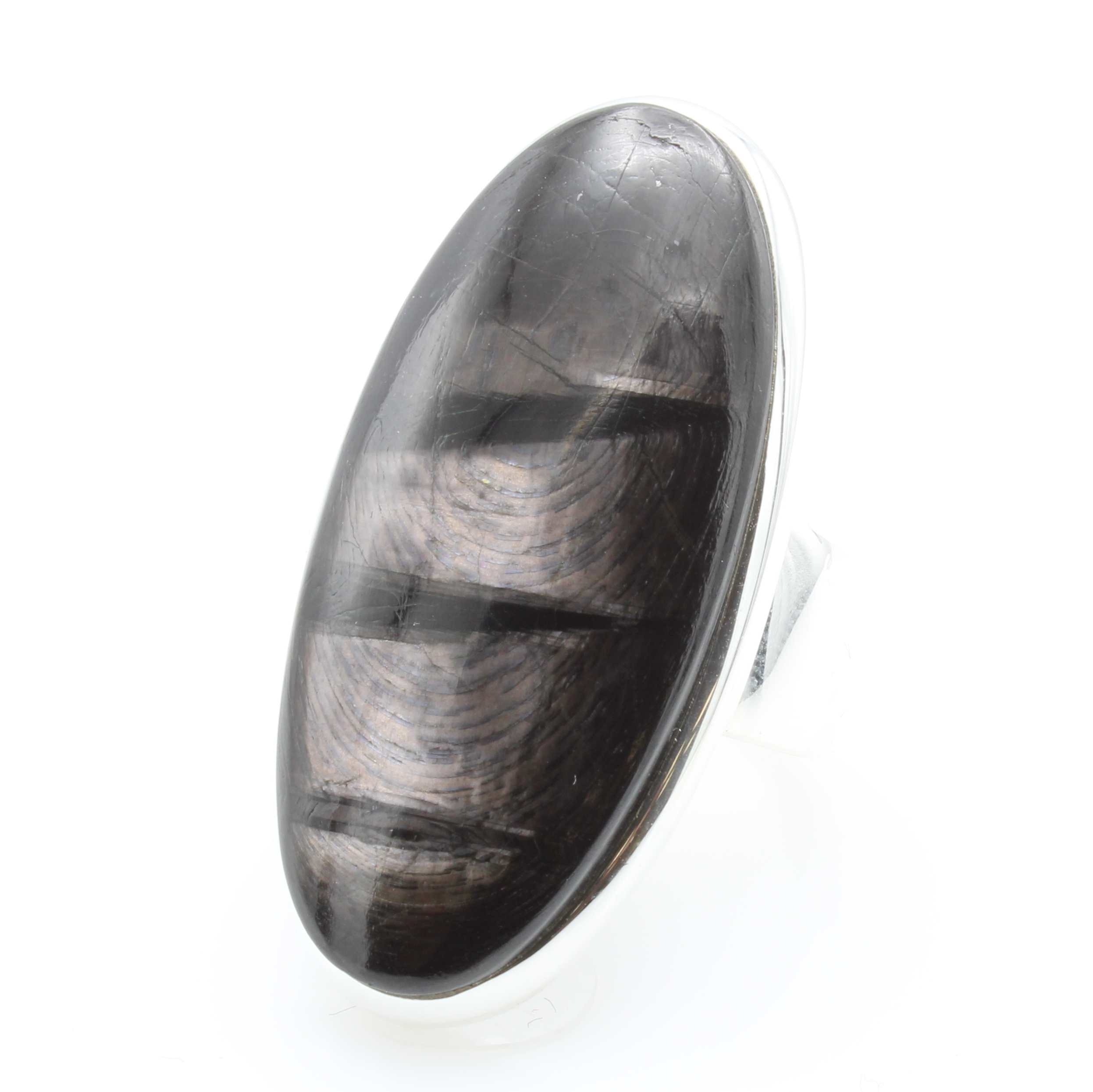 Ring mit Hypersthen, 925er Silber, Maße ca. 3.7x1.7 cm, RW ca. 58