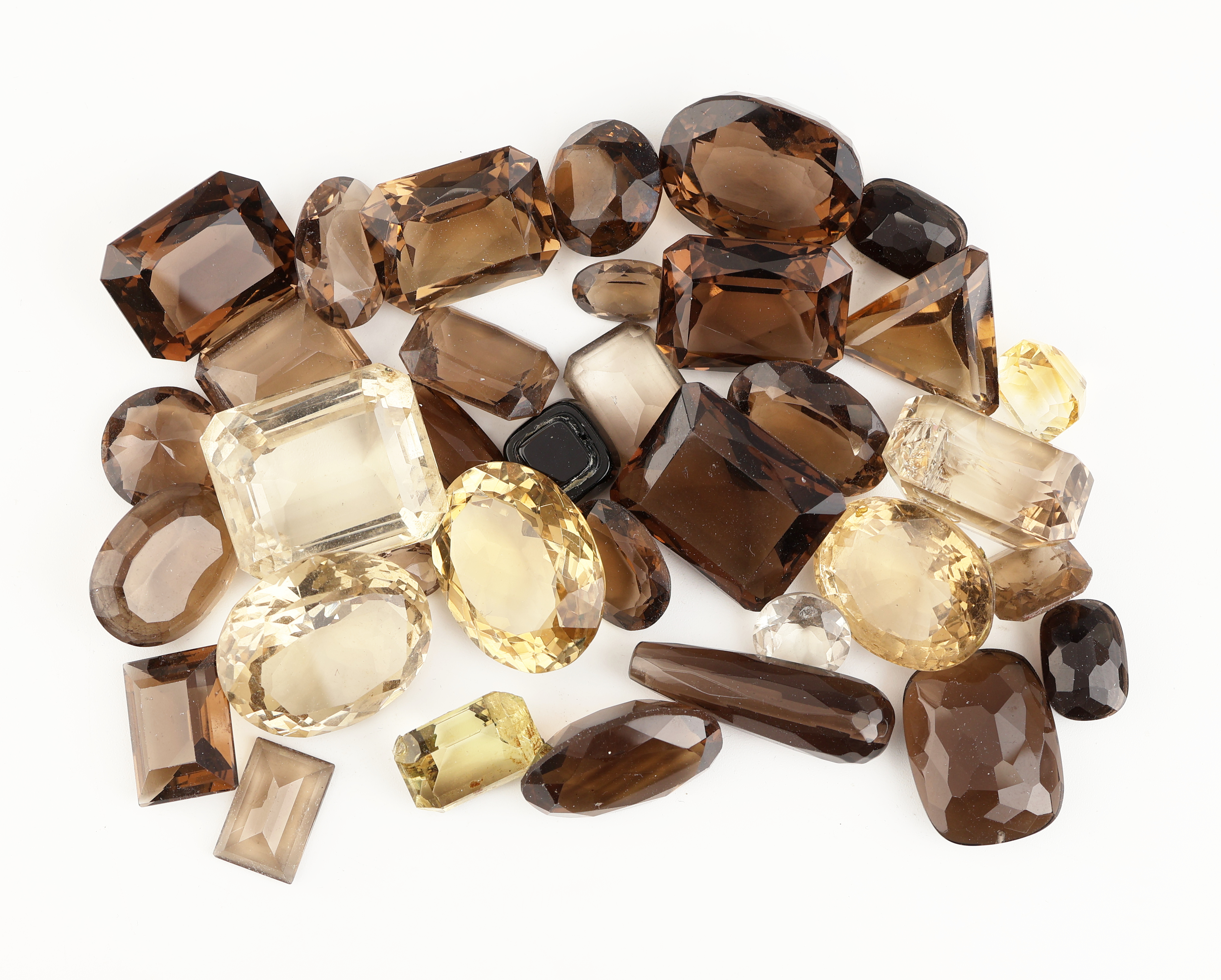 Lot lose Rauchquarze, zus. ca. 642.9 ct, versch. Größen, Formen und Farbnuancen, Ausfassware teilw. besch.