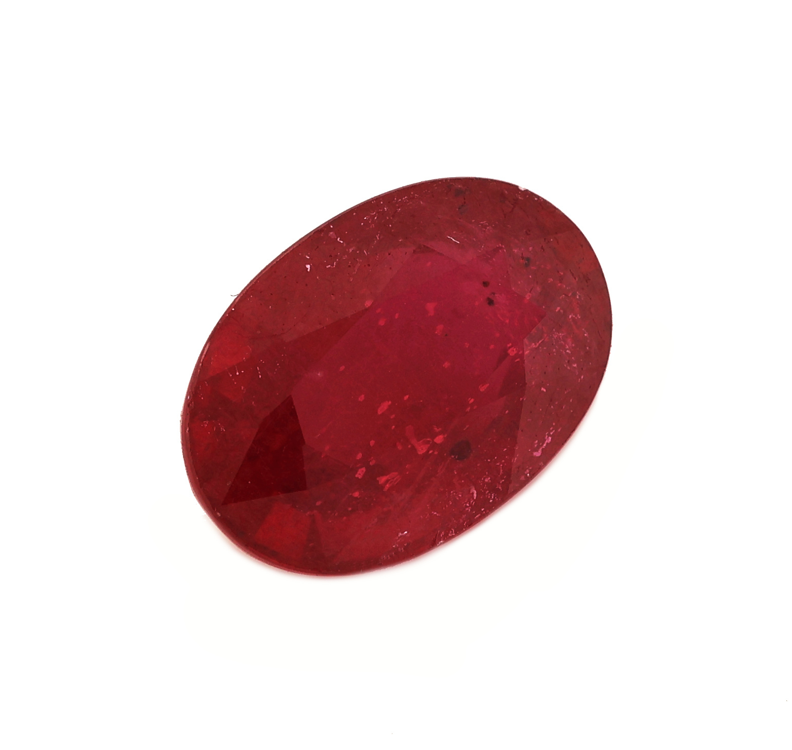 Loser Rubin (beh.), ca. 4.23 ct, ovalfacett.