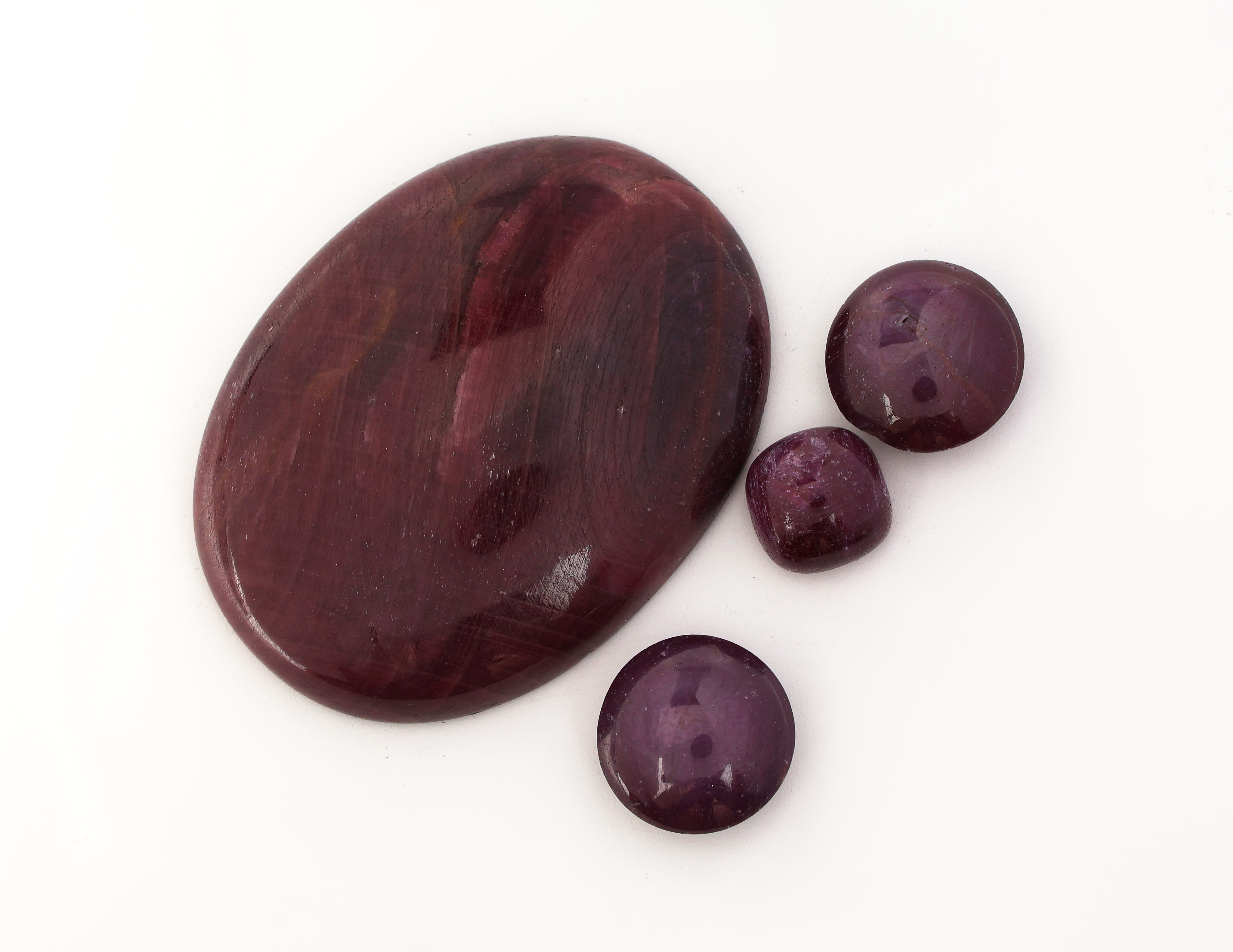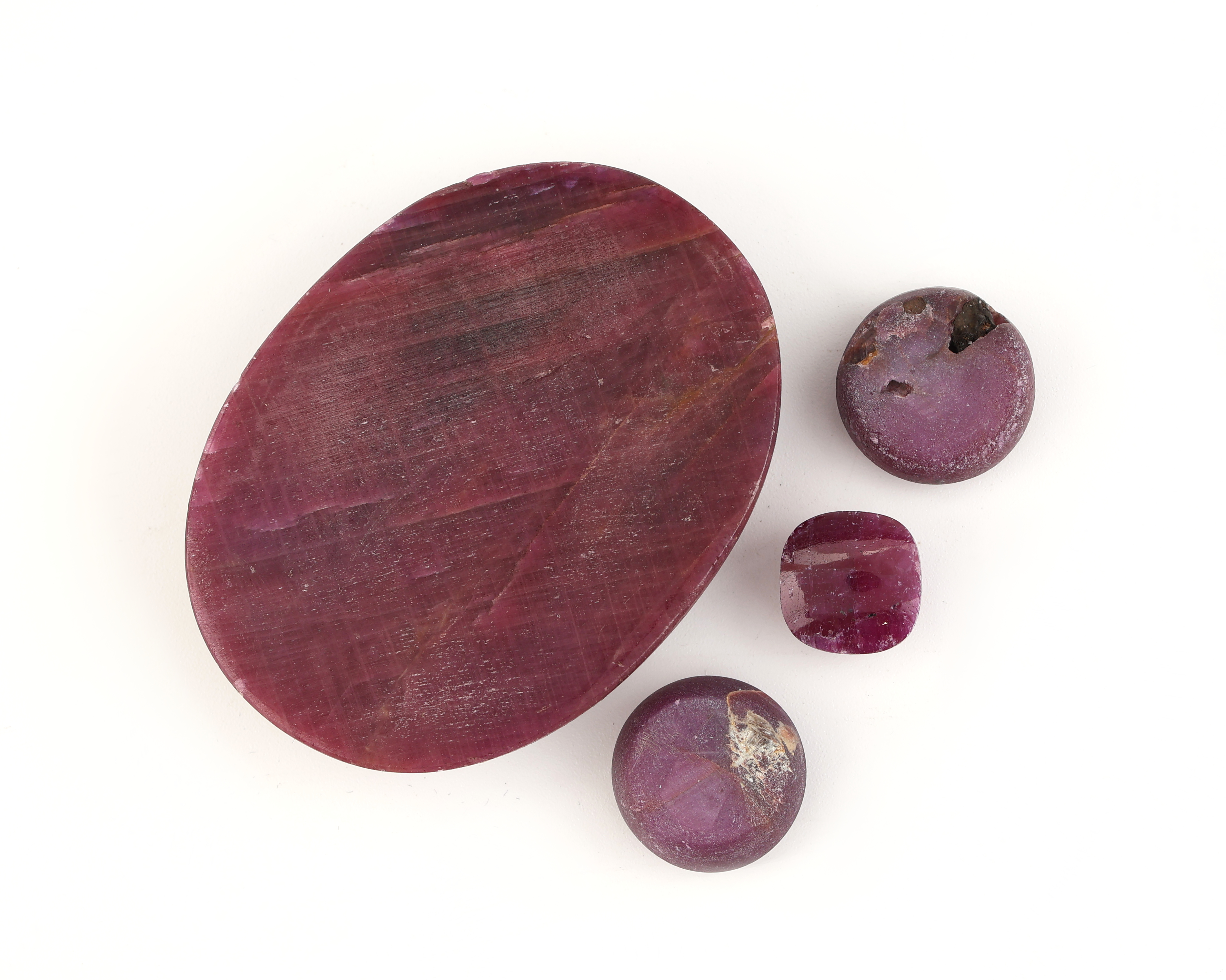 Lot 4 loose rubies, total approx. 247.30 ct, cabochons in different sizes