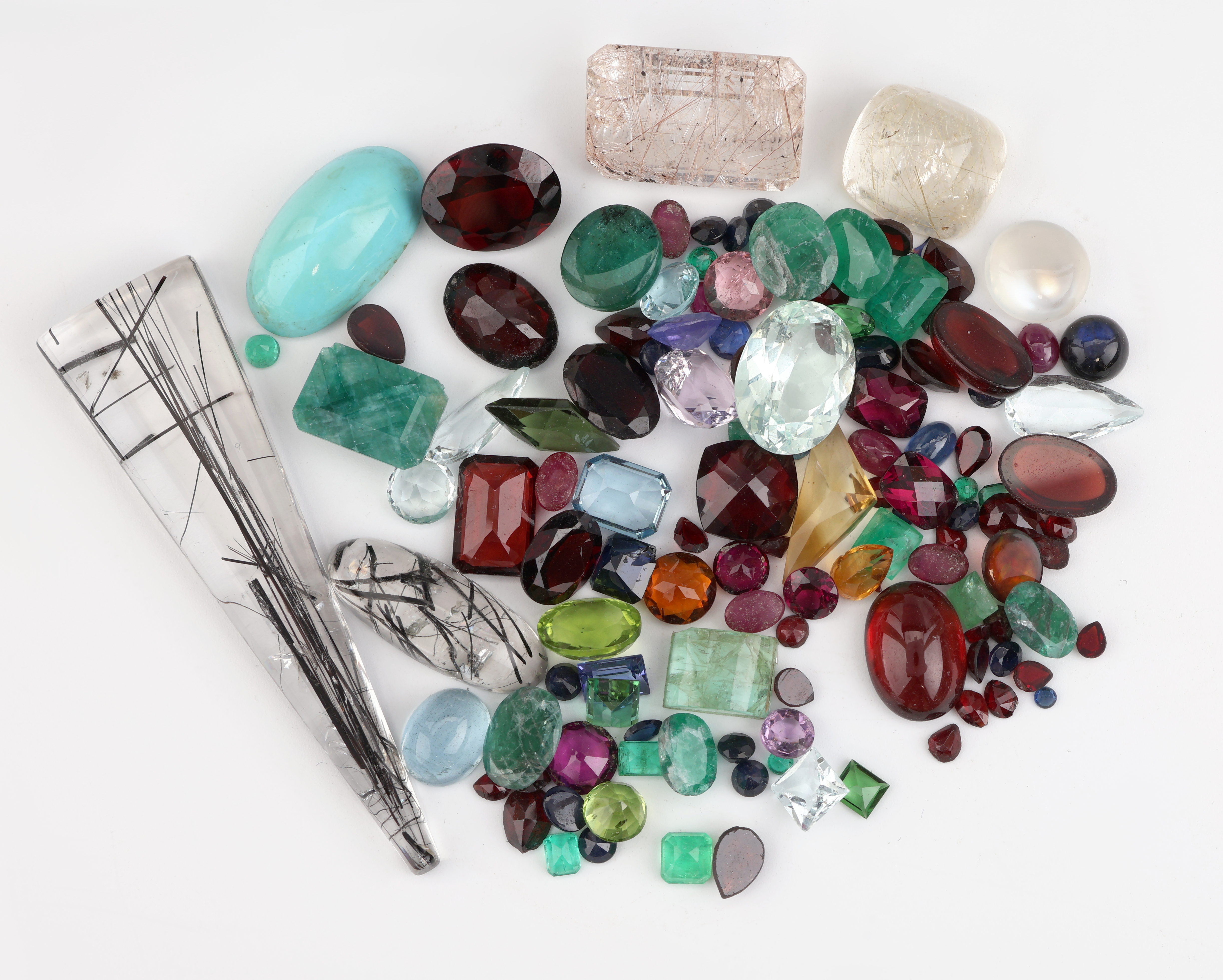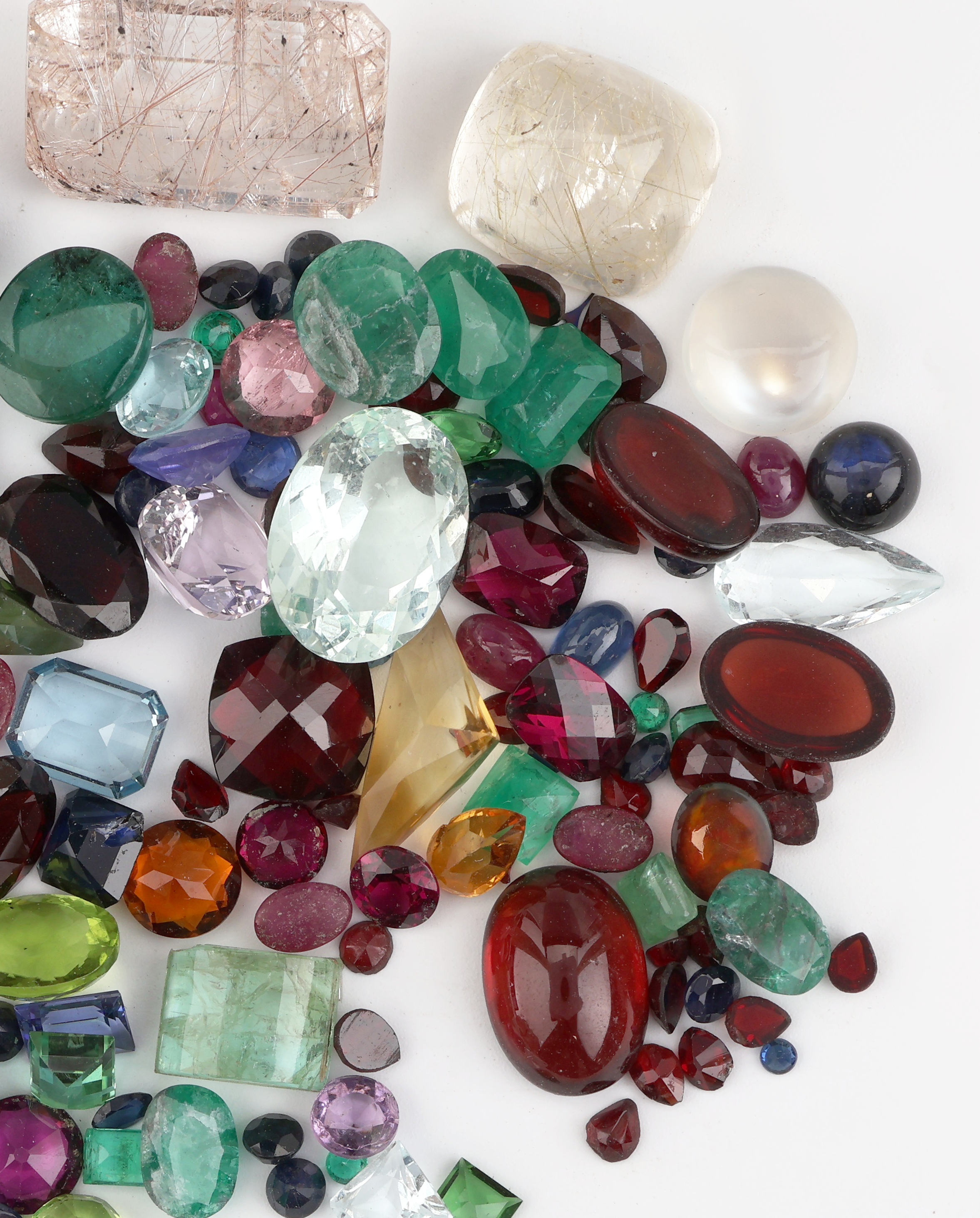 Lot div. lose Farbsteine, zus. ca. 274.9 ct, Rutilquarze, Granate, Peridots, Smaragde