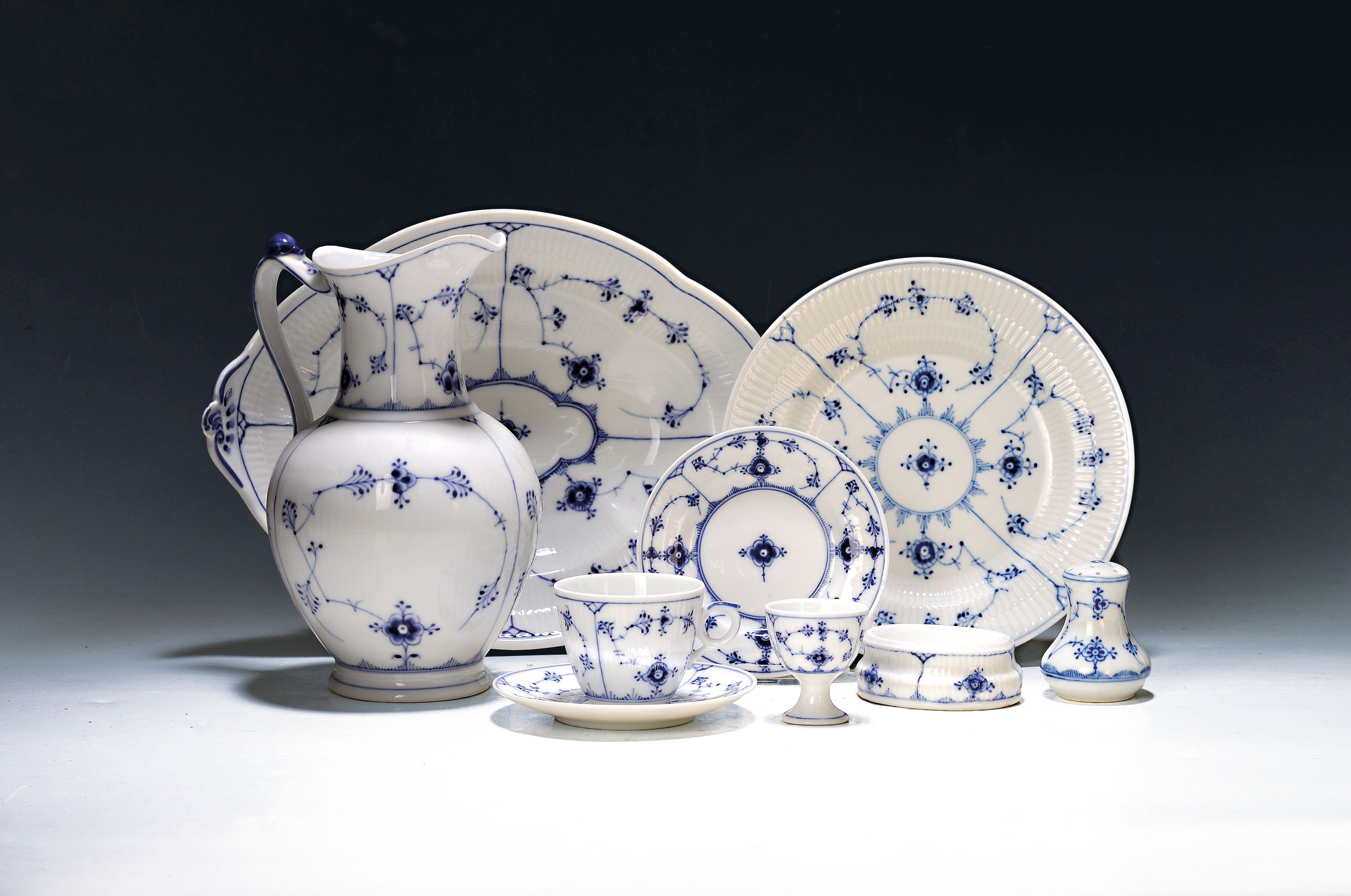 5 Kuchenteller, 8 Tassen mit 7 Untertassen, 3 Fingerschälchen, 2 Eierbecher, ovale