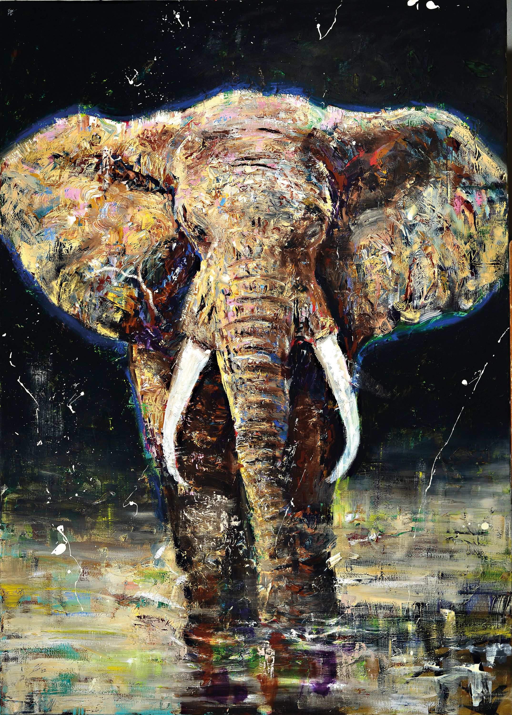 Yves-Marcel Münch, geb. 1994, zeitgen. Künstler aus Wiesloch, Elefant, auf den