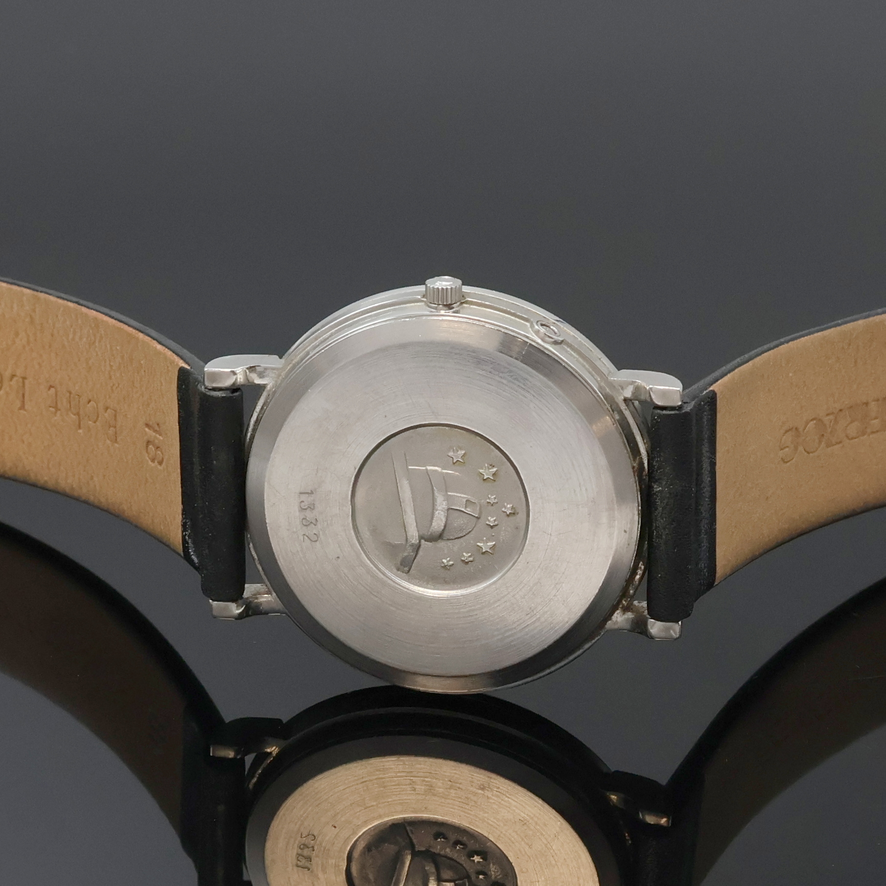 steel bracelet, silvered dial, raised hour- signs, date, calibre 1320, precision