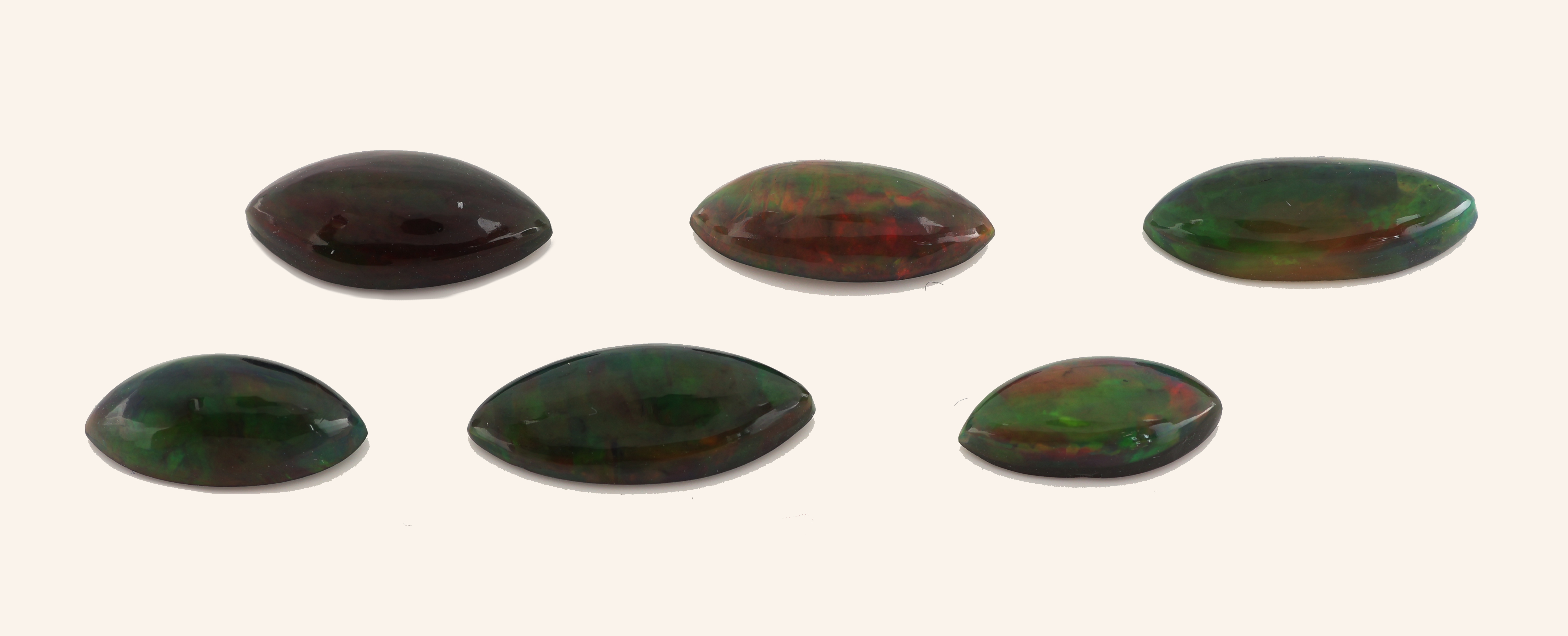 Lot 6 lose Opalcabochons, 16.73 ct, Schwarzopal mit schönem Farbspiel in Grün,