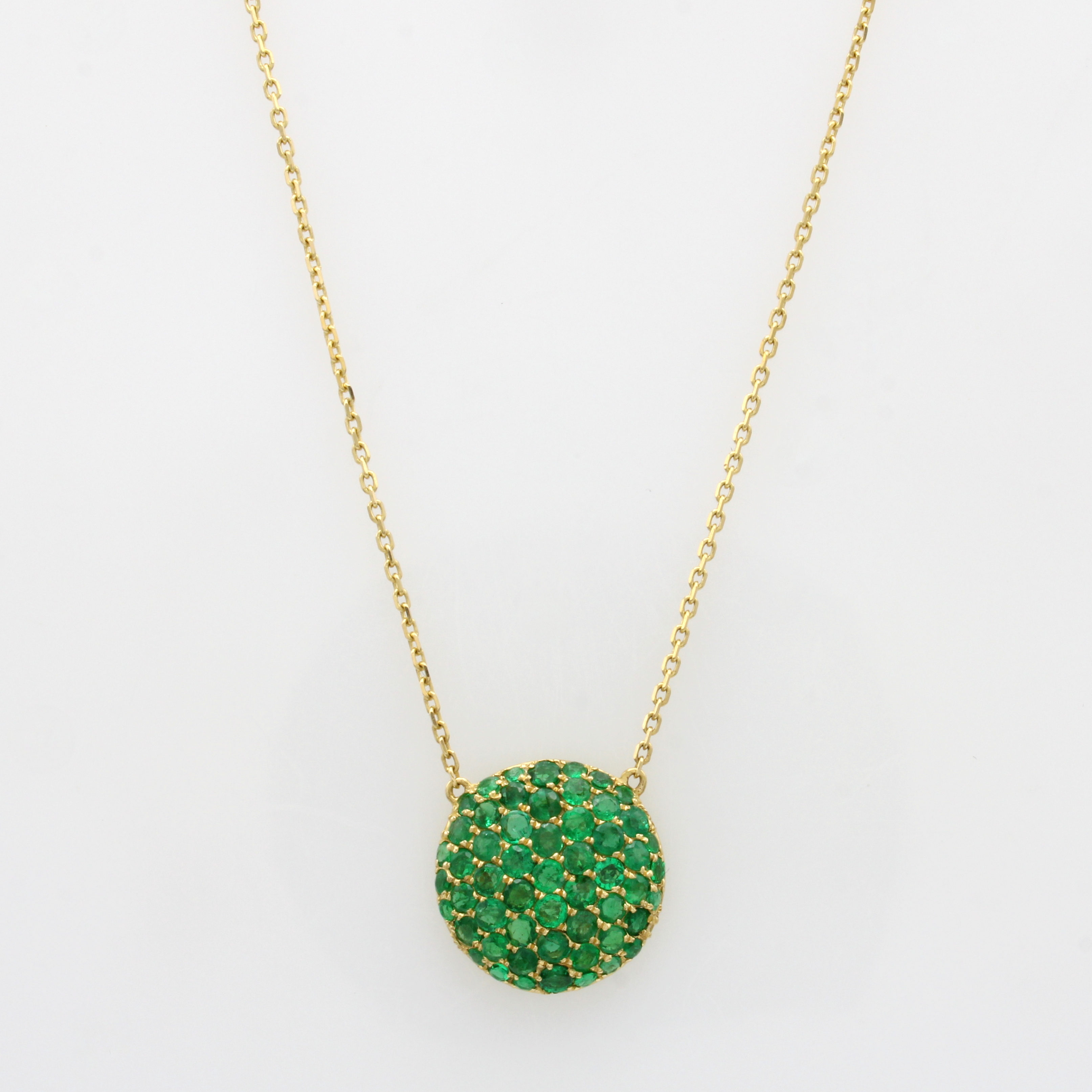 Collier mit Smaragden, GG 750/000, runder Anh. bes. m. fac. Smaragden zus. ca. 1.86 ct, in L. ca. 40 u. 42 cm Schätzpreis: 3100, - EUR