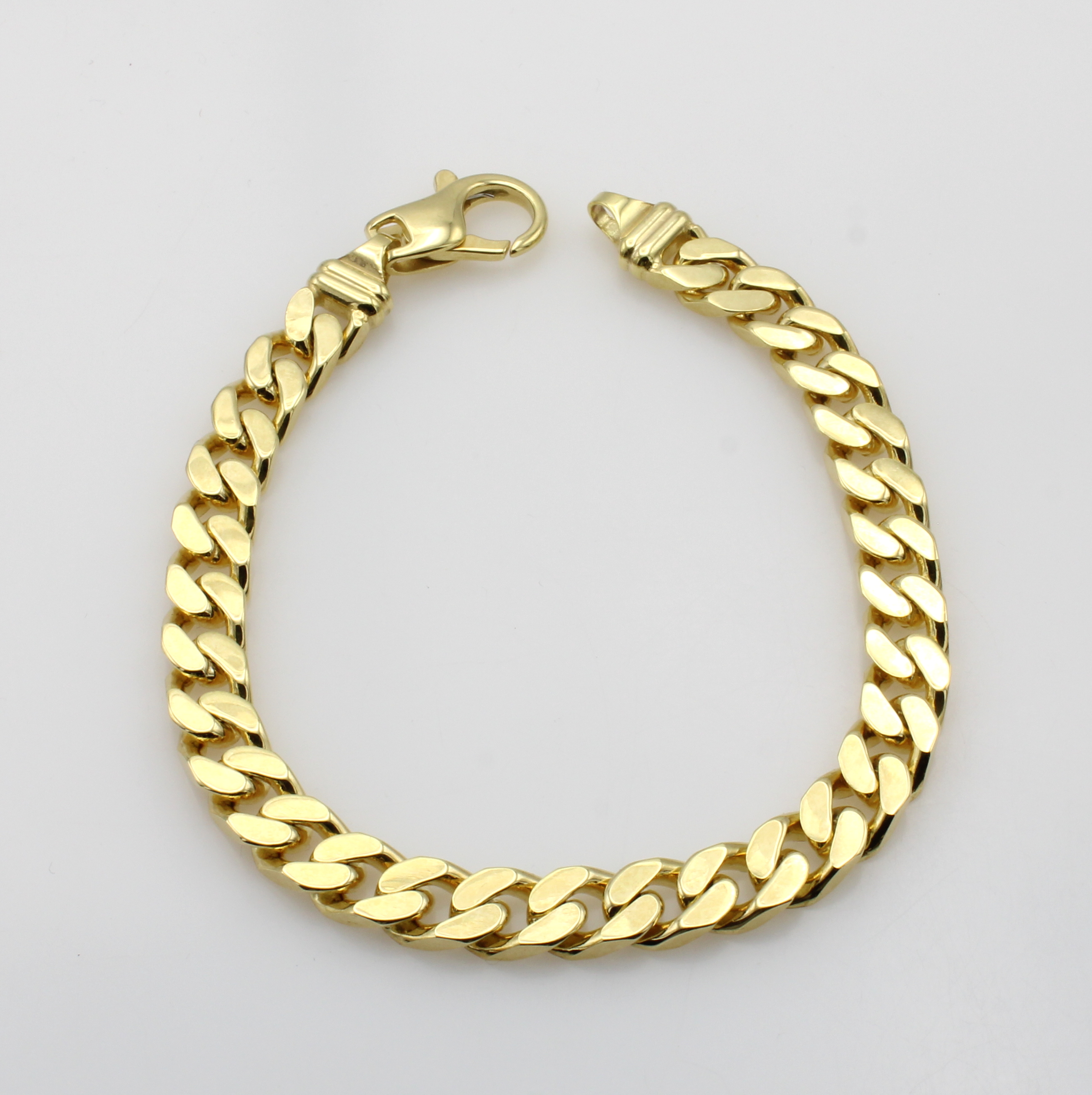 Massives Panzerarmband, GG 585/000, Kara- binerschl., B. ca. 7 mm, L. ca. 21 cm