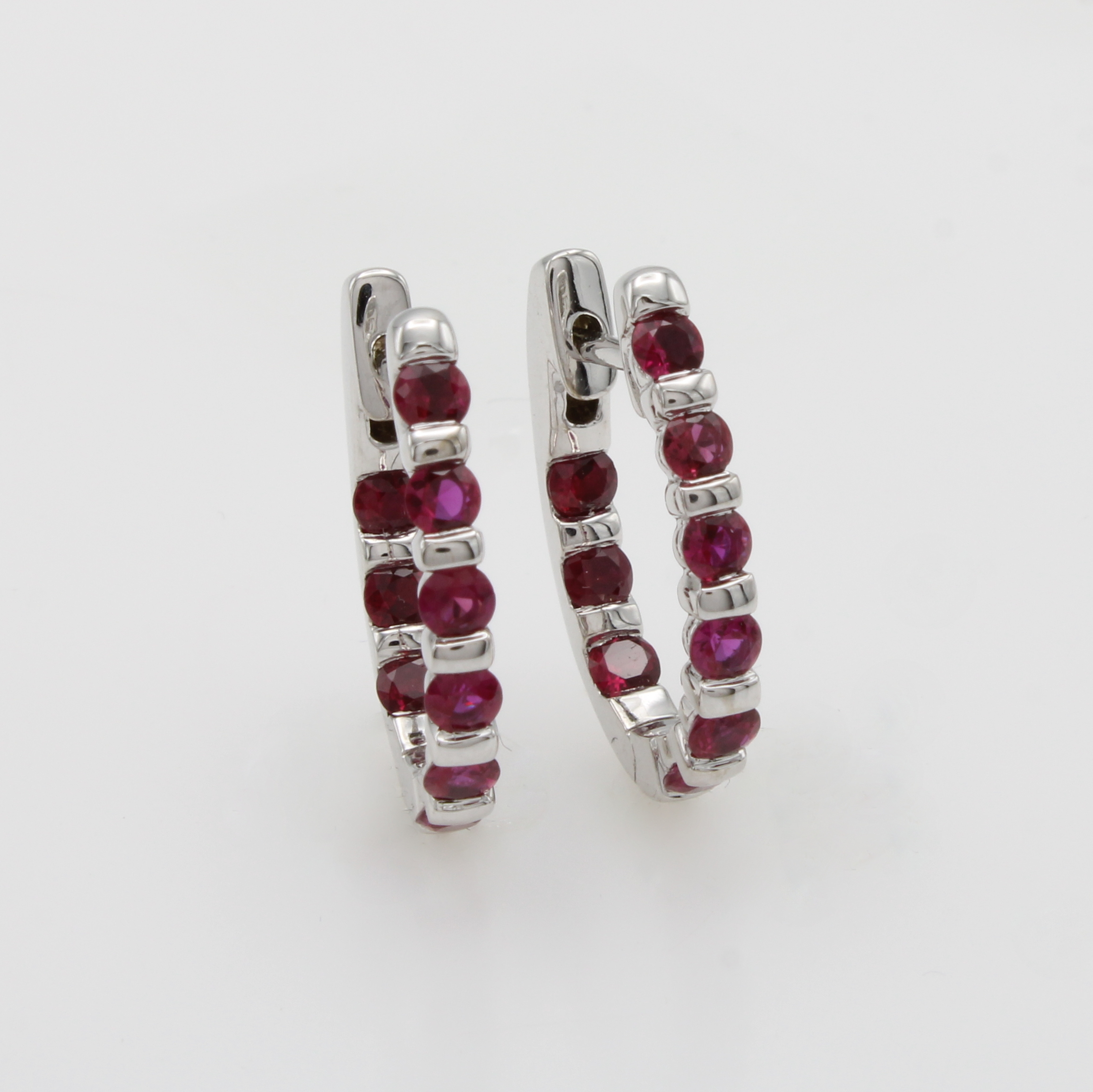 Paar Klappcreolen mit Rubinen, WG 750/000, ovale Form, 18 fac. Rubine zus. ca. 1.40 ct Schätzpreis: 2750, - EUR