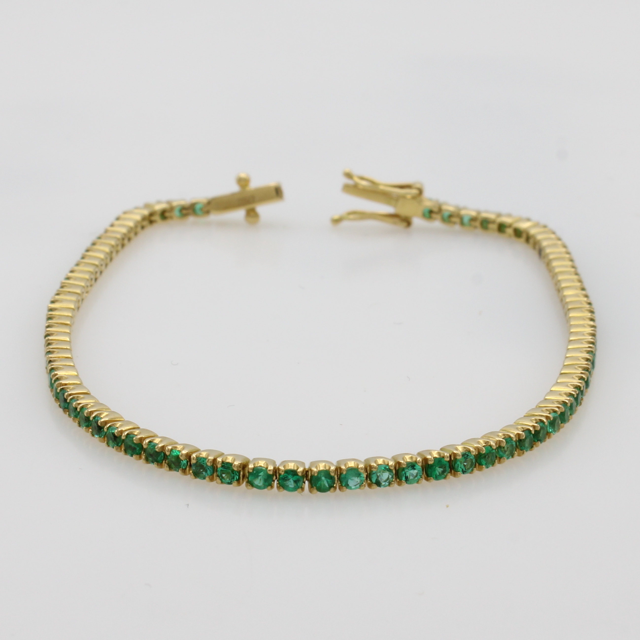 Rivierarmband mit Smaragden, GG 750/000, fac. Smaragde zus. ca. 1.80 ct, Kastenschl. m.zwei Sicherheitsachten, L. ca. 18.5 cm Schätzpreis: 4480, - EUR