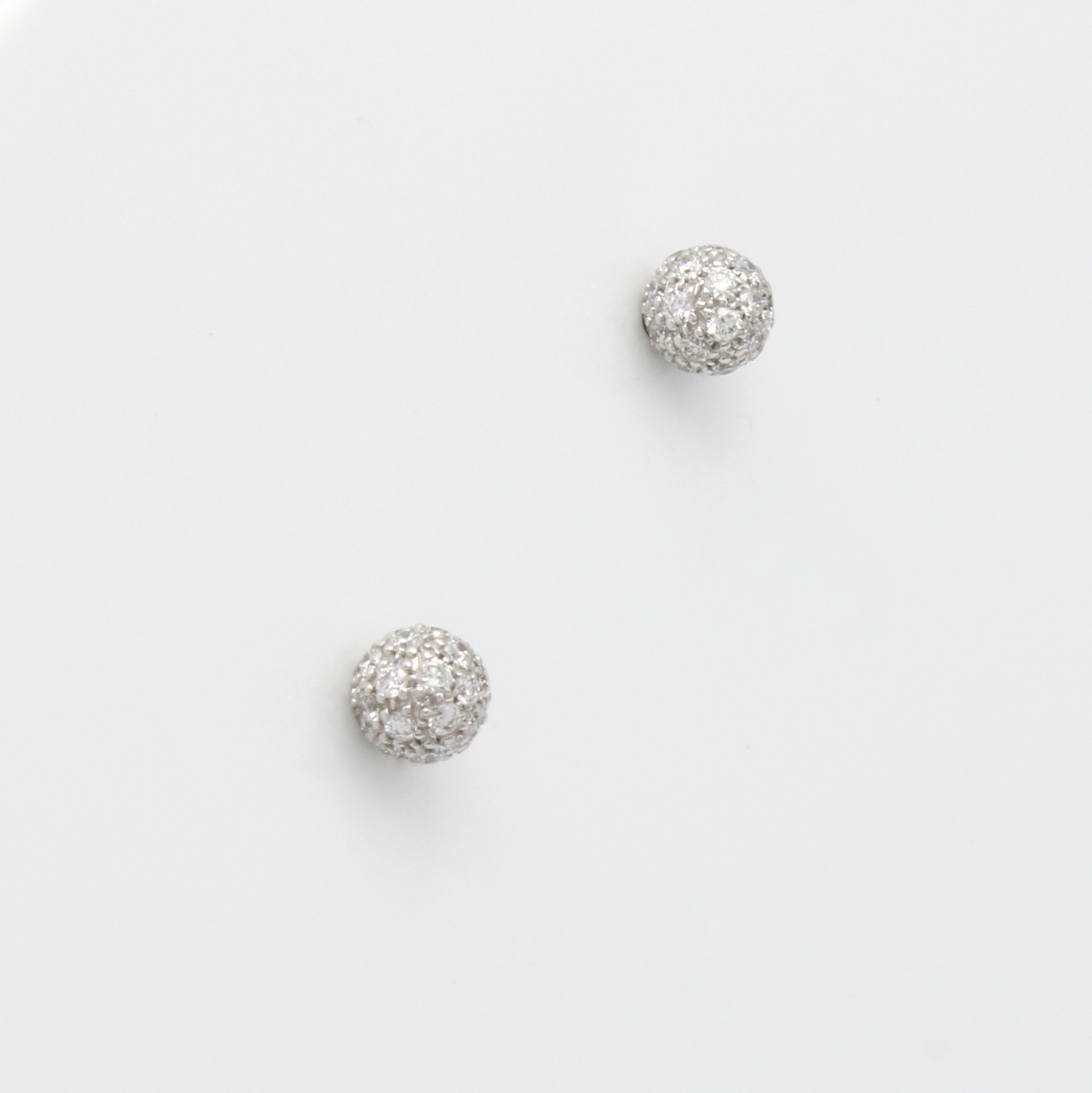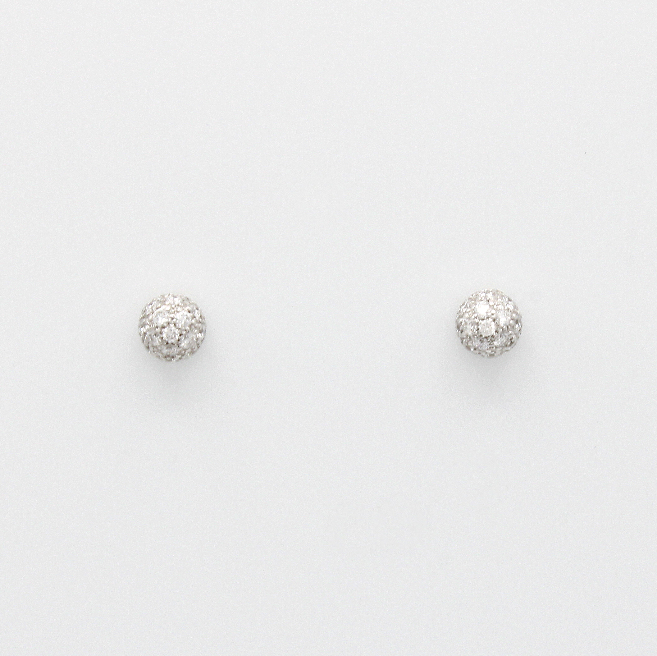 Paar Ohrstecker mit Brillanten, WG 750/000, 2 Kugeln bes. m. insges. 62 Brill. zus. ca. 0.36 ct feines Weiß/si, D. ca. 4 mm Schätzpreis: 1600, - EUR