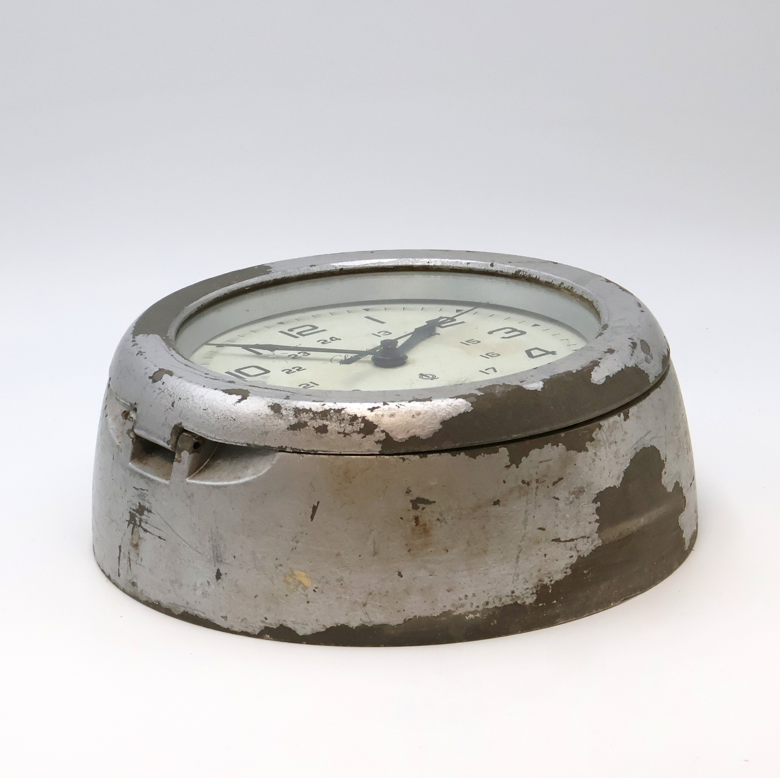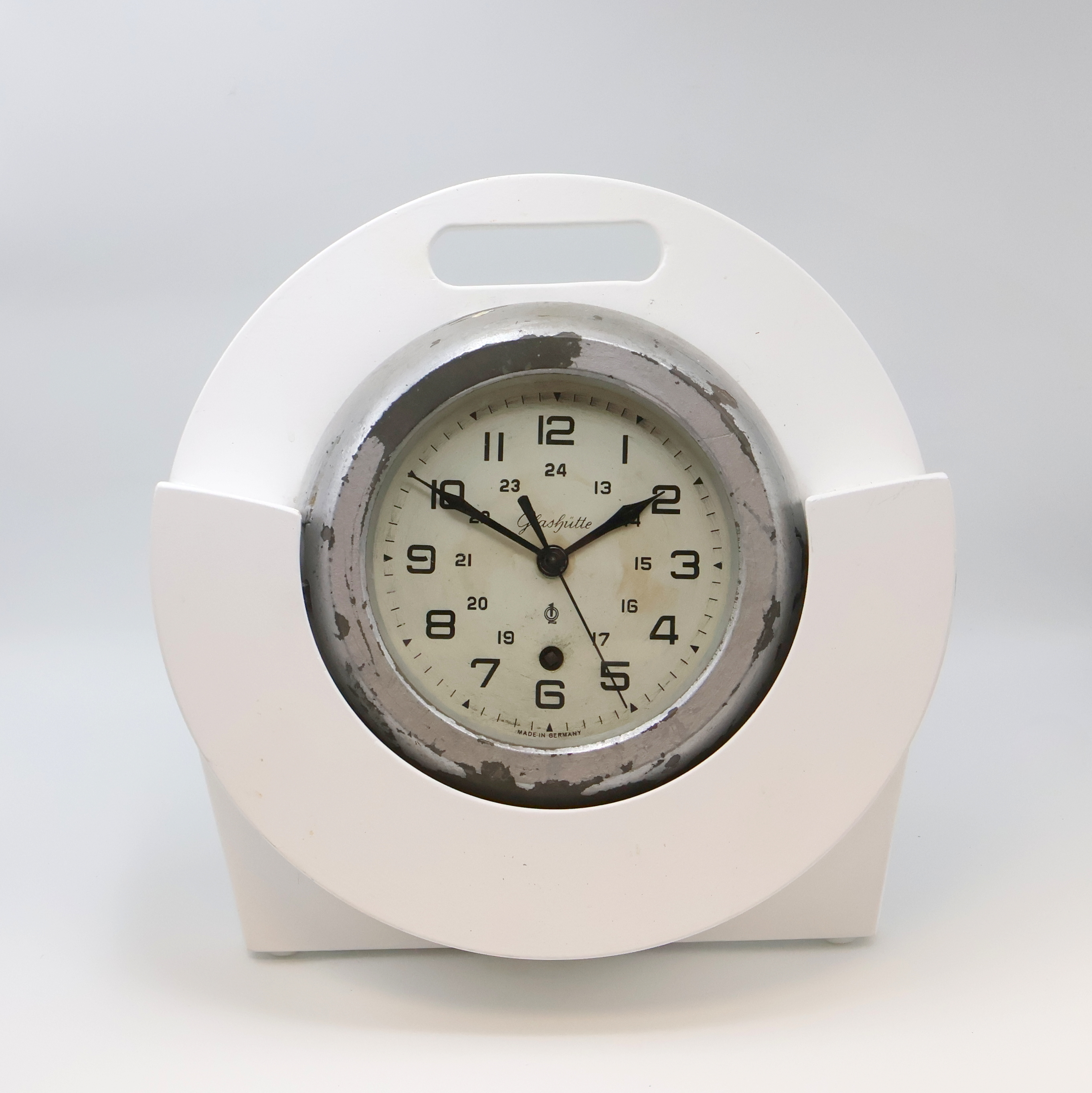 GLASHÜTTE Schiffswanduhr Güteklasse 1, Deutschland um 1965, grau lackiertes Metallgeh.,