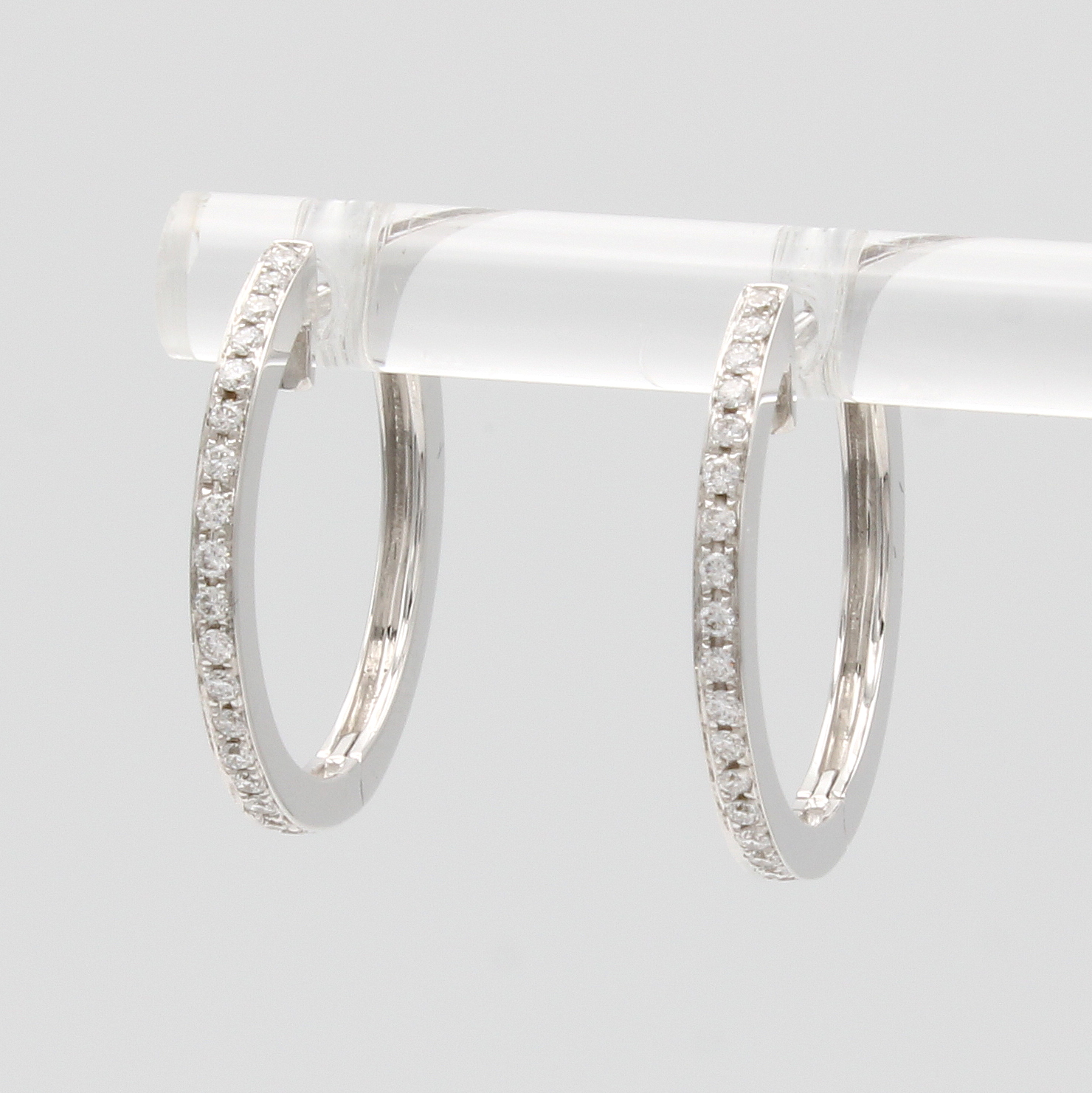 Paar Klappcreolen mit Brillanten, WG 750/000, 40 Brill. zus. ca. 0.20 ct feines Weiß/si, D. ca. 19 mm Schätzpreis: 2400, - EUR