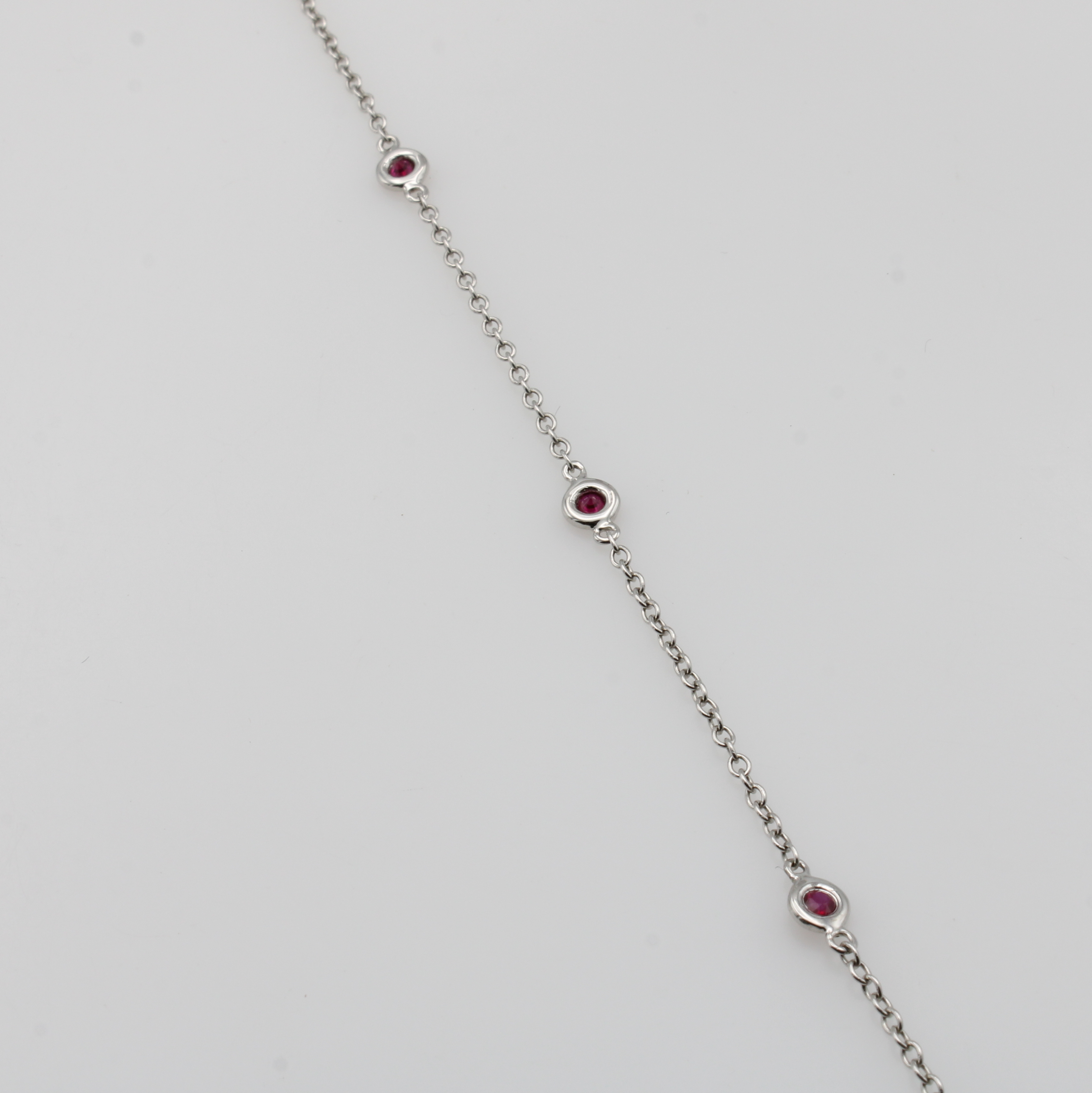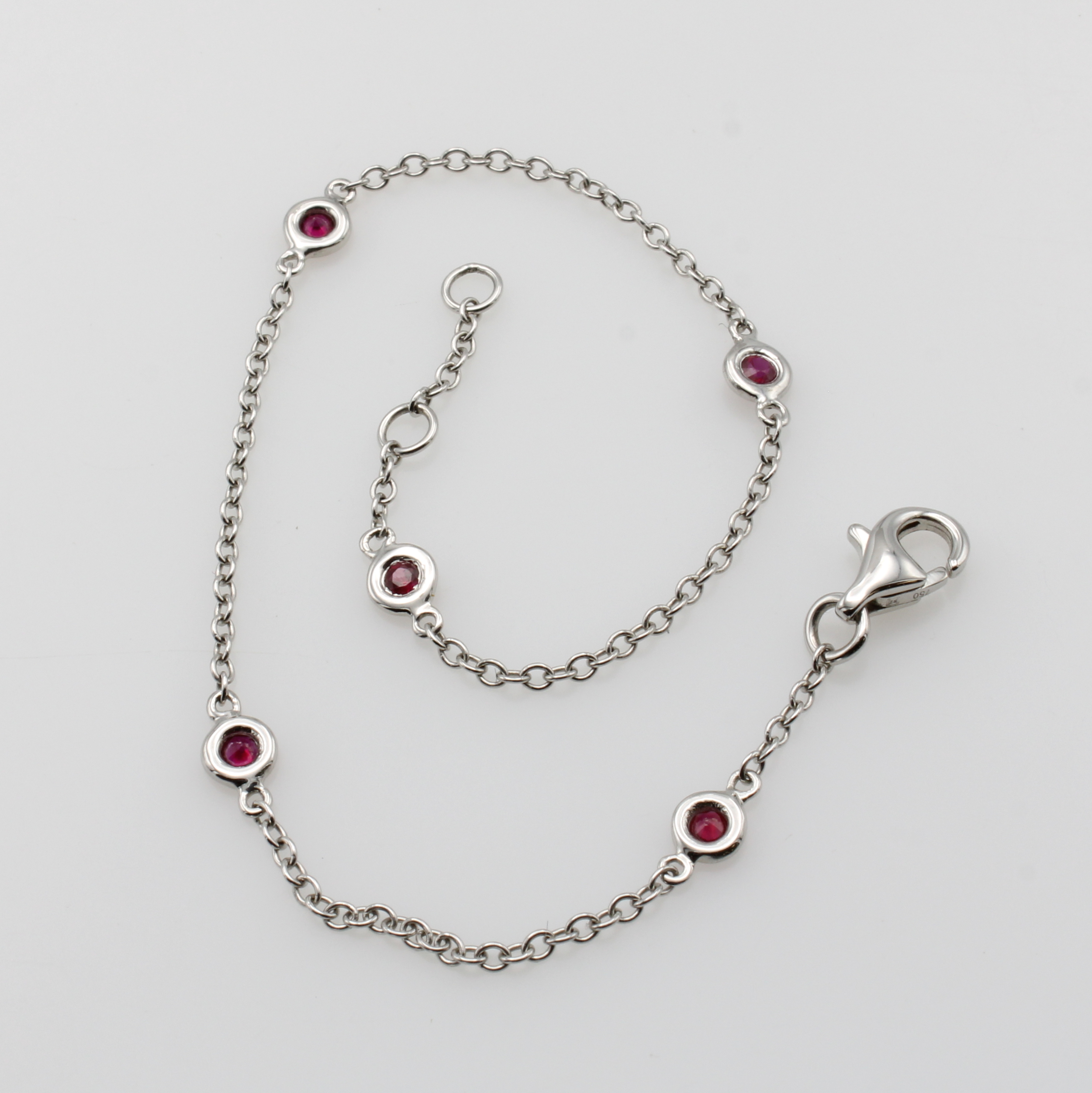 Armband mit Rubinen, WG 750/000, 5 fac. Rubine zus. ca. 0.23 ct, in L. ca. 17.5 u. 18.5 cm tragbar Schätzpreis: 1100, - EUR