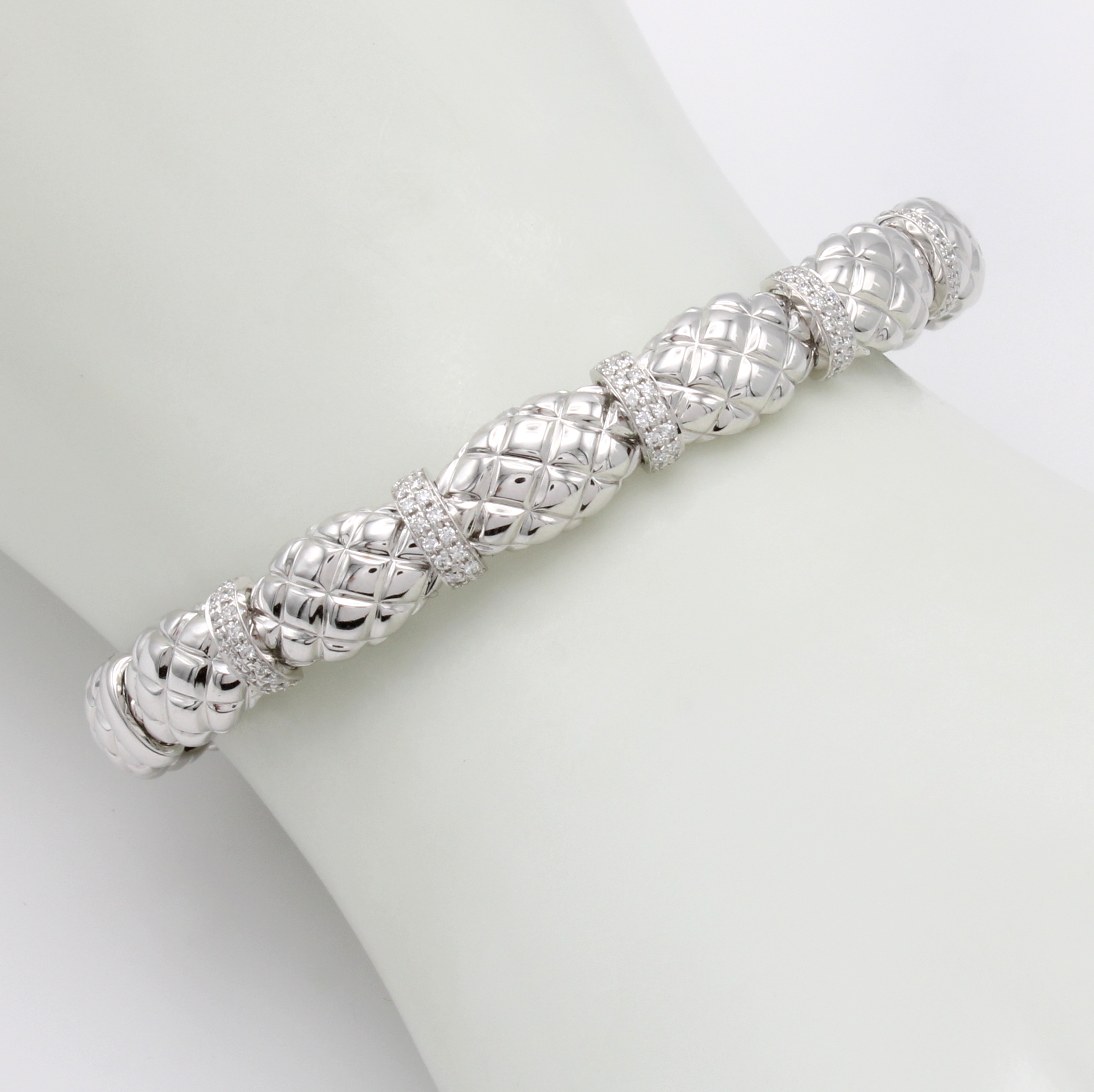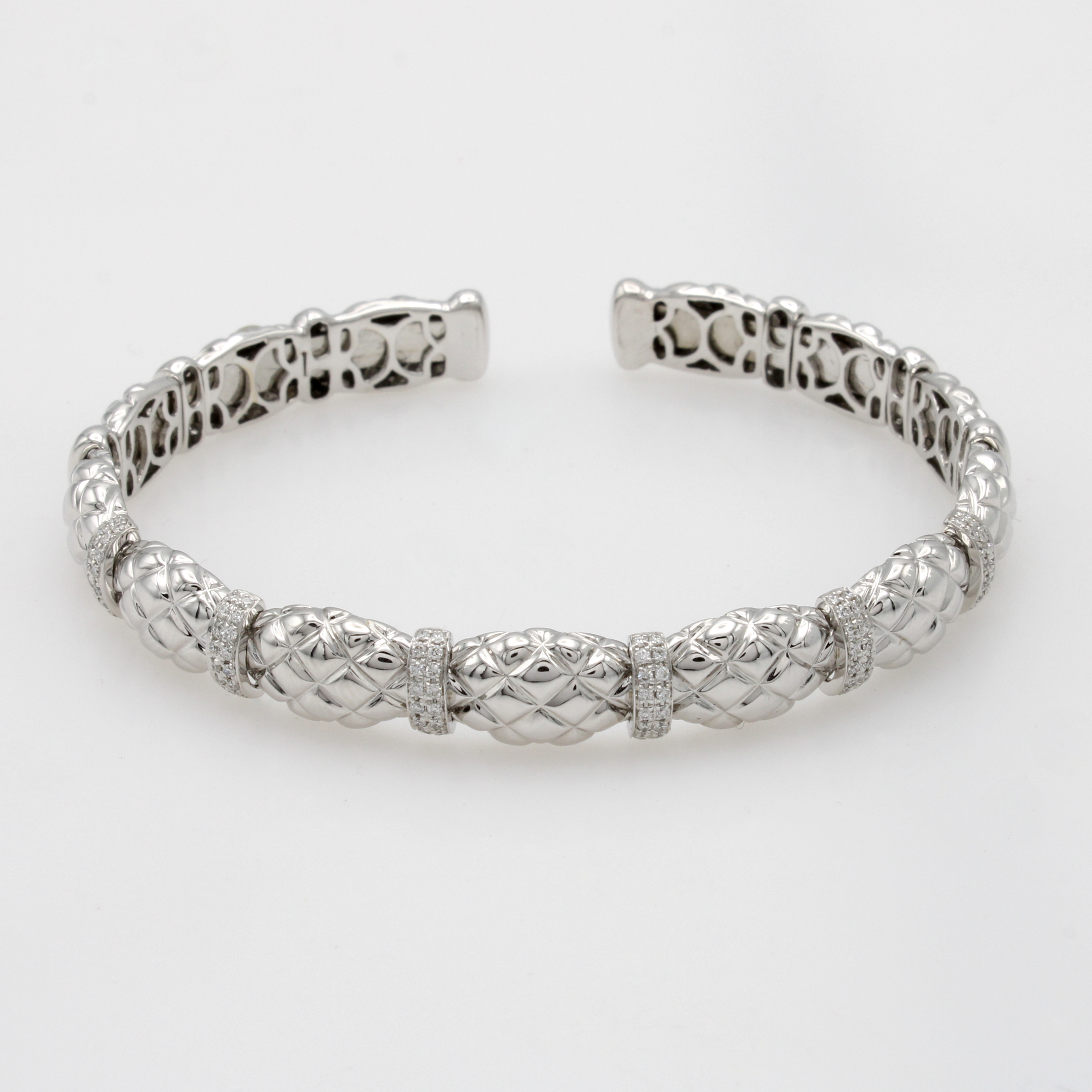 Armspange mit Brillanten, WG 750/000, gemusterte Oberfläche, 96 Brill. zus. ca. 0.34ct feines Weiß/si, Breite ca. 7 mm Schätzpreis: 4700, - EUR