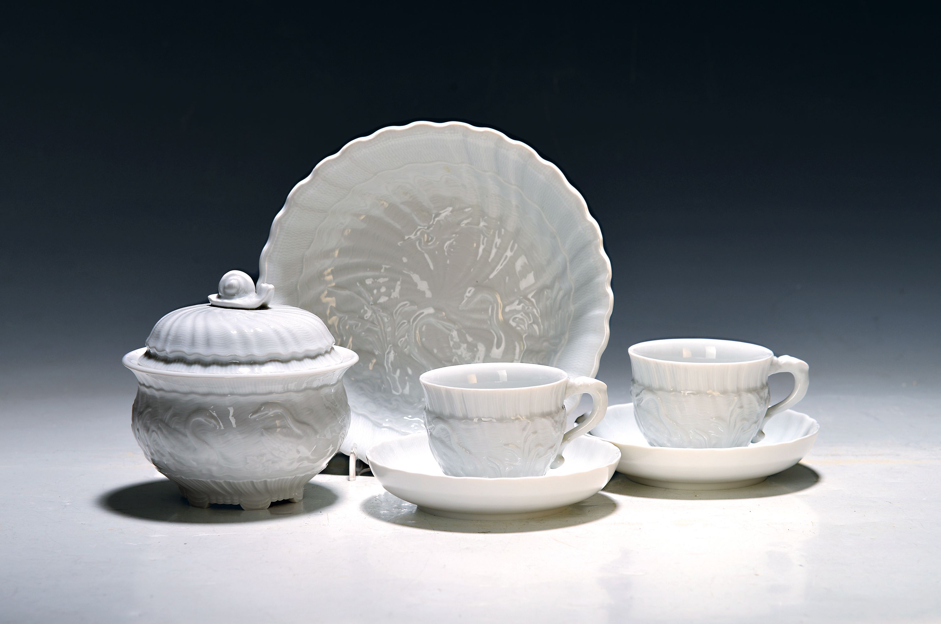 Mokkaservice, Meissen, aus dem Schwanenservice, weiß, 6 Mokkatassen mit Untertassen,