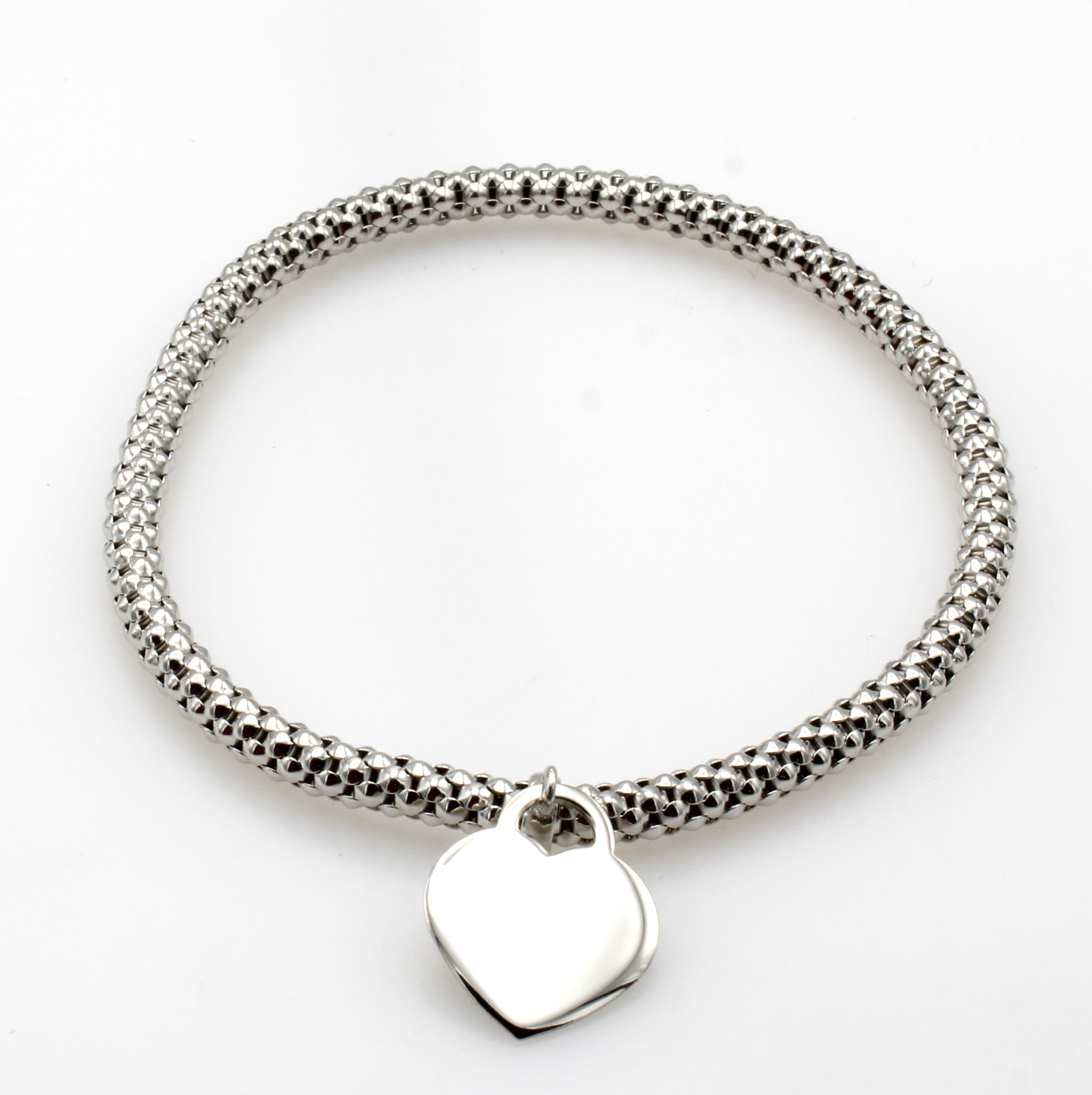 Elastisches Armband im Himbeermuster mit Herz-anhänger, WG 585/000, B. ca. 4 mm, D. ca. 5.5 cm