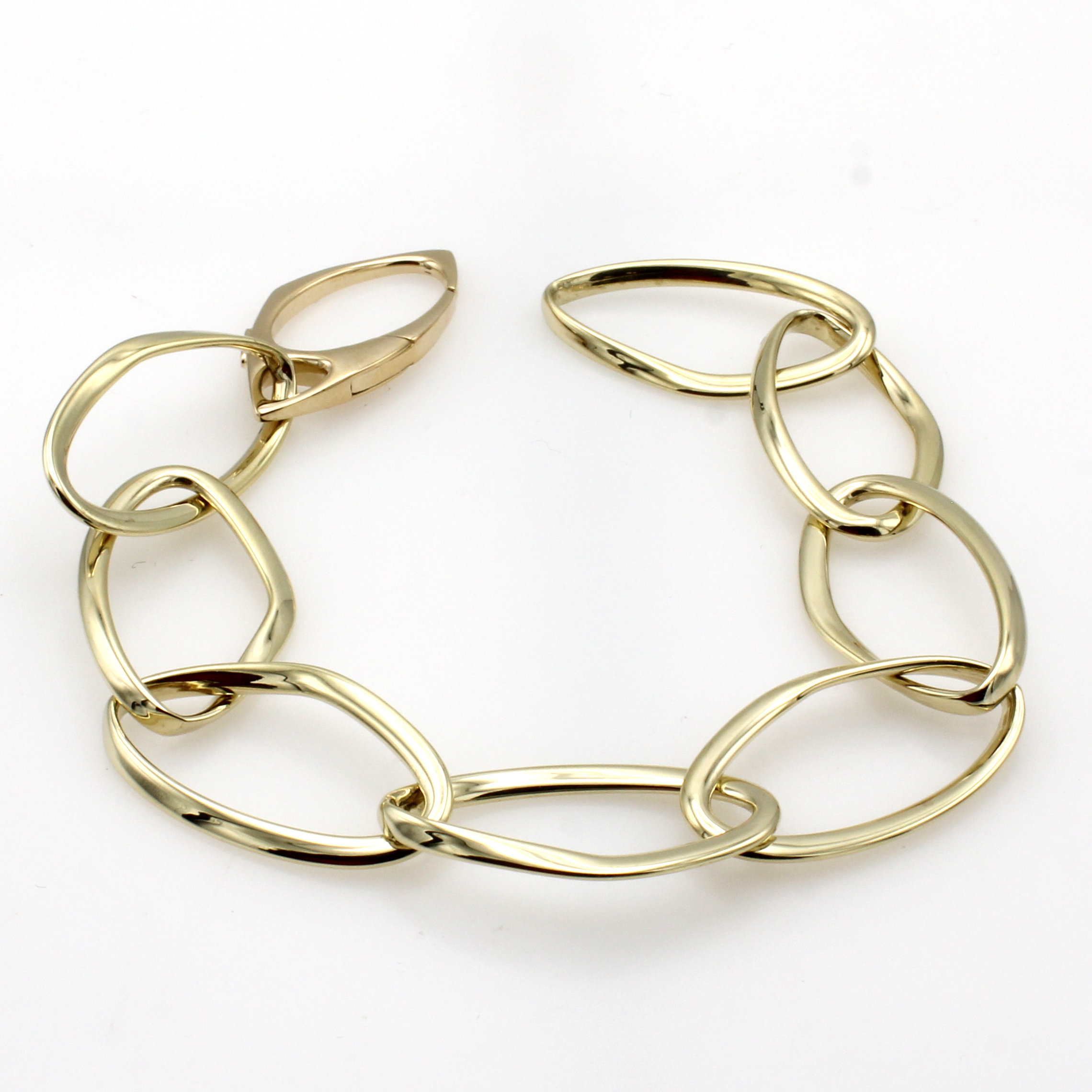Armband, GG 585/000, ovale l. gebogene Glieder, Federringschl. in Muster integriert, B. ca. 16.5 mm, L. ca. 22 cm