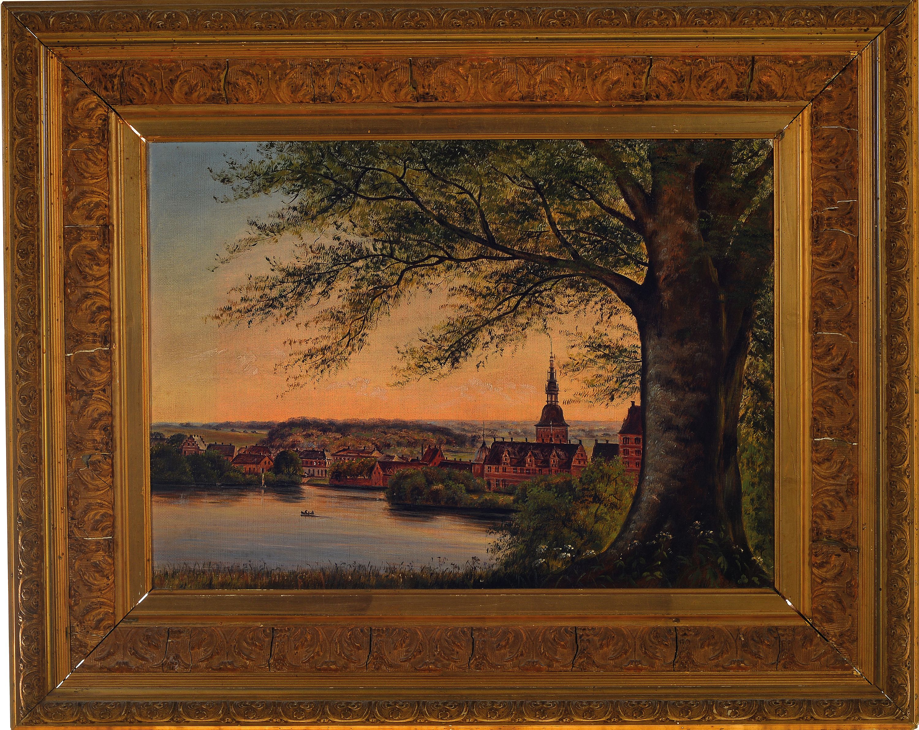 Unbekannter Künstler der Mitte des 19.Jh., Ansicht wohl Schloss Frederiksborg in Dänemark, unsigniert, Öl/Lwd, 28x38cm, Rahmen 44x53 cm