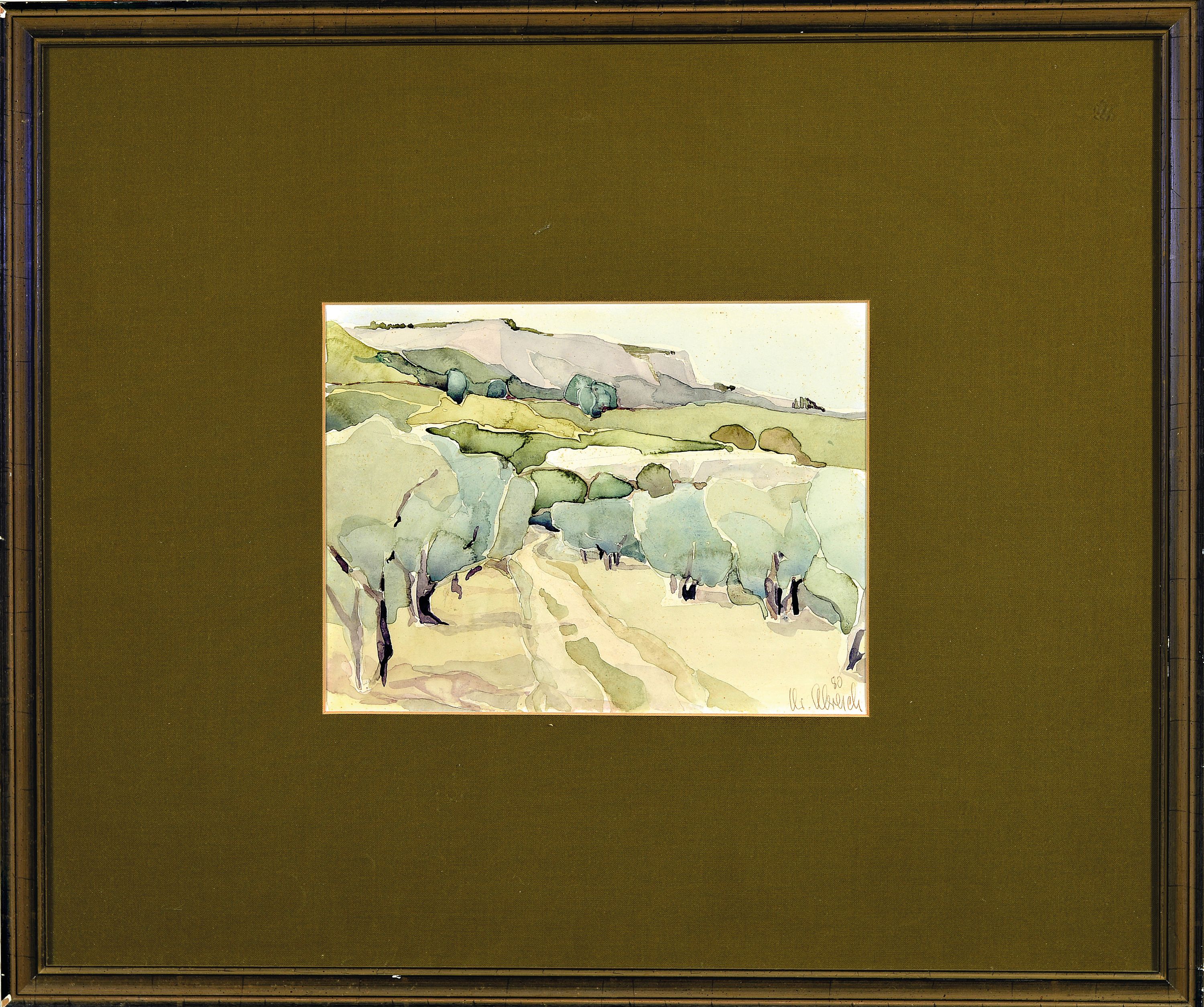 Christel Abresch, 1931 Sulzbach-2011 Neustadt , Aquarell, südliche Landschaft, rechts