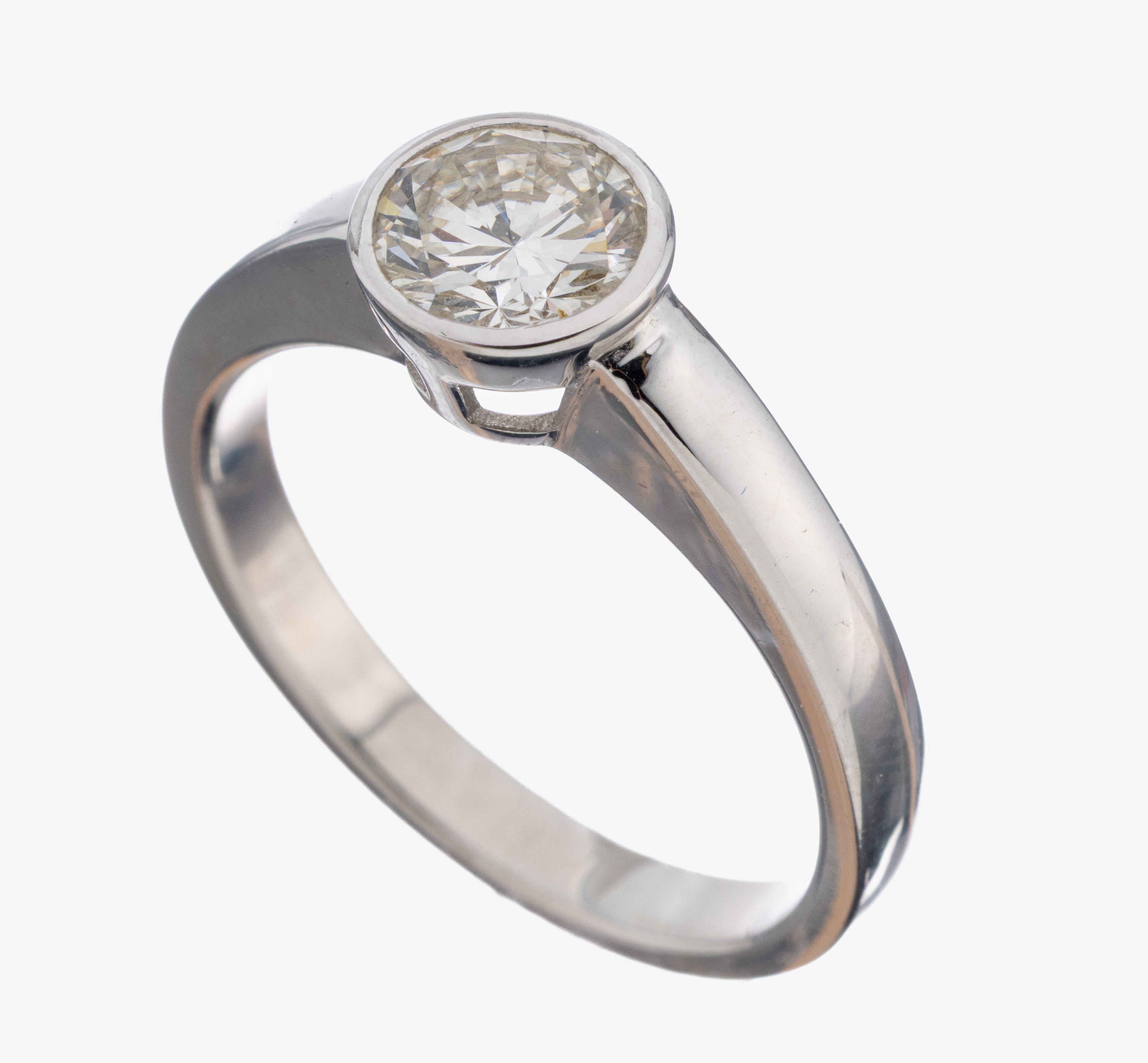 18 kt Gold Brillant-Ring, WG 750/000 gepr.,Brillant ca. 0.75 ct Weiß/si, RW 52,