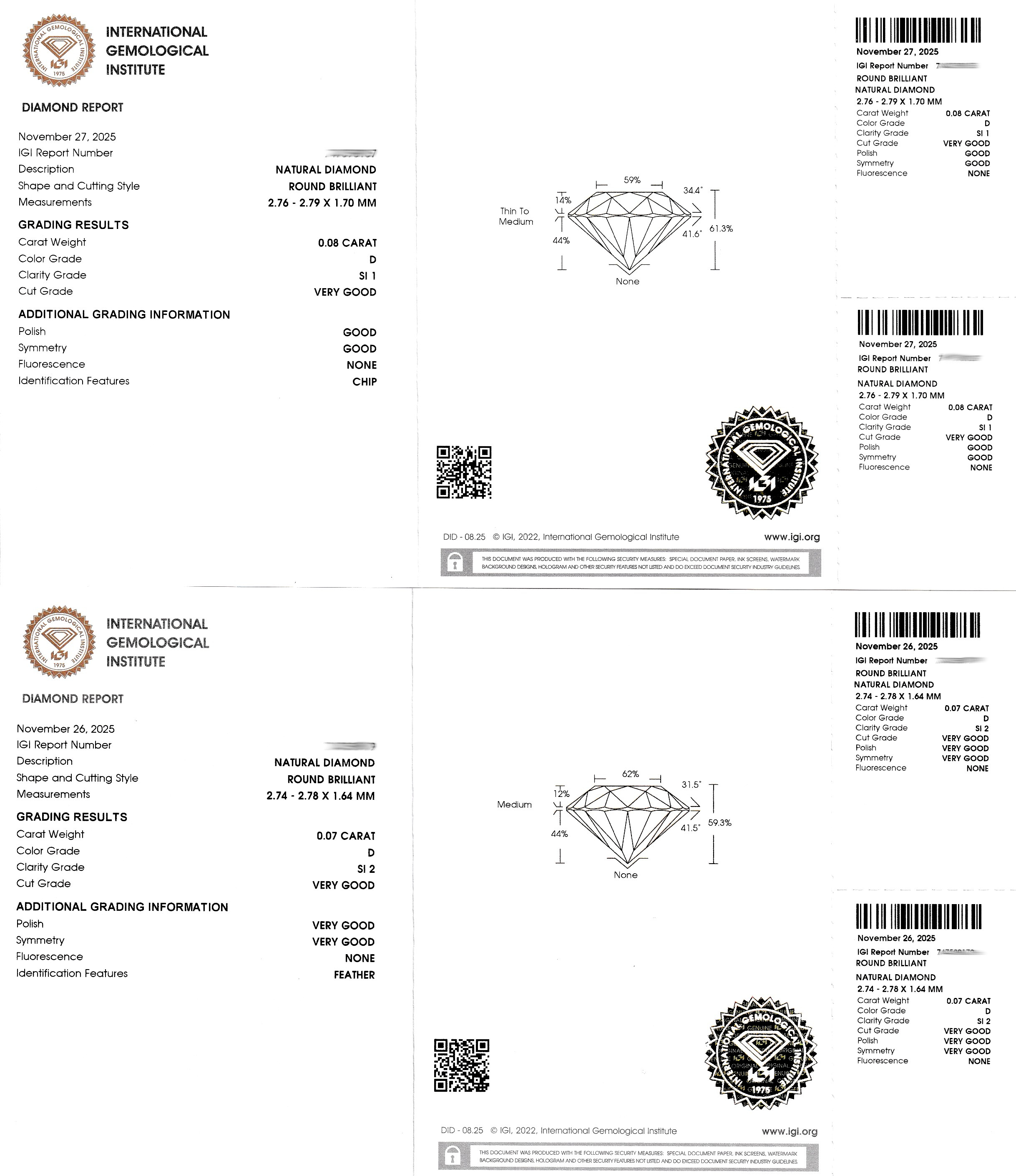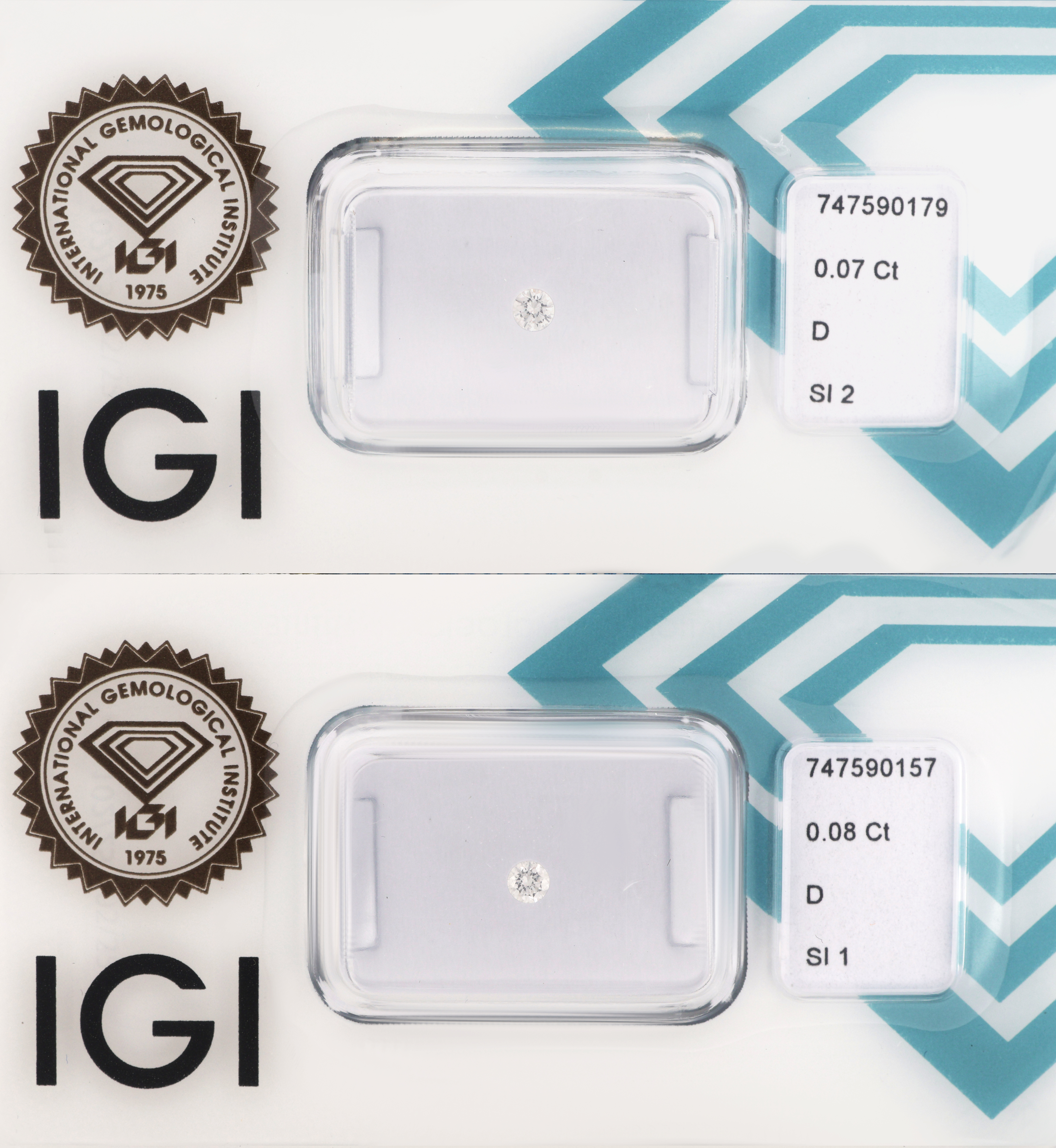 Lot 2 lose Brillanten, 1 x 0.08 ct hochfeines Weiß(D)/si1, 1 x 0.7 ct hochfeines Weiß(D)/si2, jew. verschweißt, IGI-Expertisen