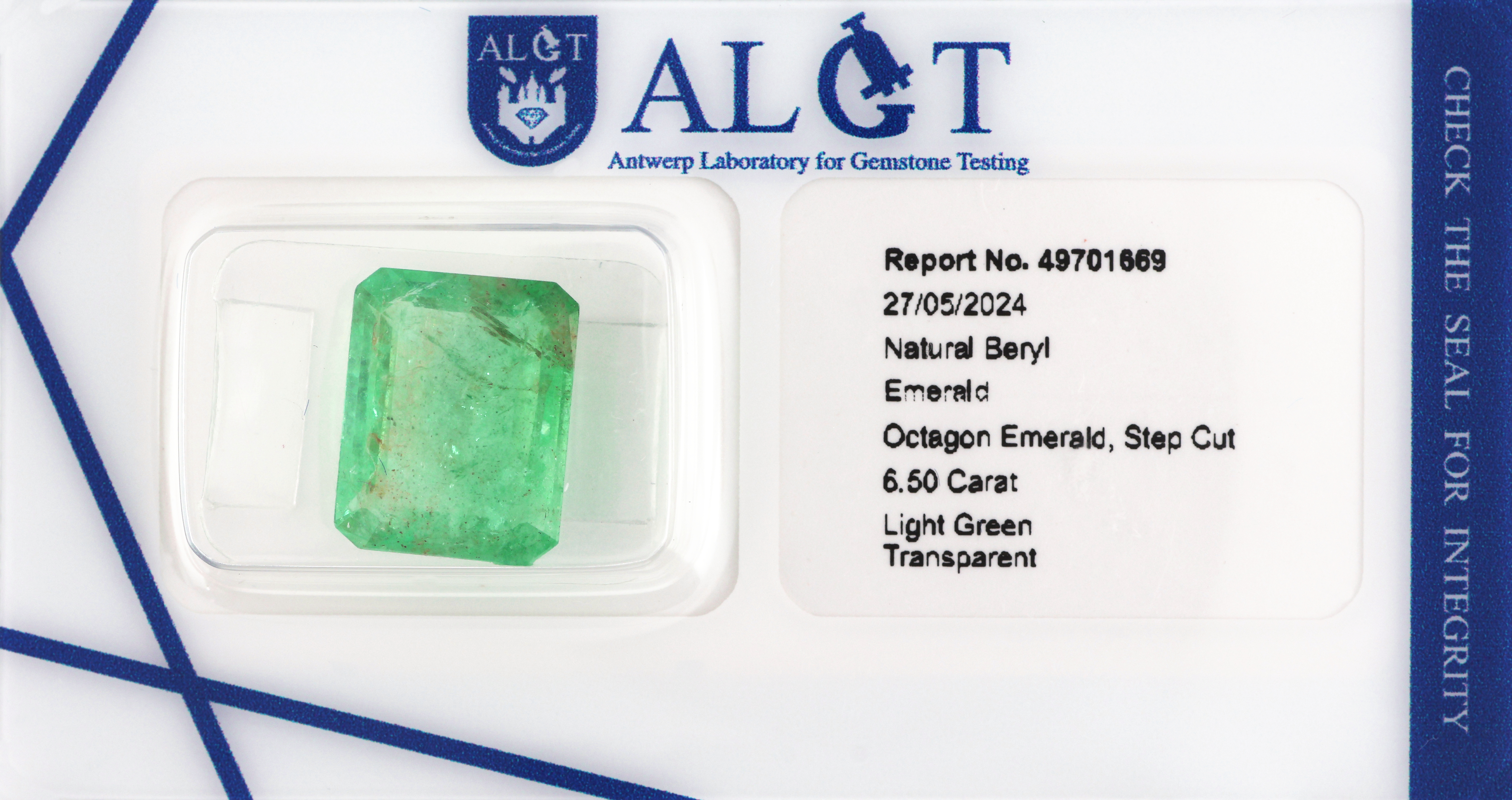 Loser Smaragd, ca. 6.50 ct, Emerald Cut, ca. 13.28 x 10.63 x 5.75 mm, light green
